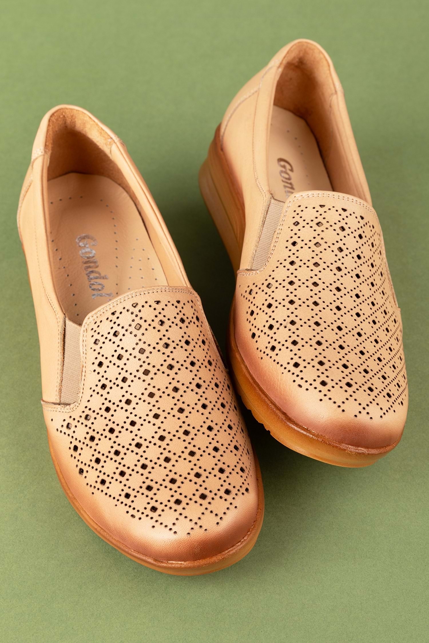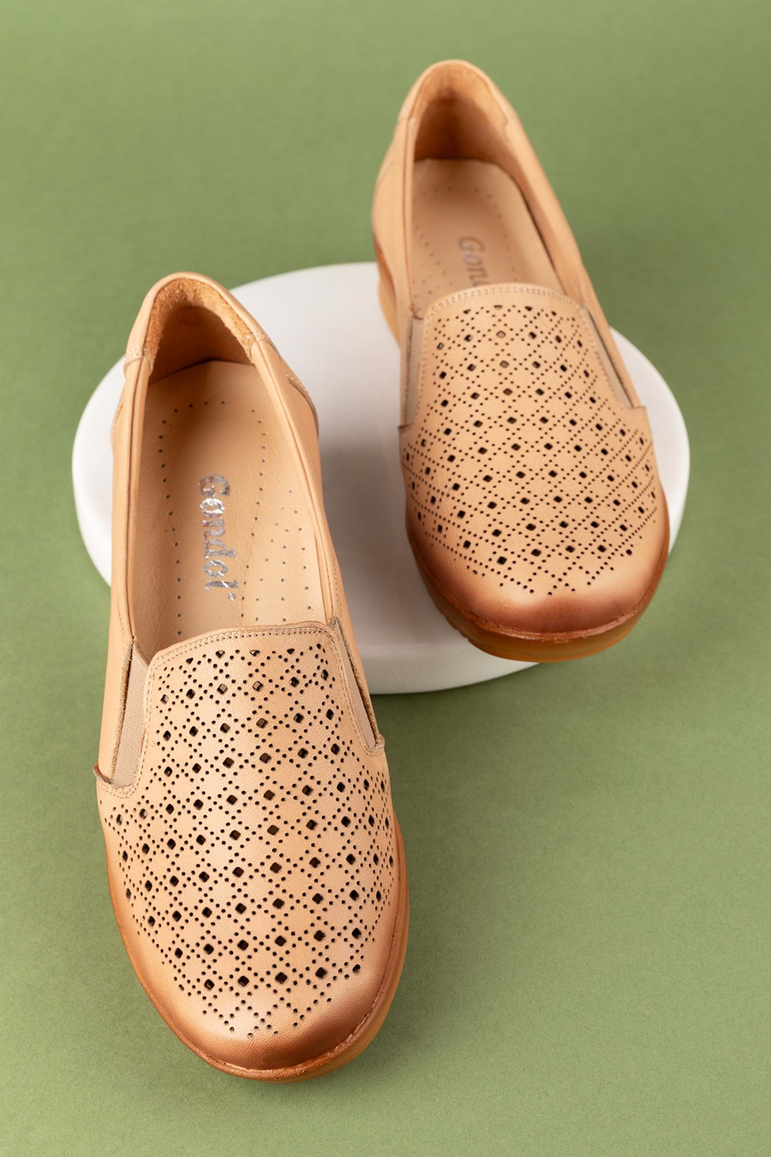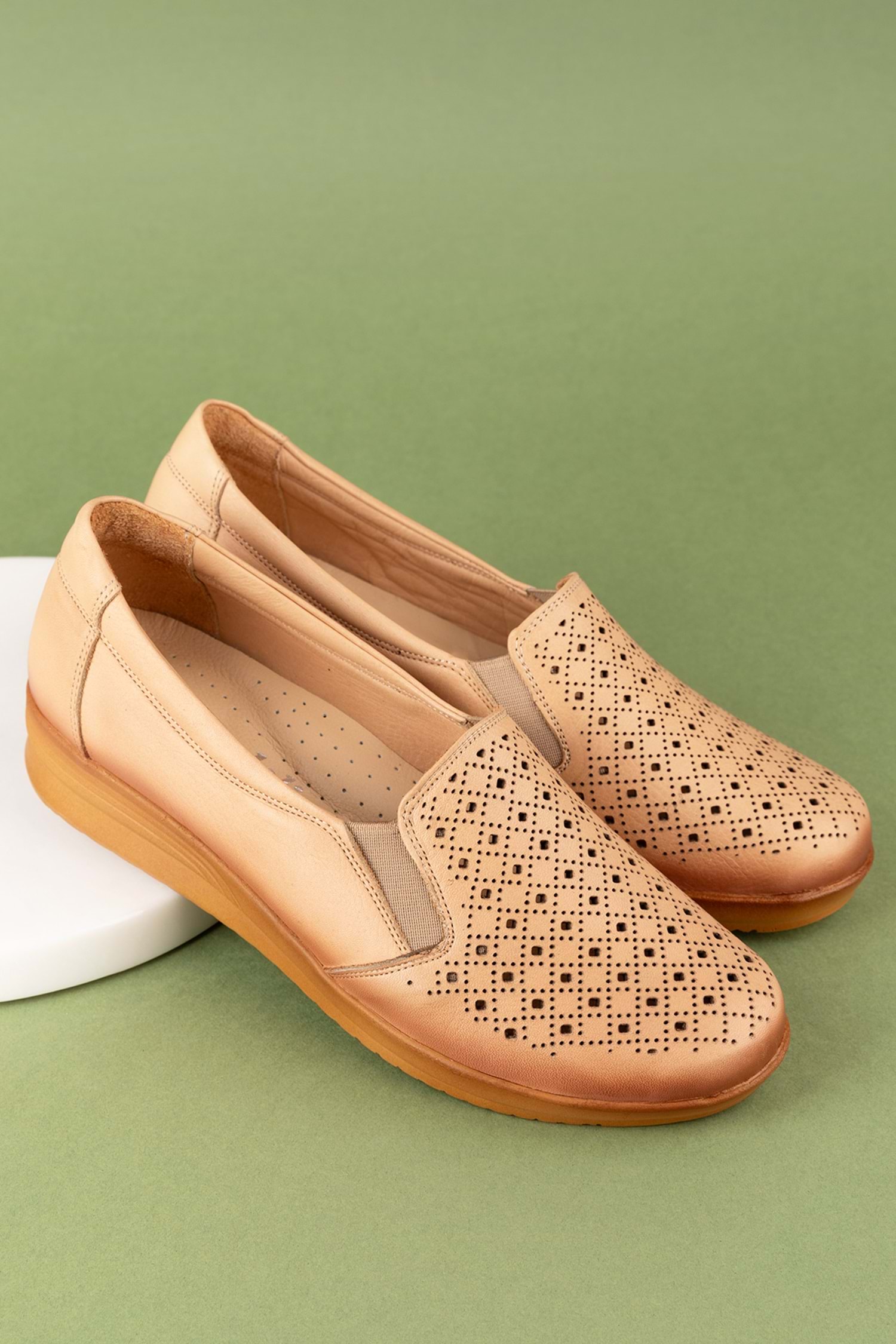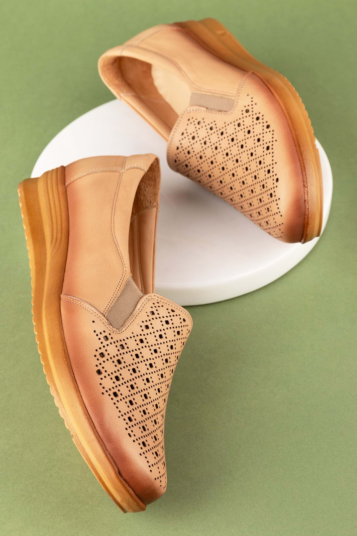 Gondol Kadın Hakiki Deri Anatomik Taban Lazer Delikli Günlük Ayakkabı Pyt.1208 - Bej - 40