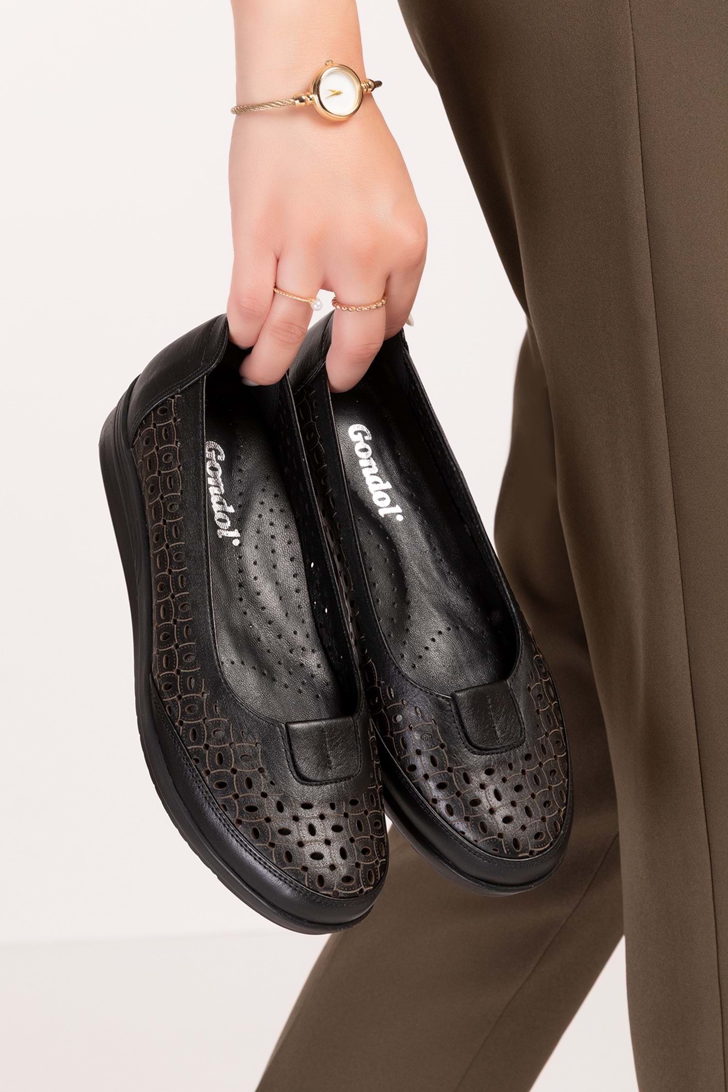 Gondol Kadın Hakiki Deri Anatomik Taban Lazer Delikli Günlük Ayakkabı Pyt.6221 - Siyah - 36