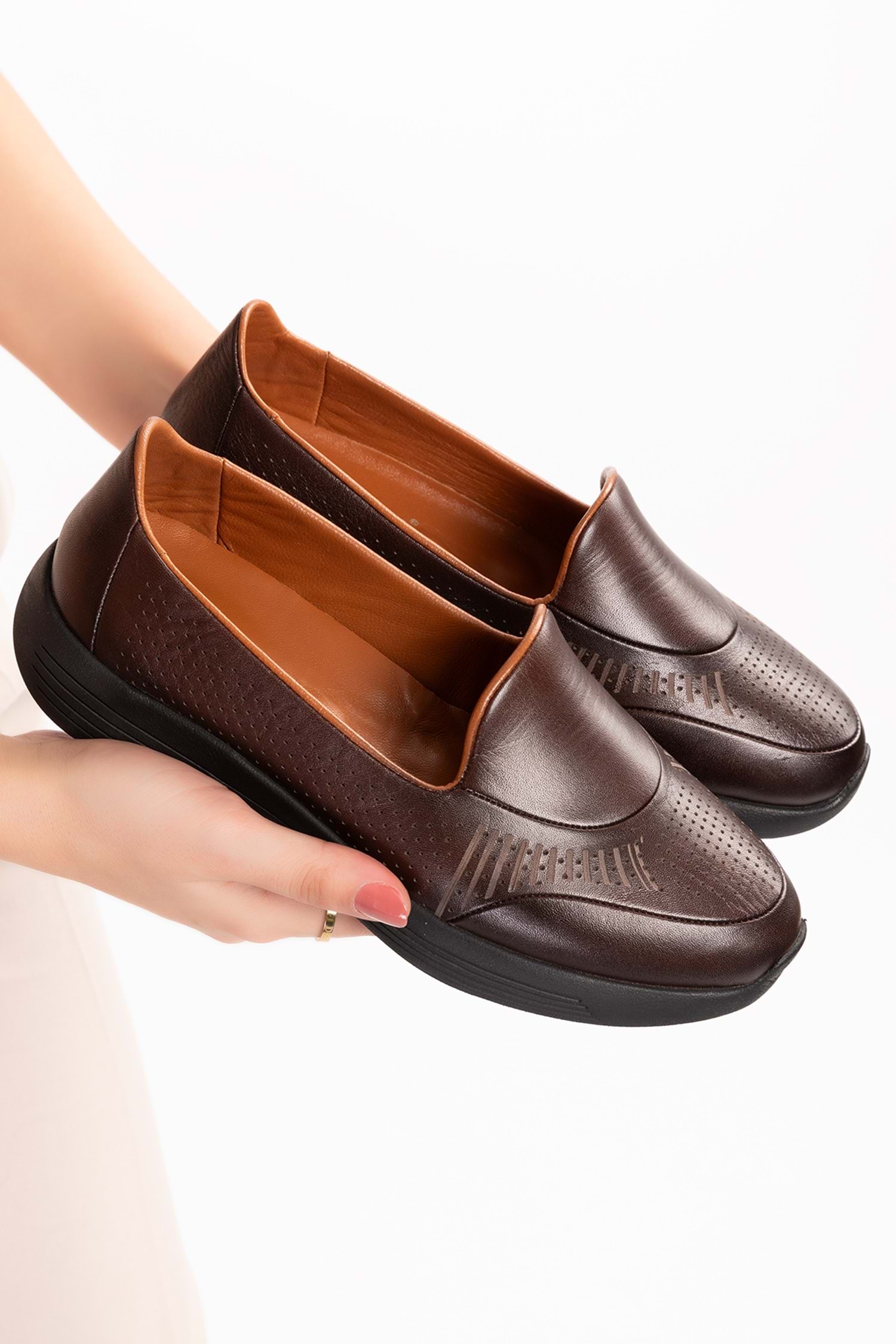 Gondol Kadın Hakiki Deri Hafif Taban Klasik Günlük Ayakkabı at.4218 - Kahverengi - 36