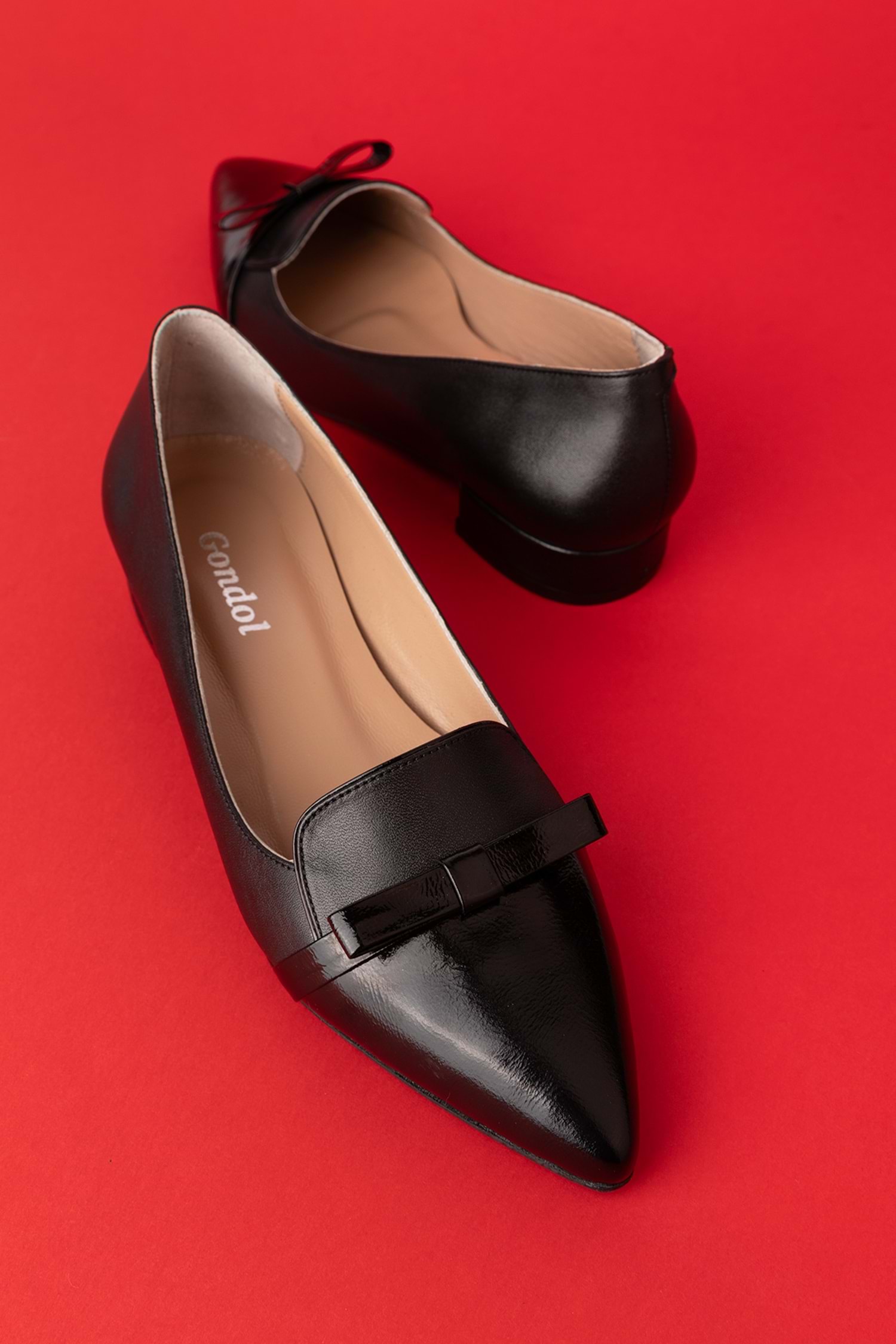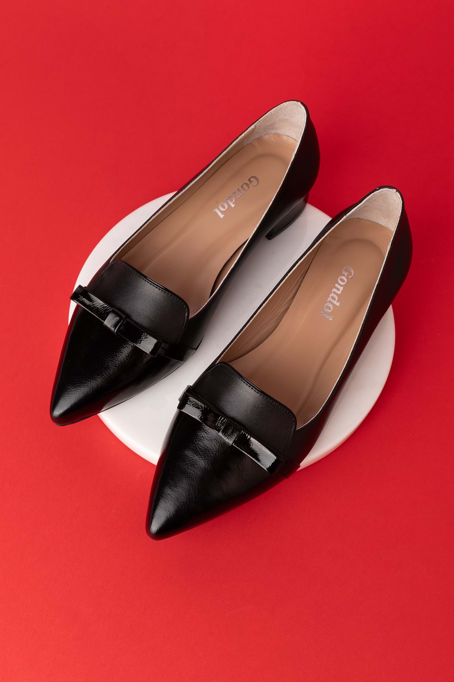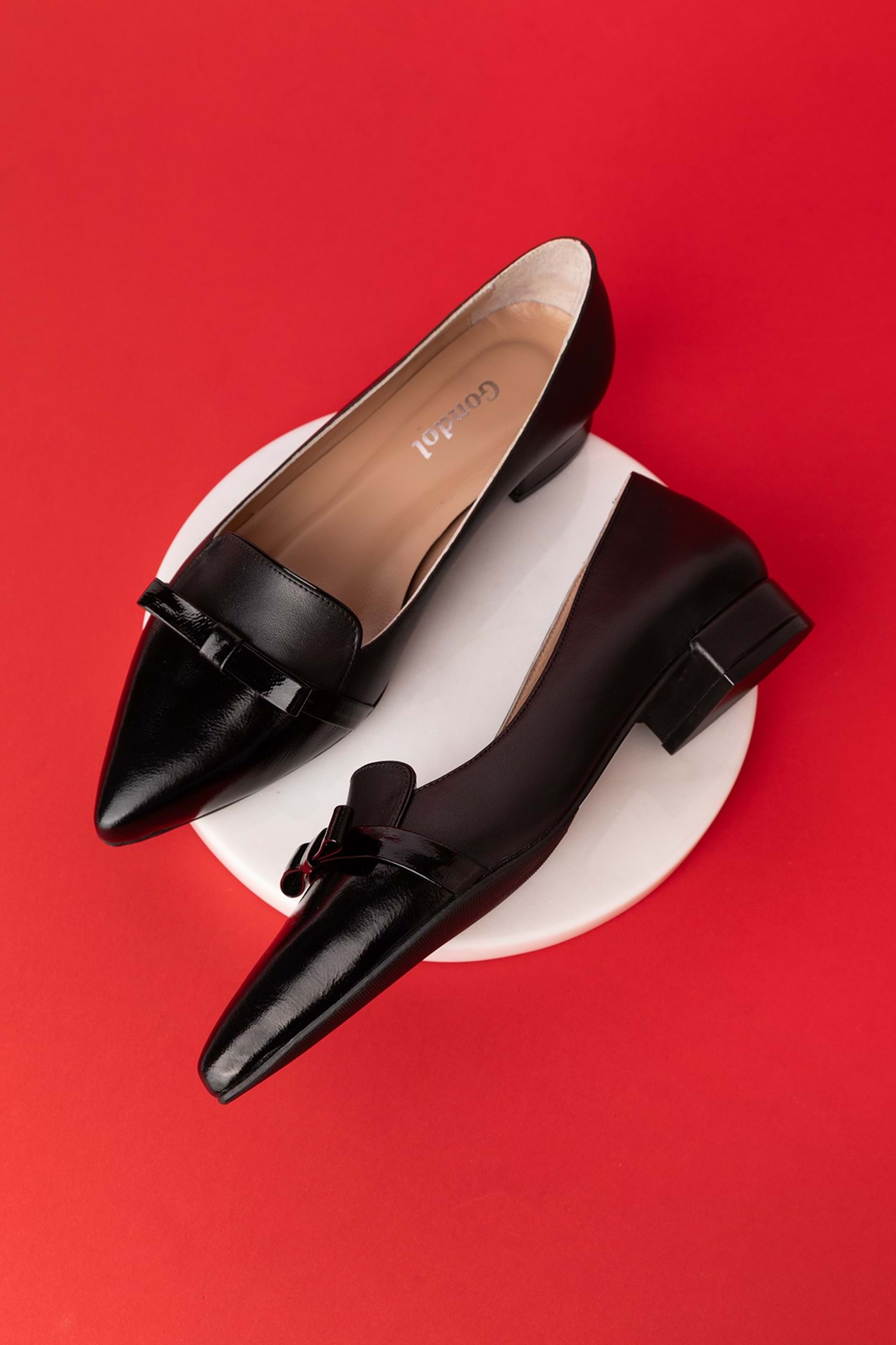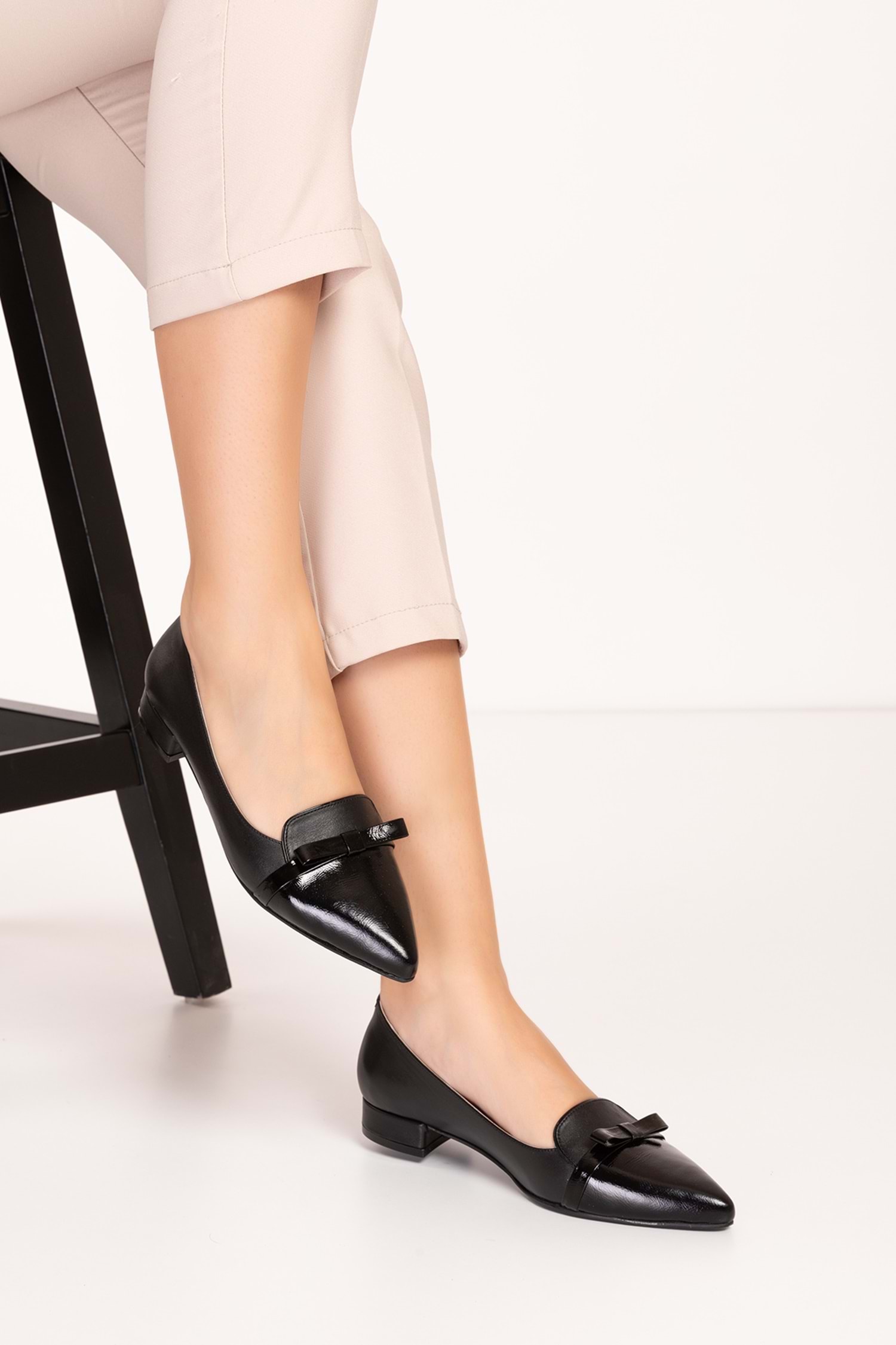 Gondol Hakiki Deri Fiyonk Detaylı Kısa Topuklu Ayakkabı ast.8429 - Siyah Kombin - 35