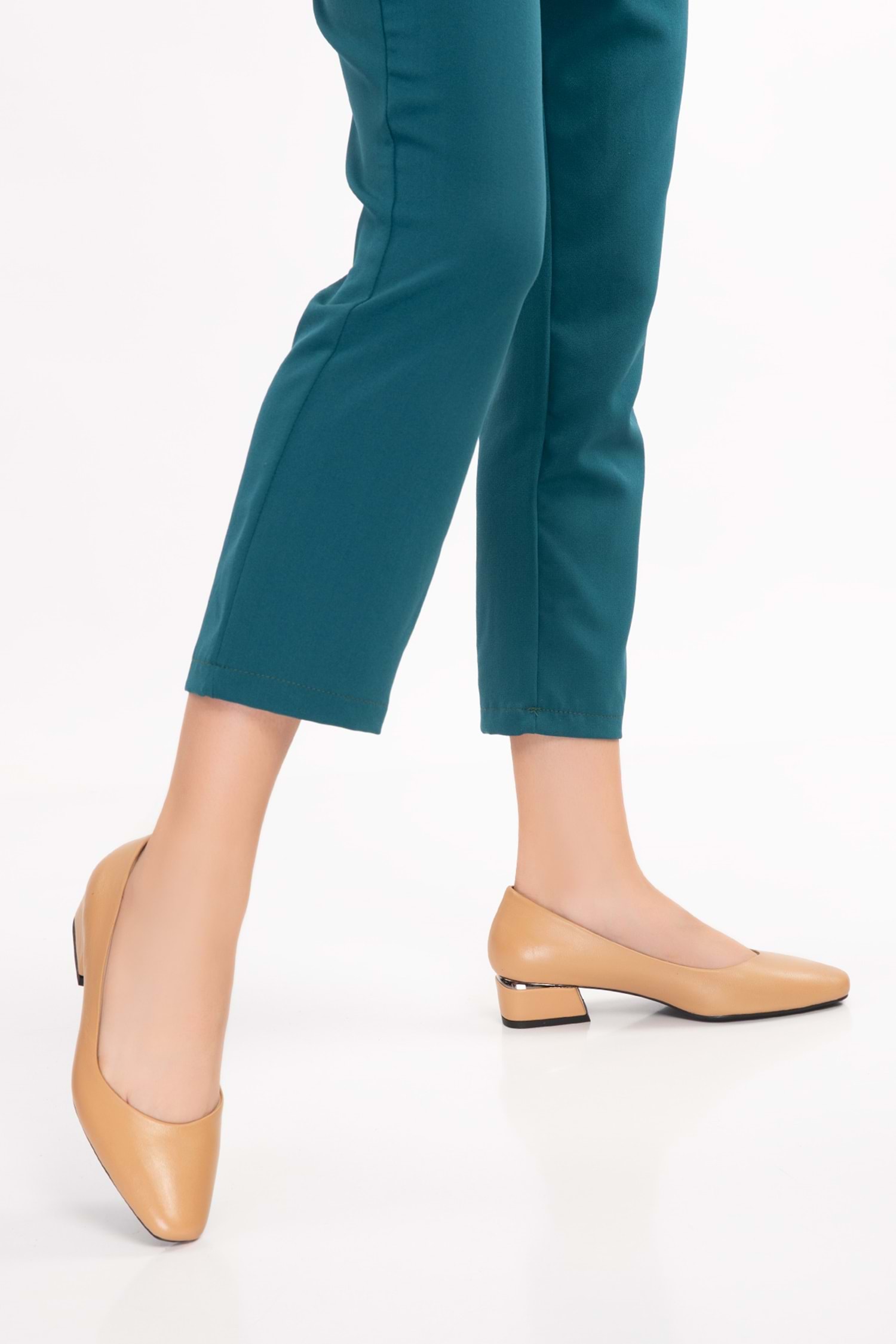 Gondol Hakiki Deri Kısa Topuklu Ayakkabı vdt.07 - Nut - 40