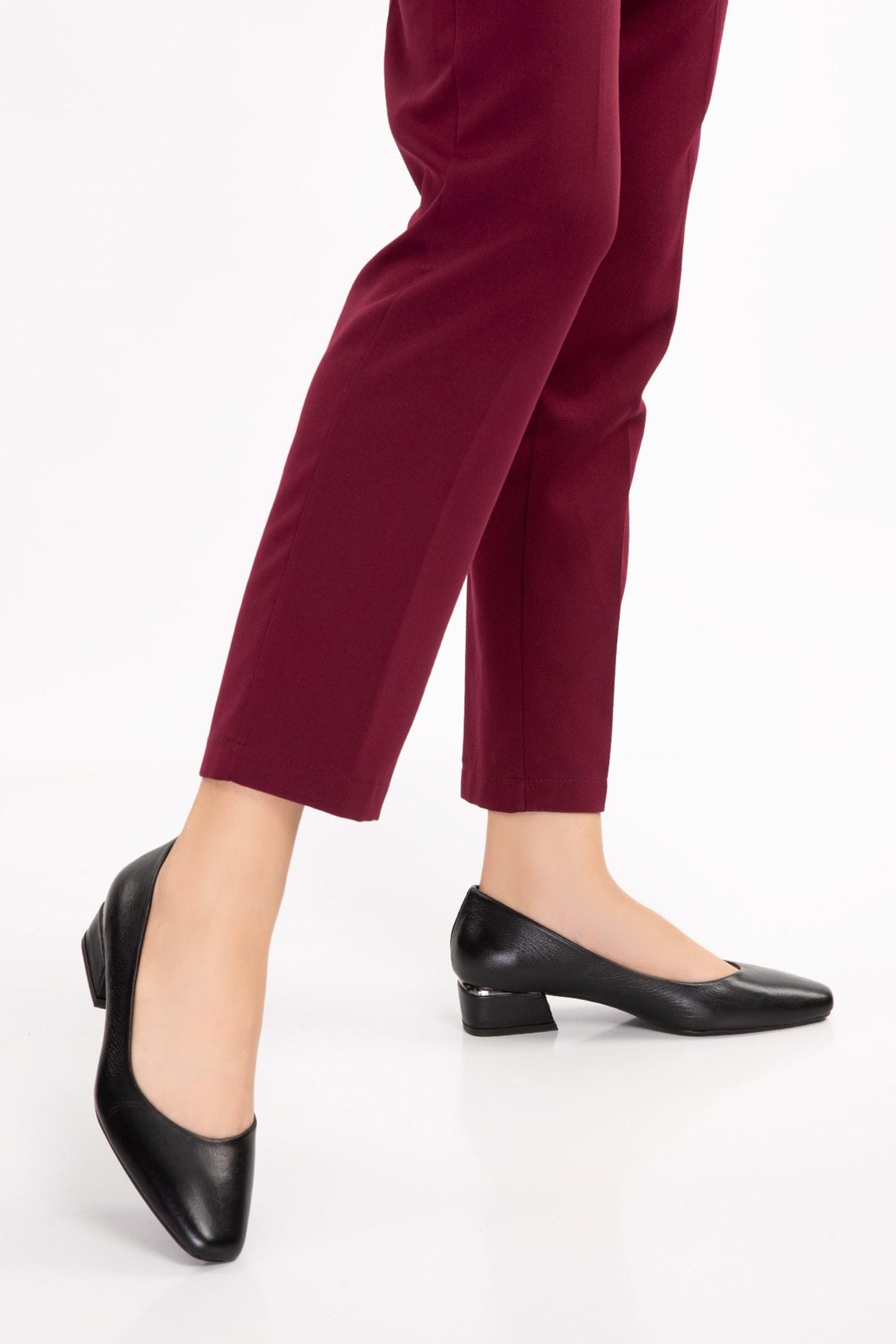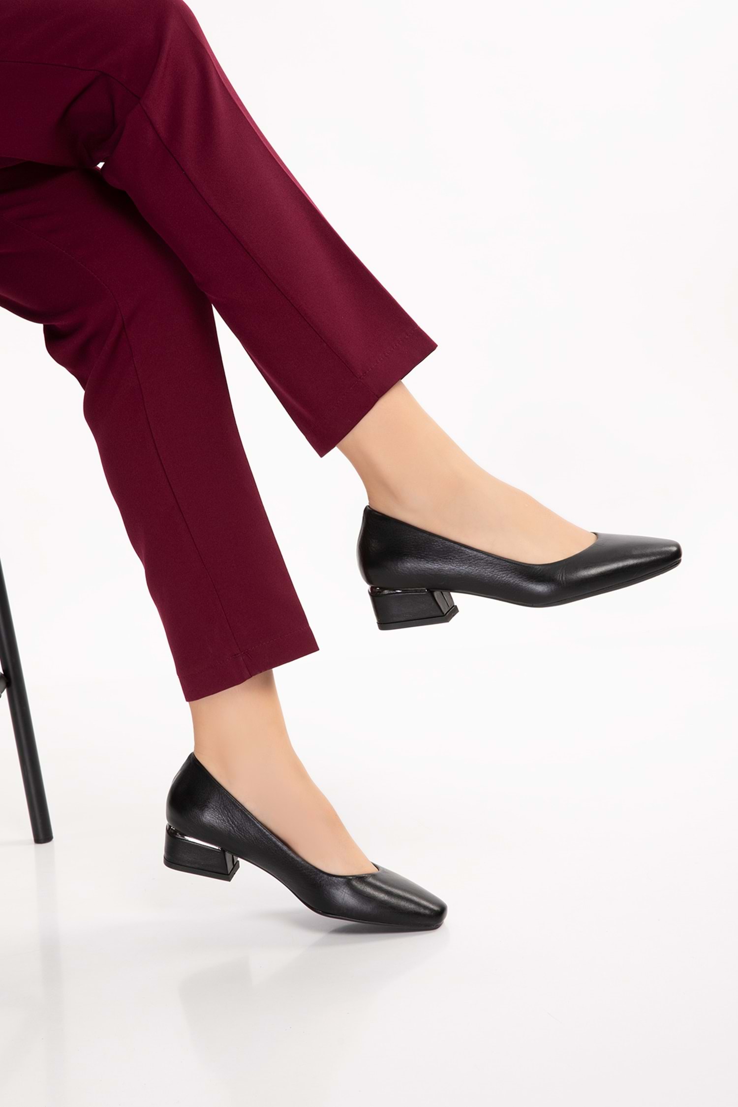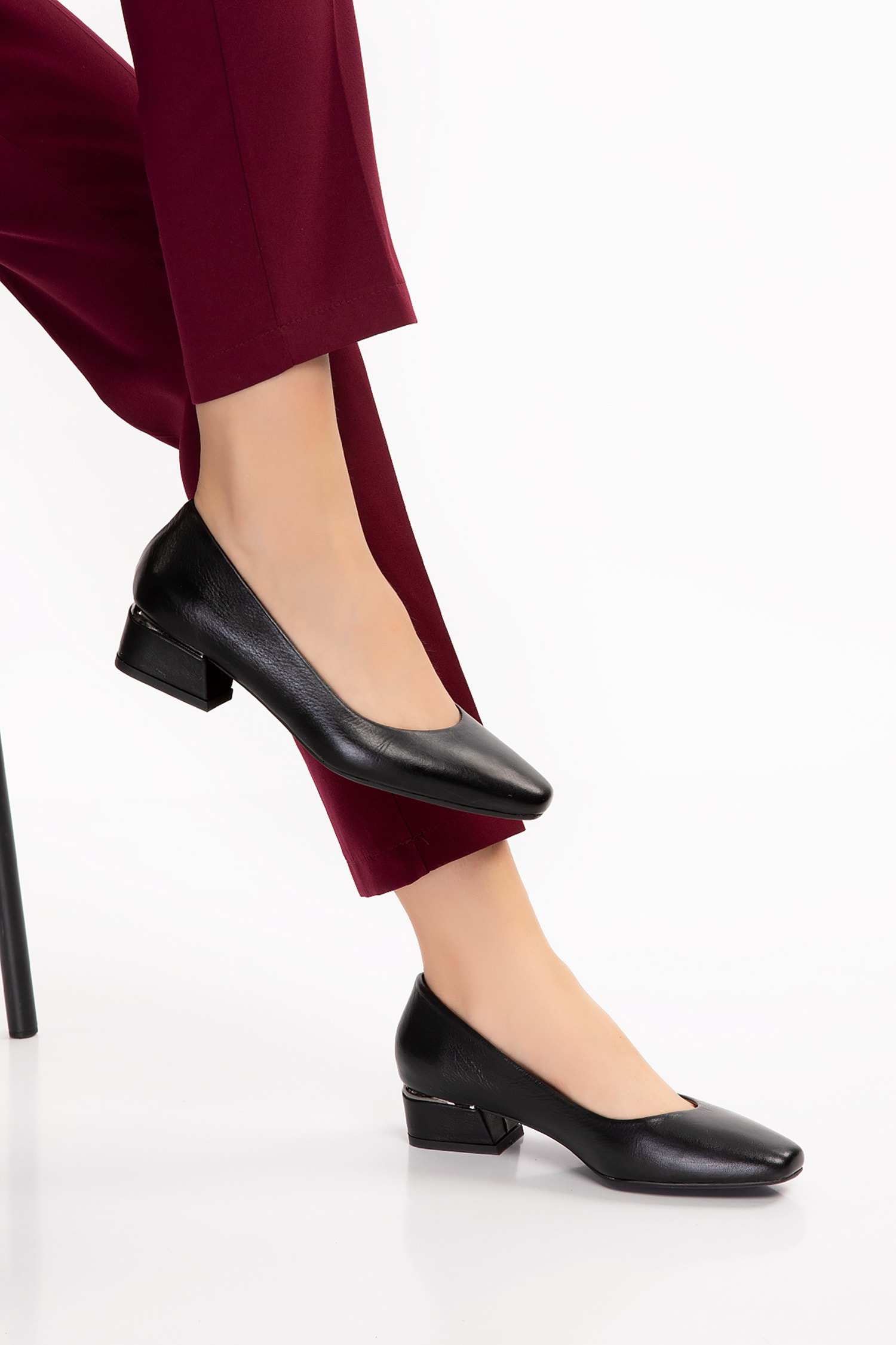 Gondol Hakiki Deri Kısa Topuklu Ayakkabı vdt.07 - Siyah - 37