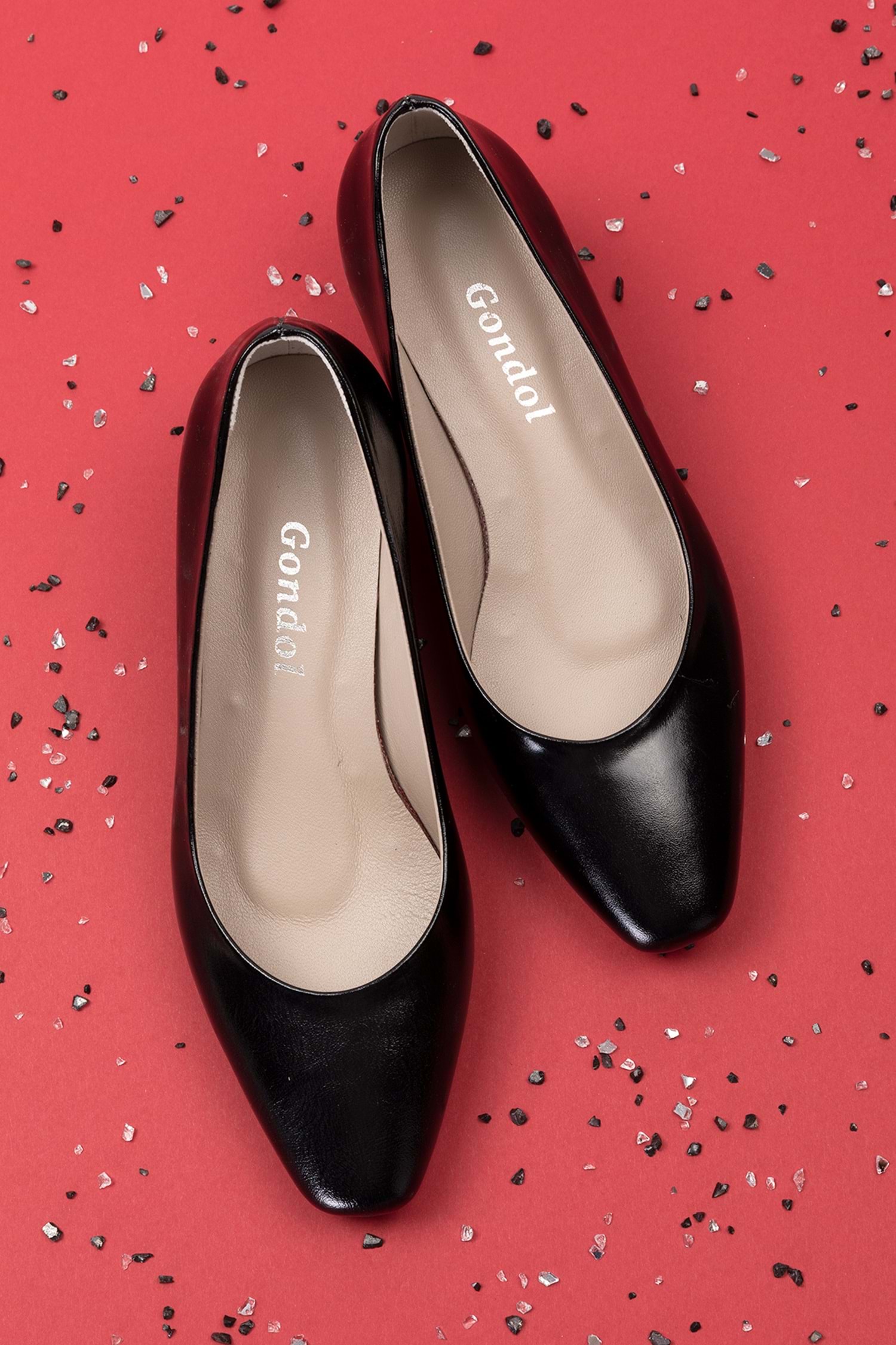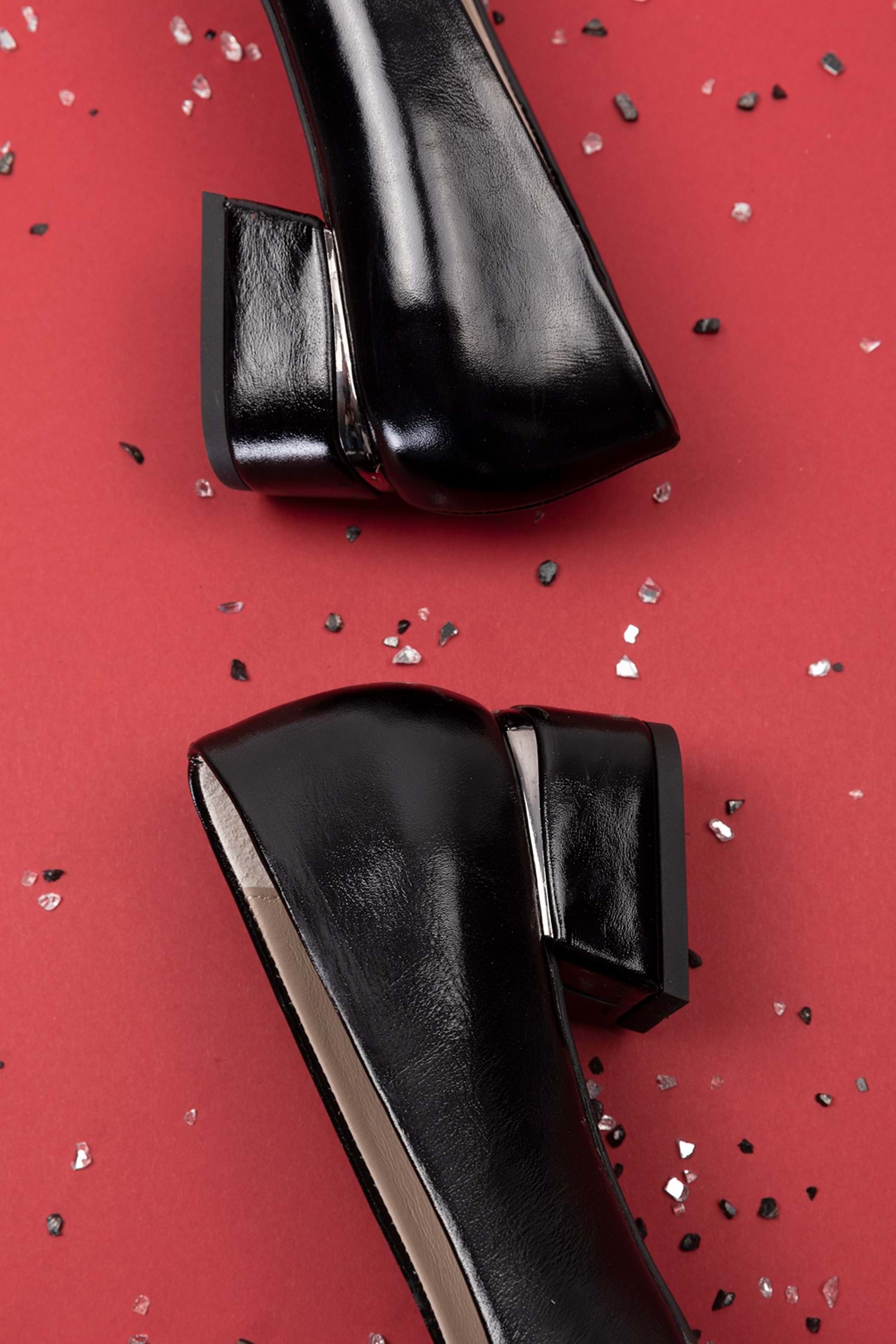 Gondol Hakiki Deri Kısa Topuklu Ayakkabı vdt.07 - siyah rugan - 40