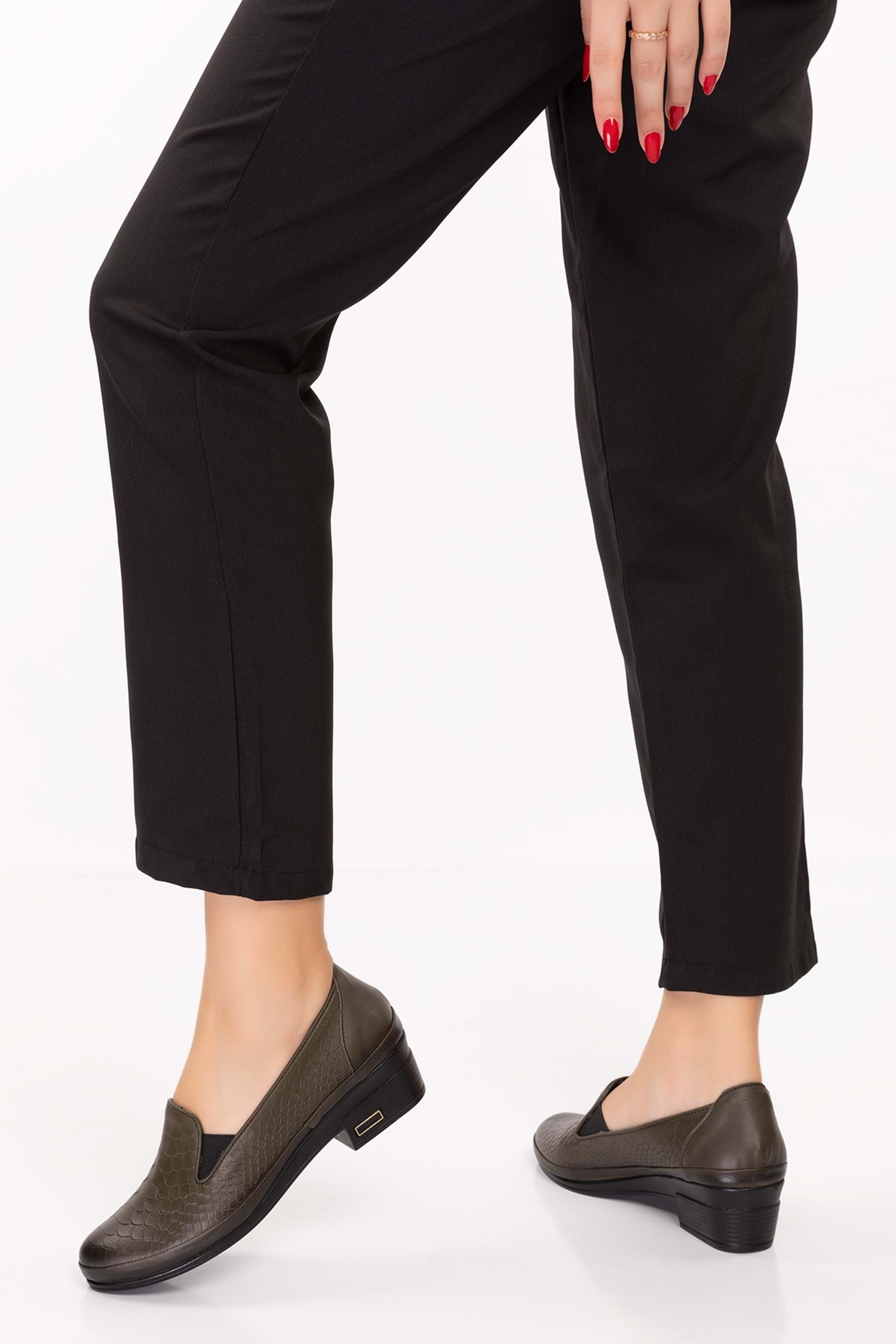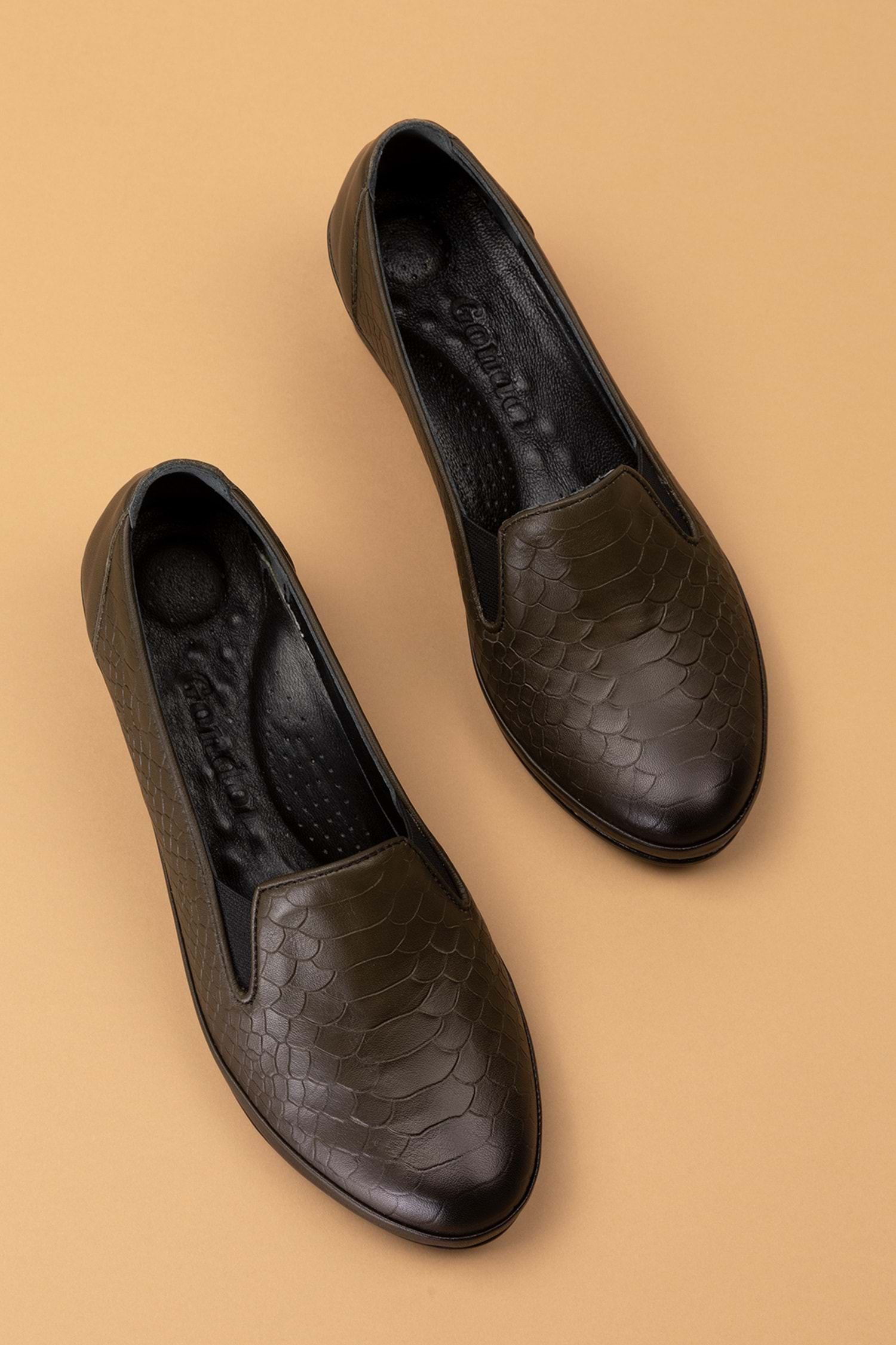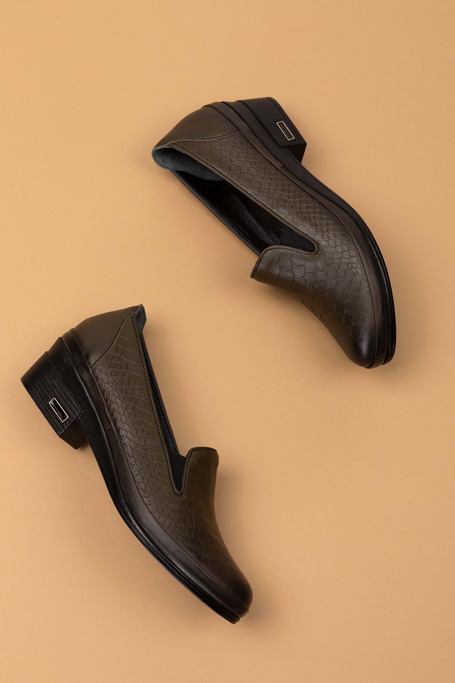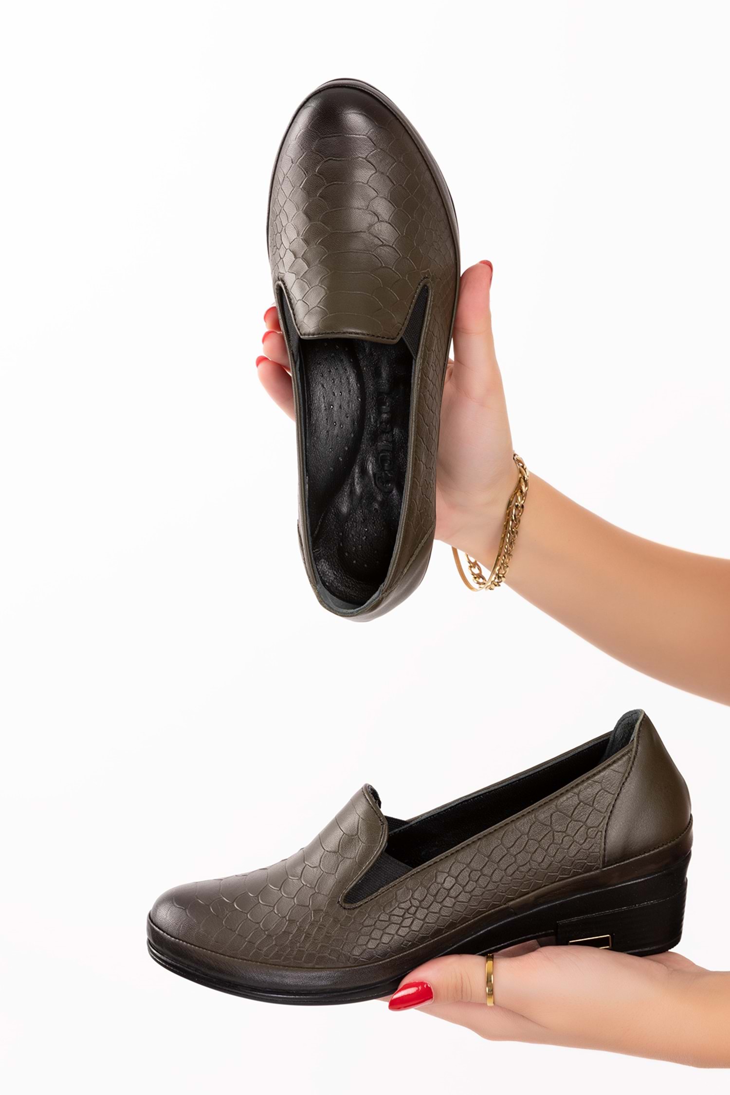 Gondol Hakiki Deri Kısa Topuklu Lastik Detaylı Ayakkabı msa.65 - Haki - 40