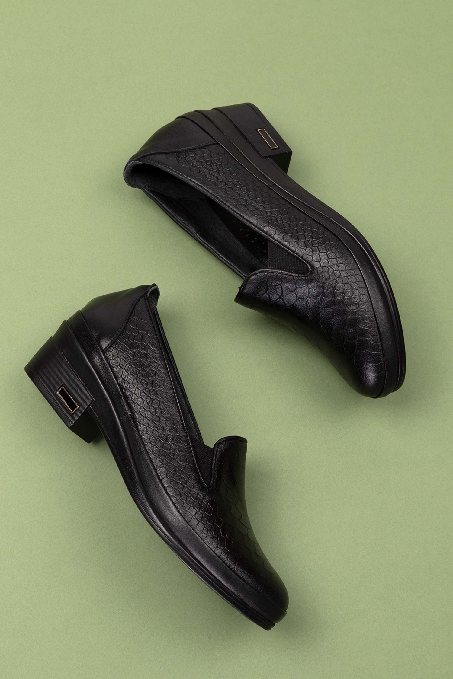 Gondol Hakiki Deri Kısa Topuklu Lastik Detaylı Ayakkabı msa.65 - Siyah - 41