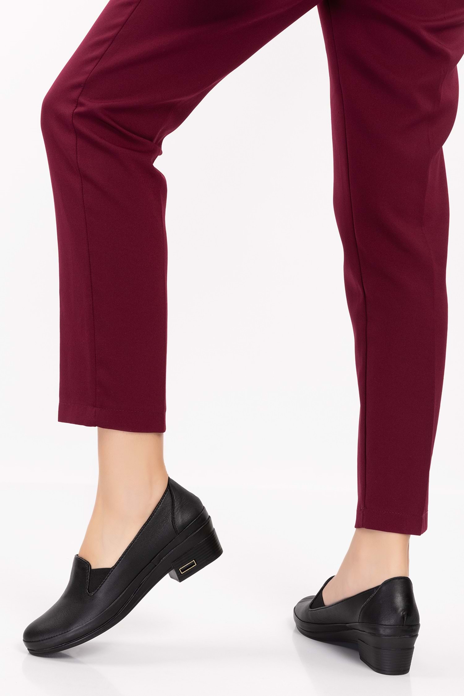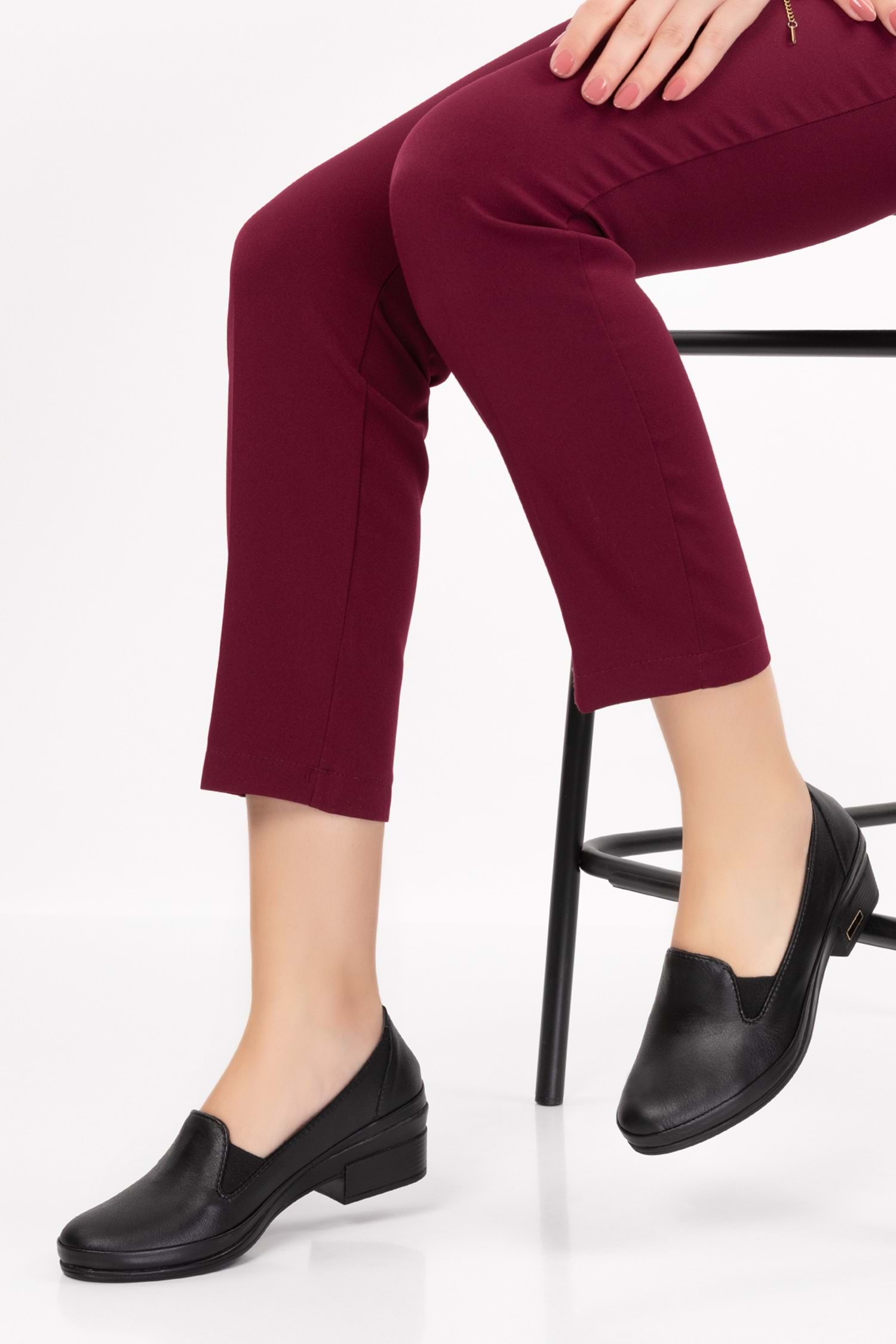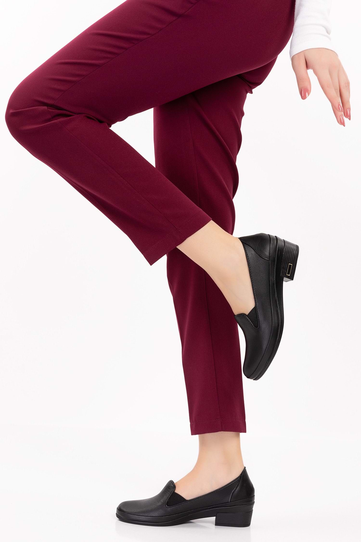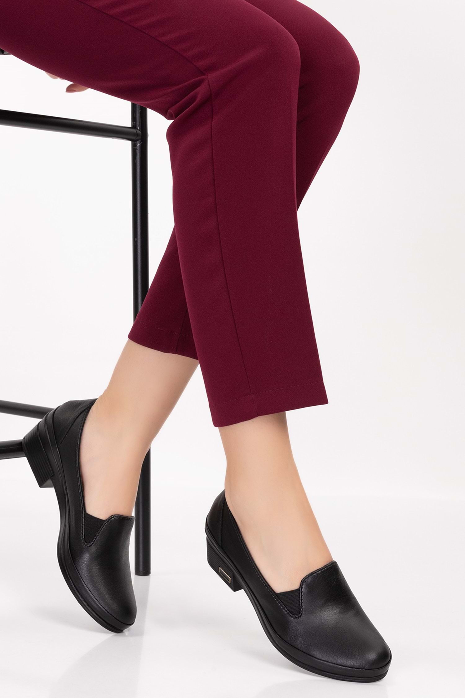 Gondol Hakiki Deri Kısa Topuklu Lastik Detaylı Ayakkabı msa.65 - Siyah Cilt - 40