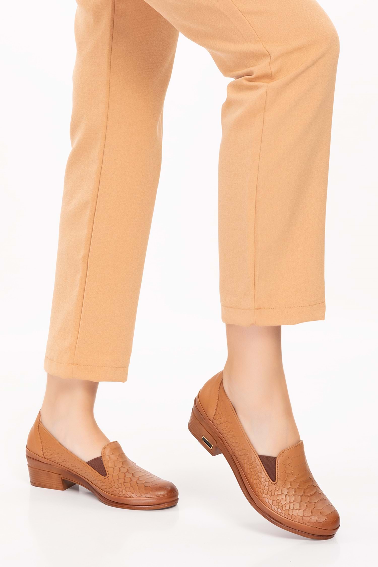 Gondol Hakiki Deri Kısa Topuklu Lastik Detaylı Ayakkabı msa.65 - Taba - 40