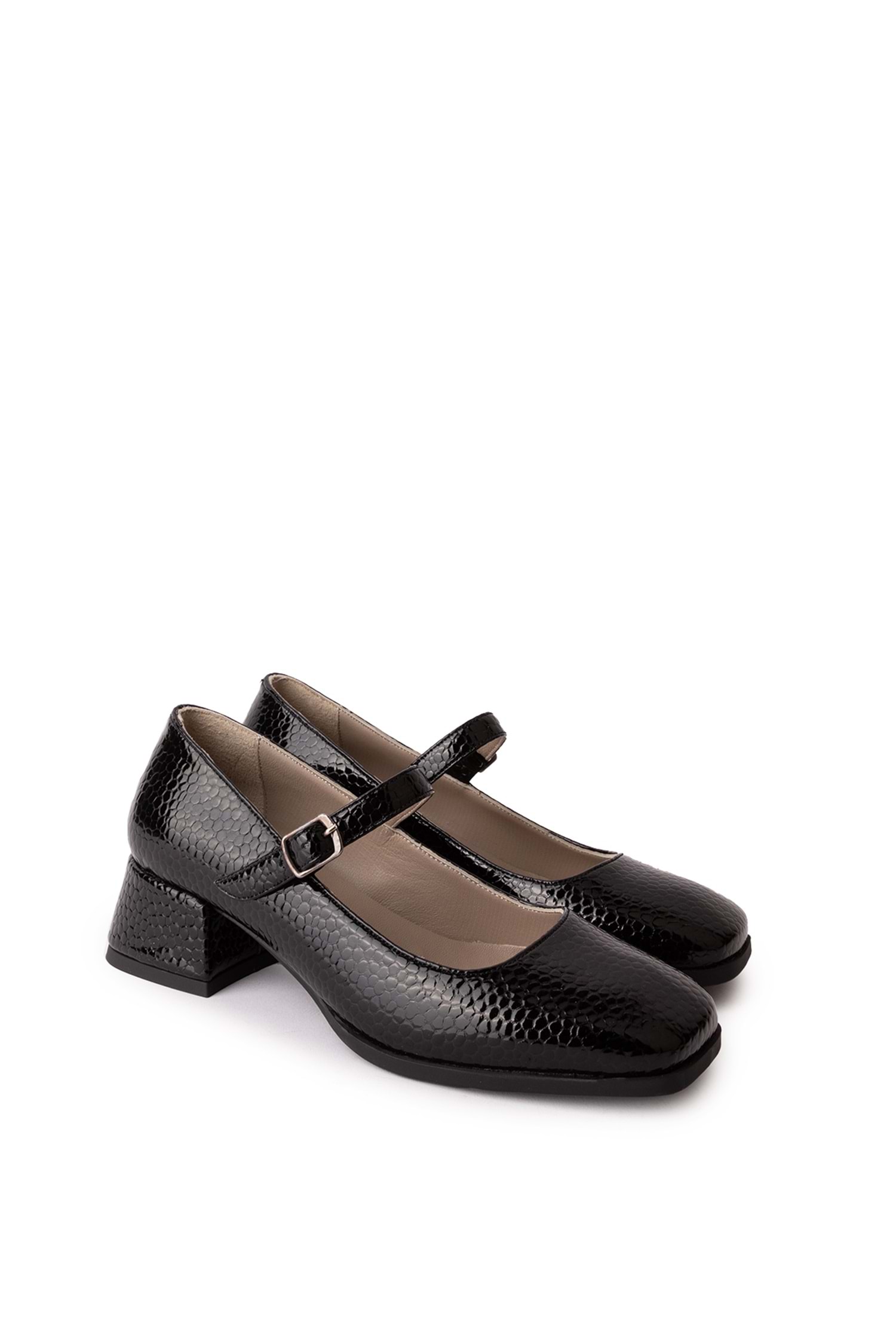 Gondol Hakiki Deri Kısa Topuklu Tek Bantlı Şık Topuklu vdt.141 - Siyah Petek - 36