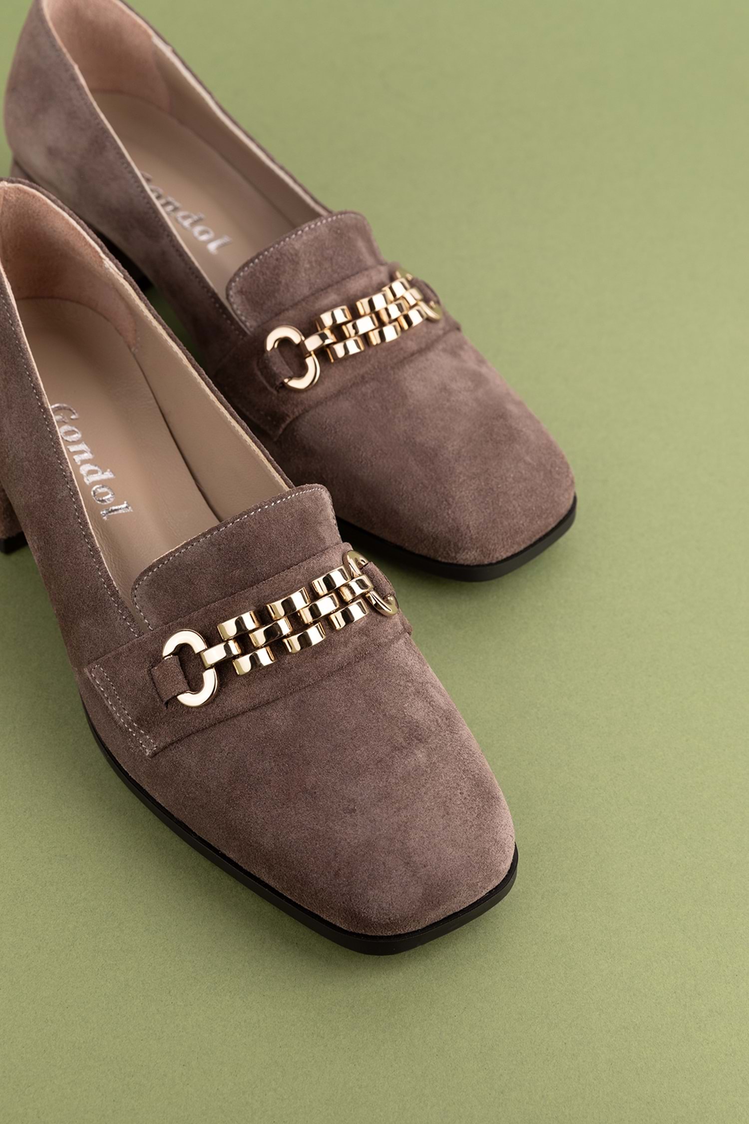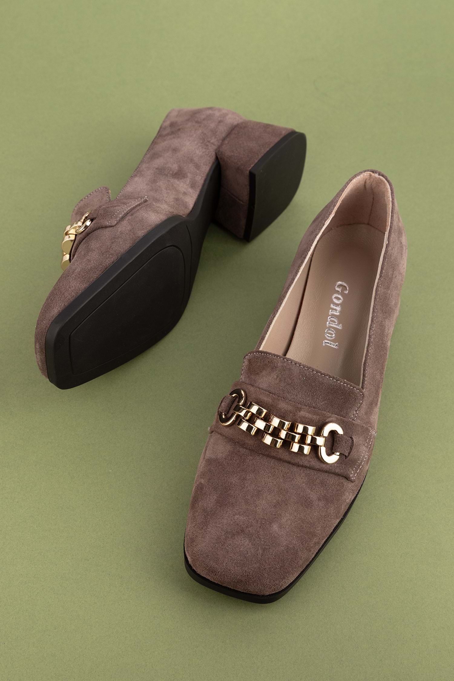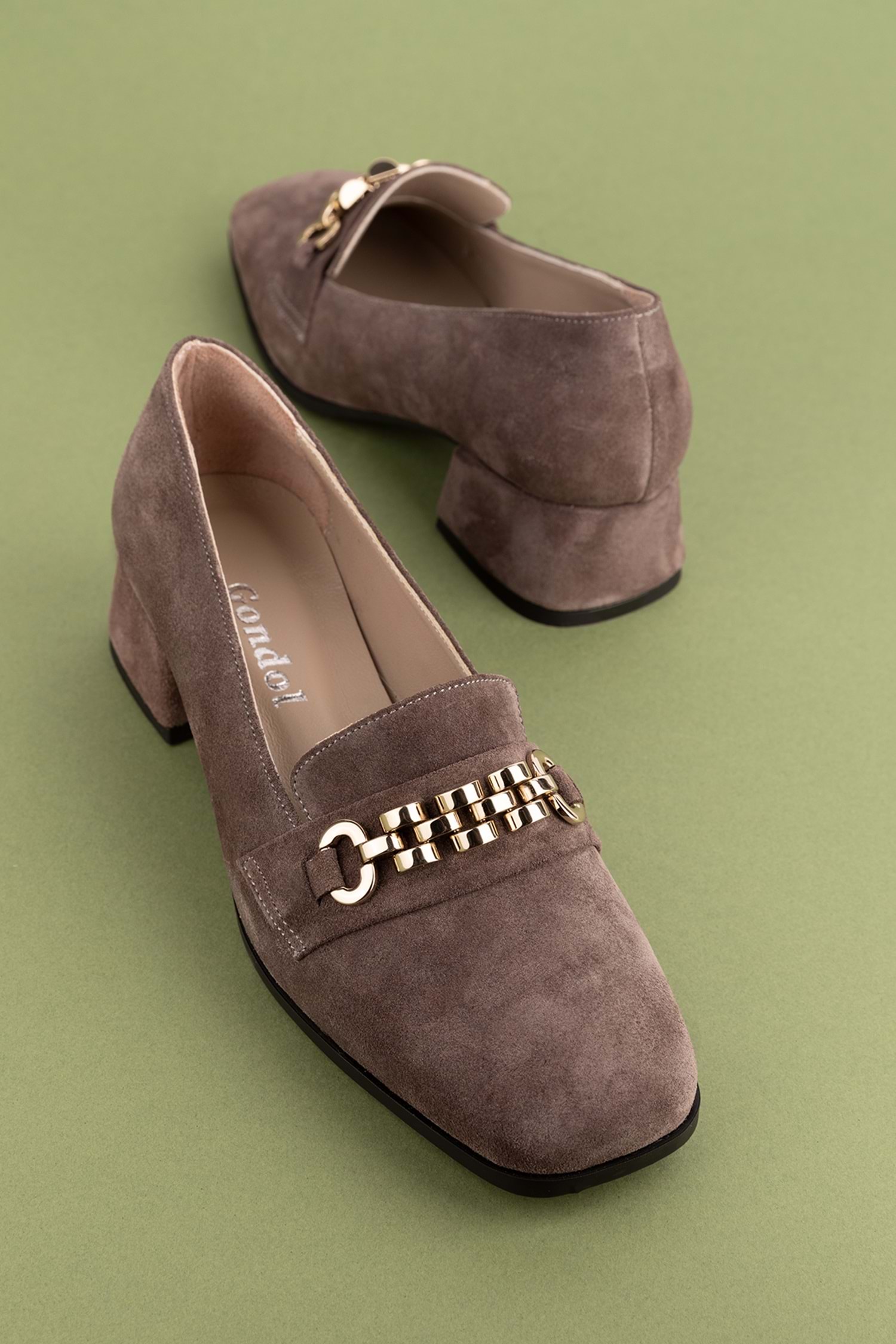 Gondol Hakiki Deri Kısa Topuklu Tokalı Şık Topuklu vdt.143 - Vizon Süet - 37