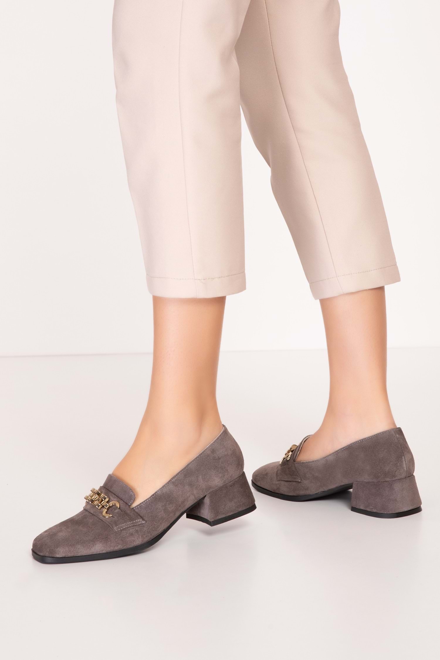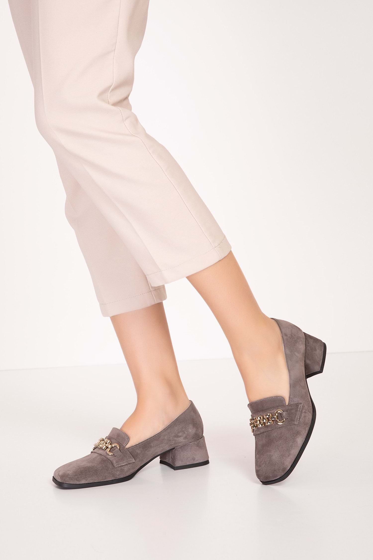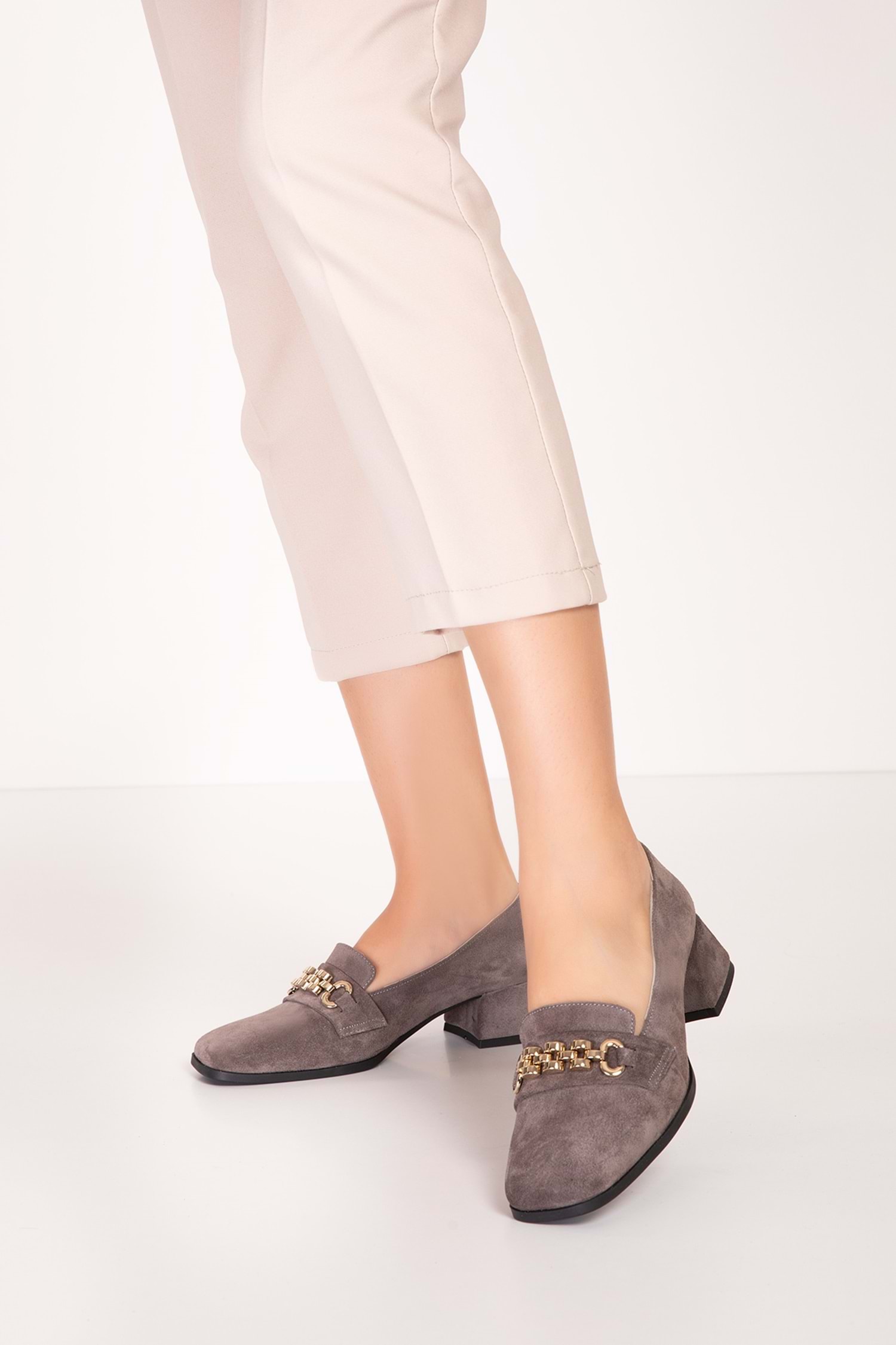 Gondol Hakiki Deri Kısa Topuklu Tokalı Şık Topuklu vdt.143 - Vizon Süet - 37