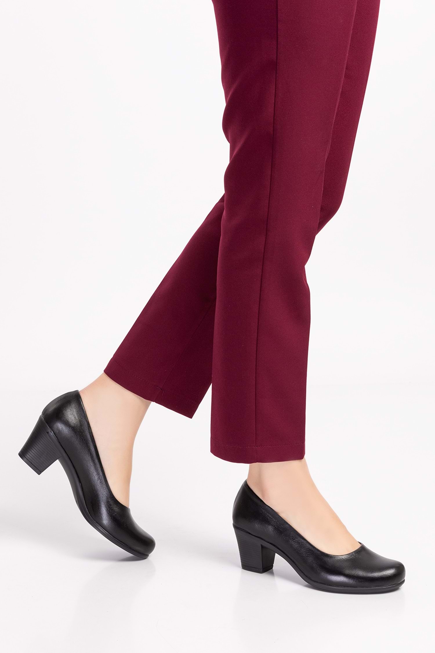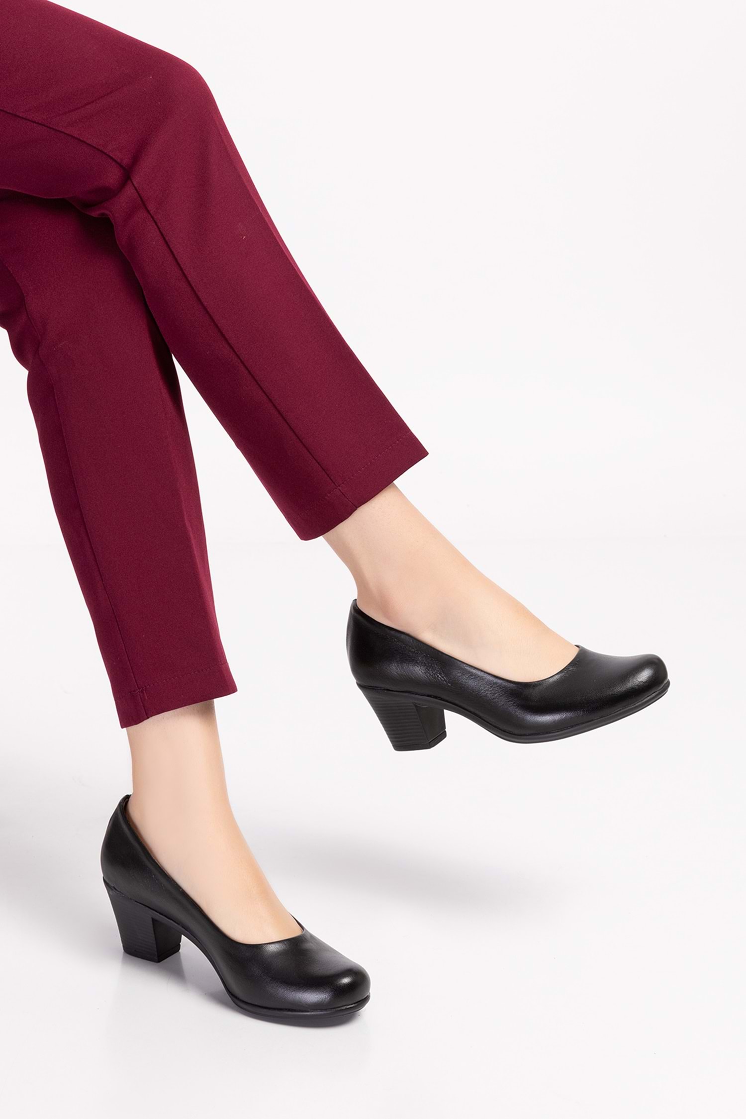 Gondol Hakiki Deri Klasik Orta Boy Topuklu Ayakkabı Vdt.200 - Siyah - 43