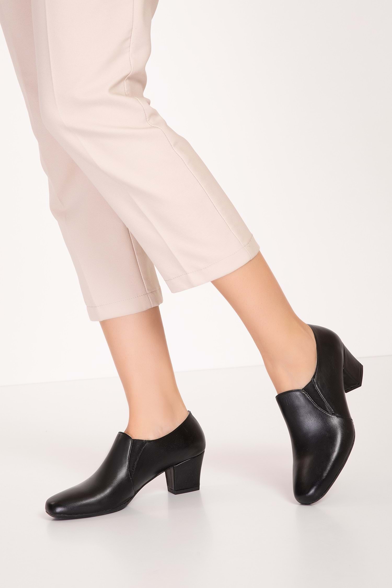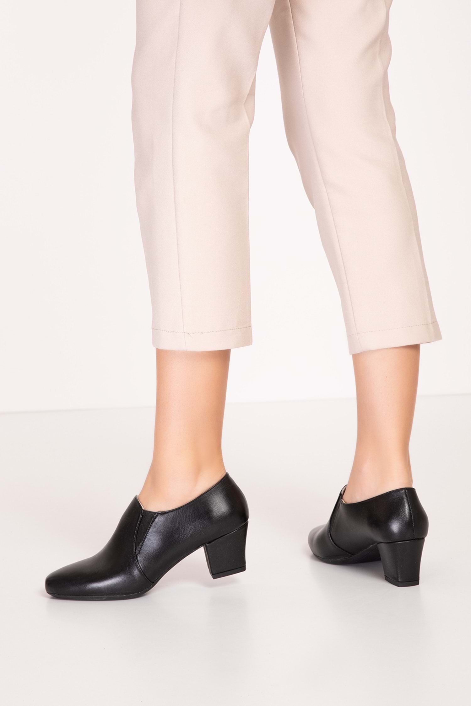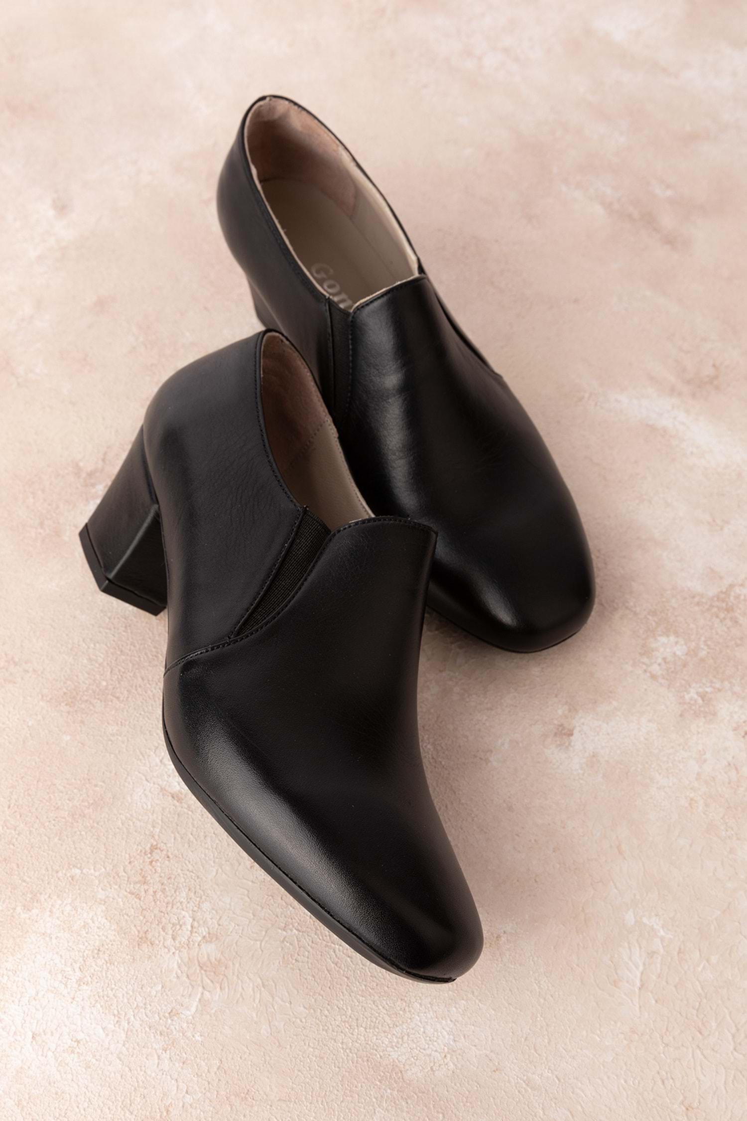 Gondol Hakiki Deri Klasik Orta Boy Topuklu Ayakkabı vdt.62 - Siyah - 36