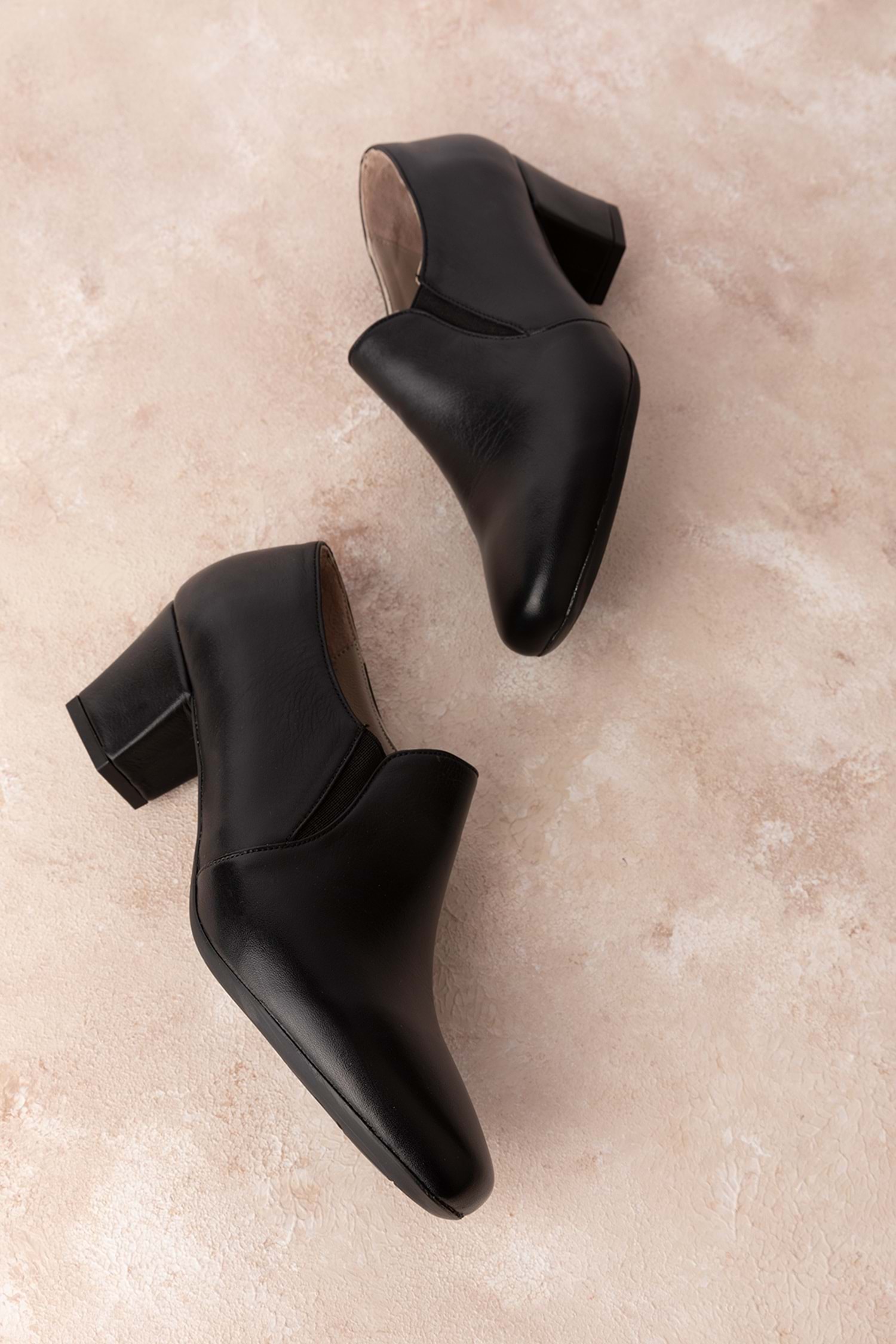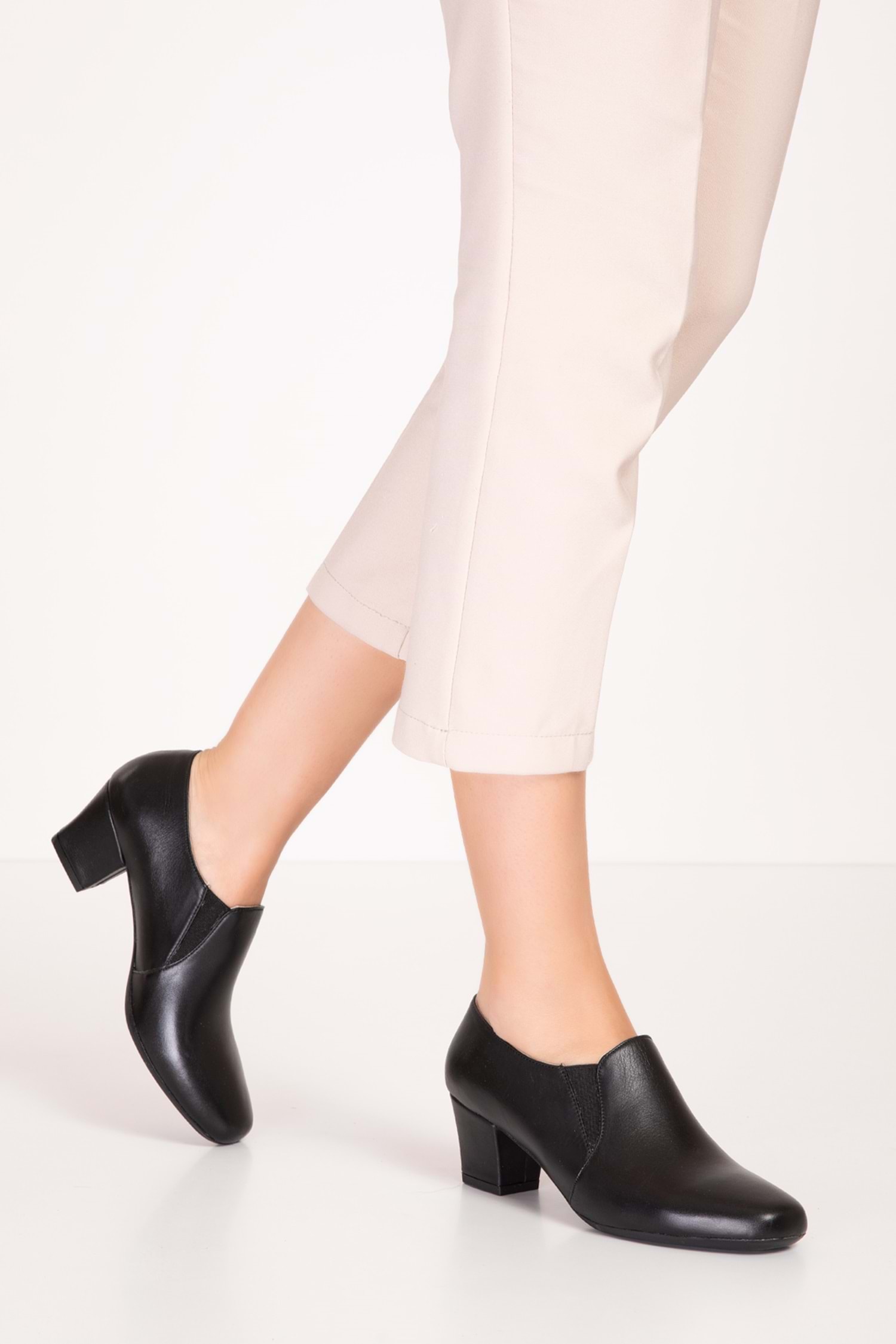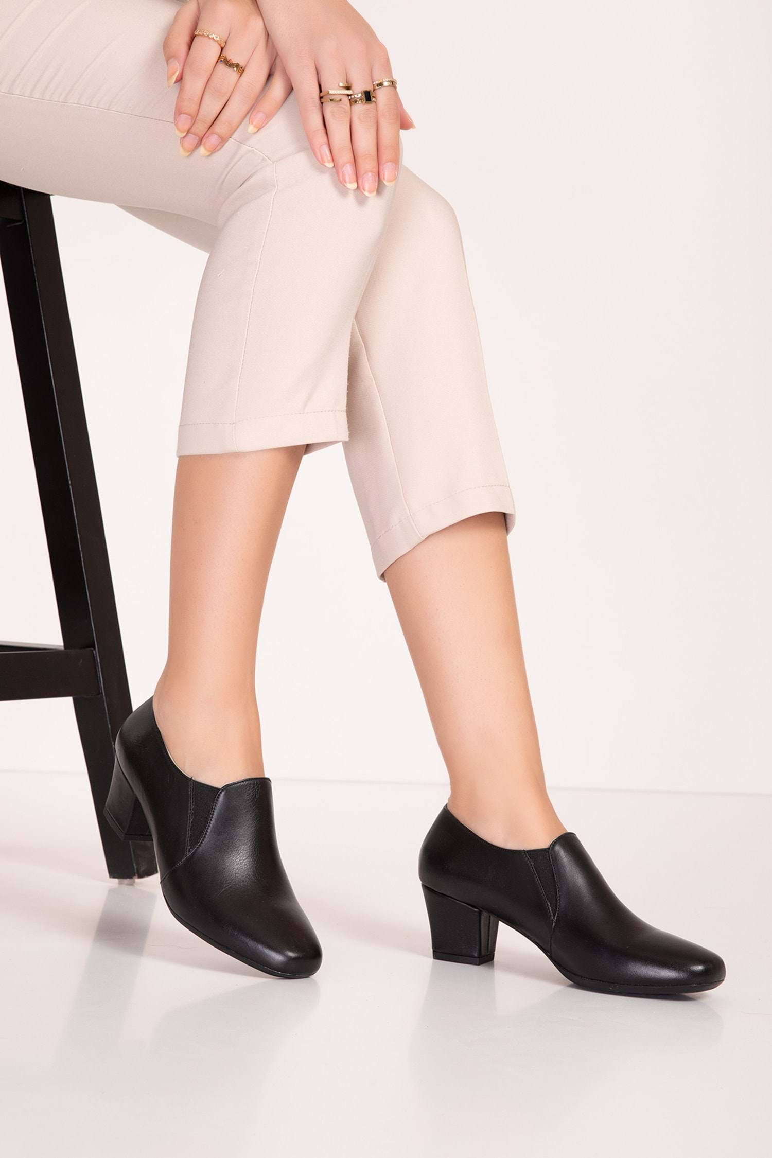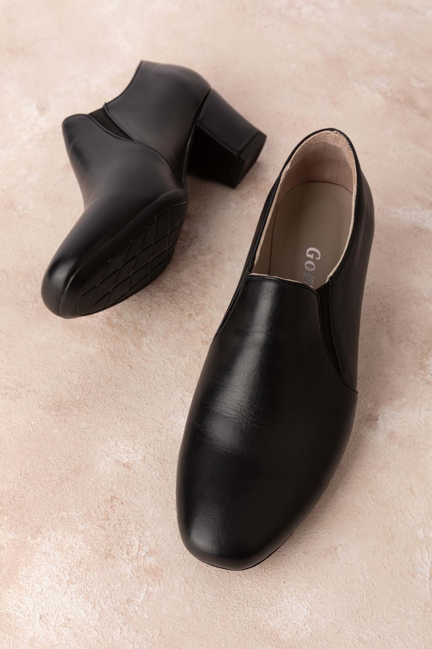 Gondol Hakiki Deri Klasik Orta Boy Topuklu Ayakkabı vdt.62 - Siyah - 36