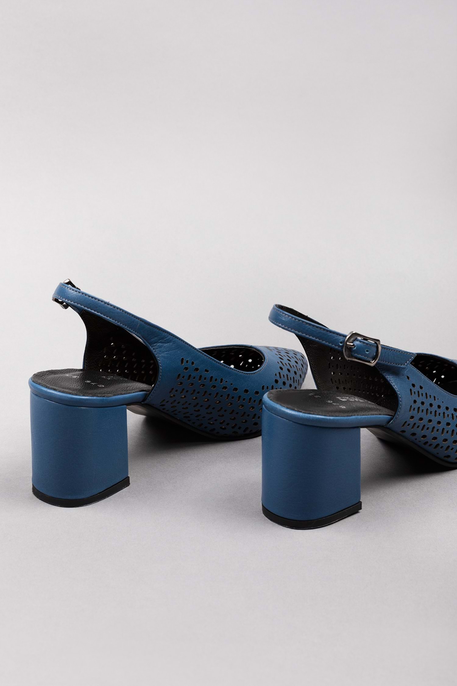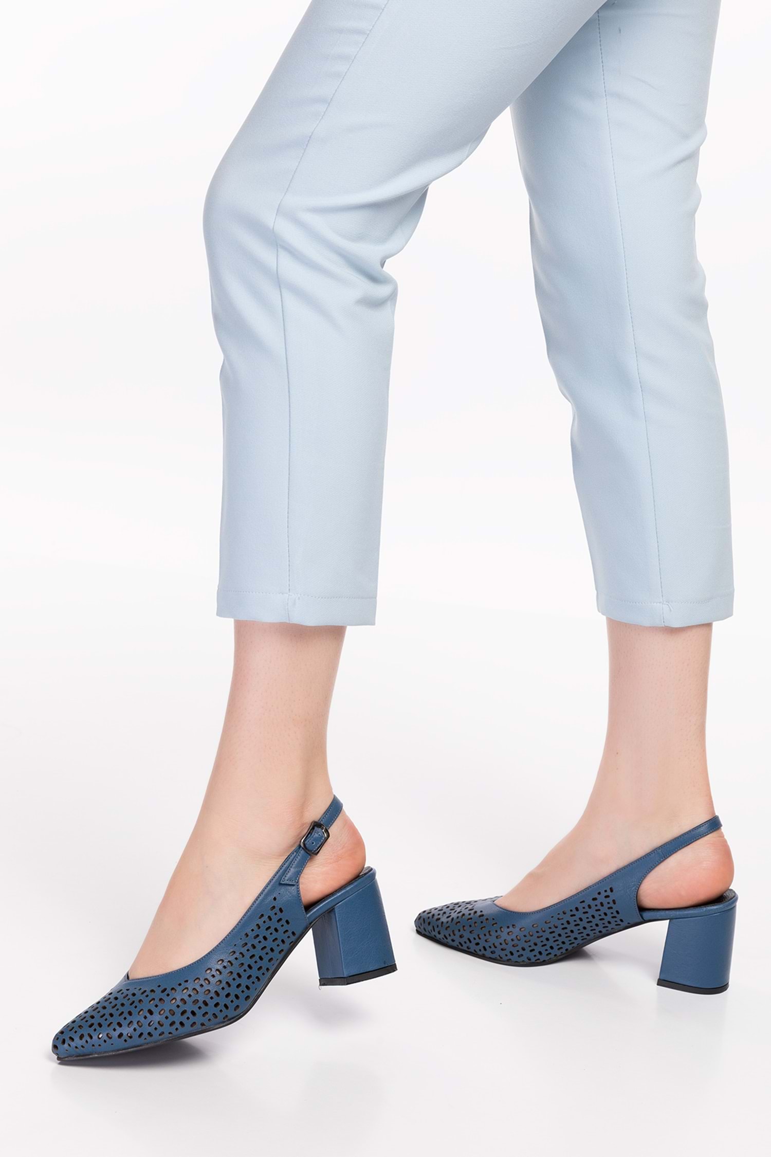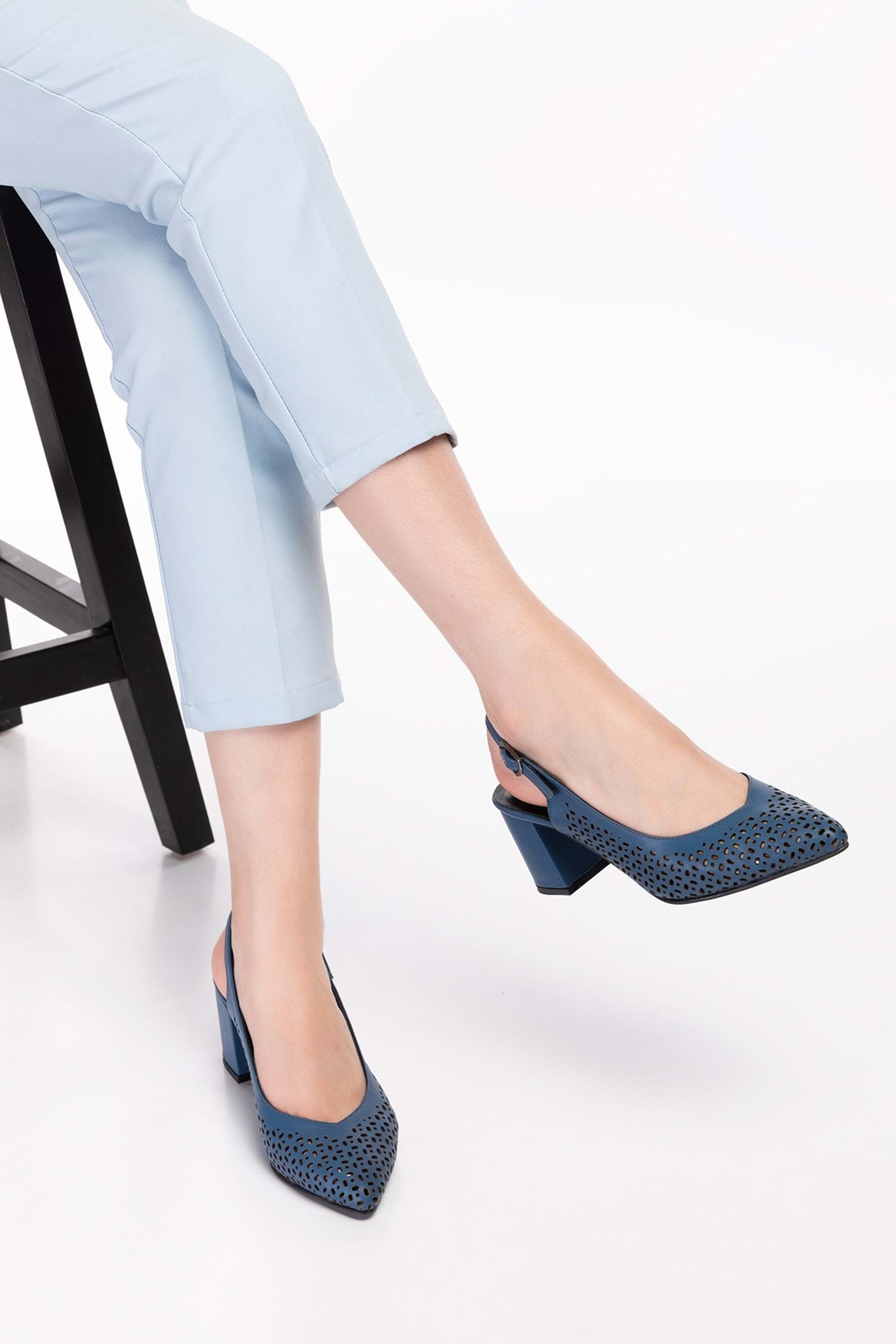 Gondol Hakiki Deri Lazer Kesim Şık Topuklu Ayakkabı şhn.876 - Mavi - 34