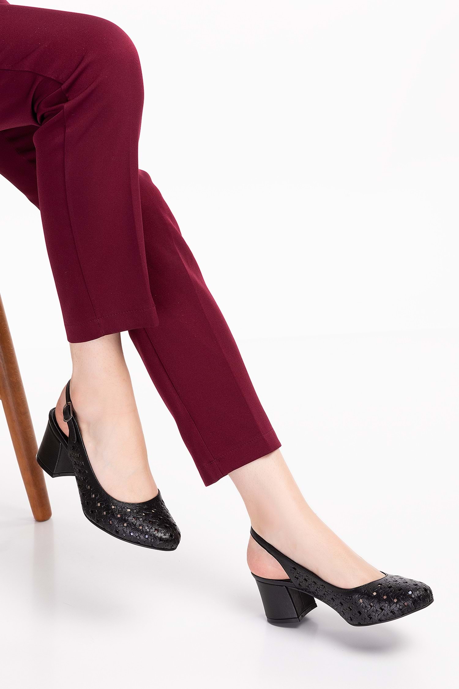 Gondol Hakiki Deri Lazer Kesim Şık Topuklu Ayakkabı şhn.882 - Siyah - 34