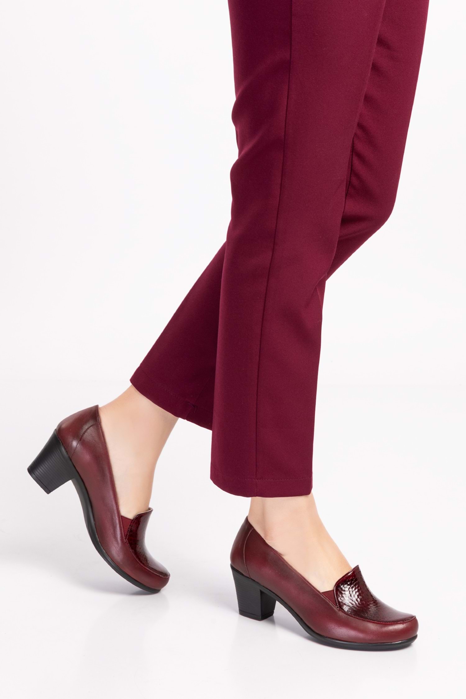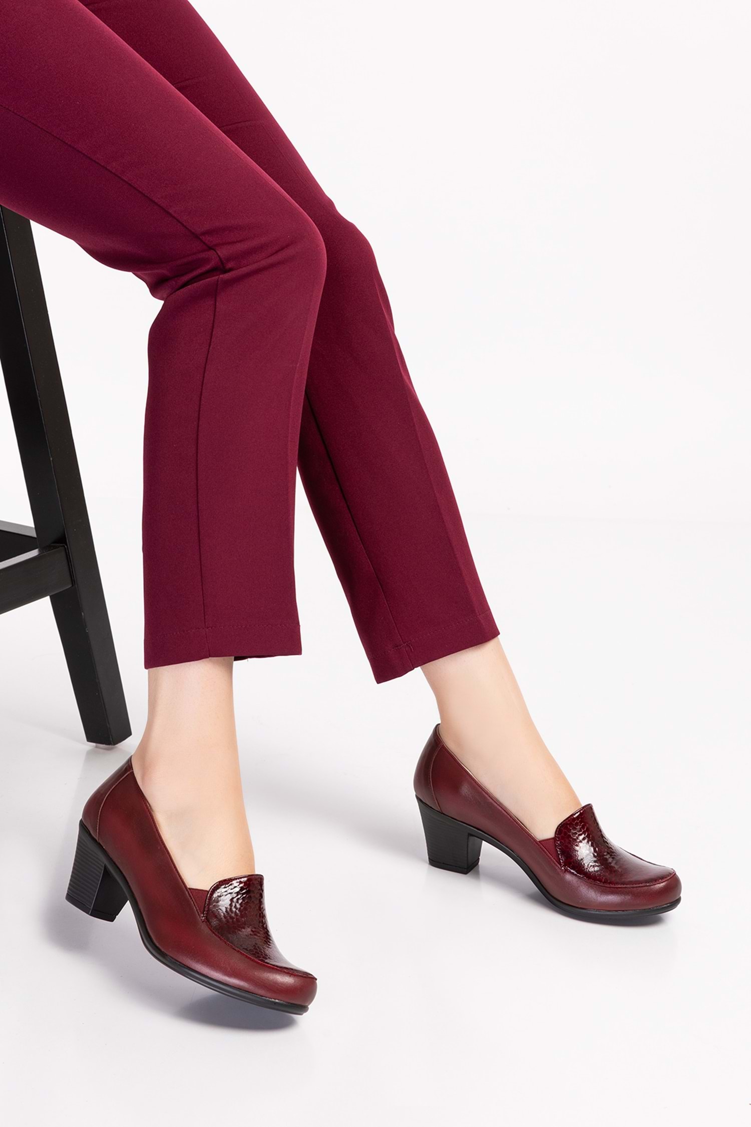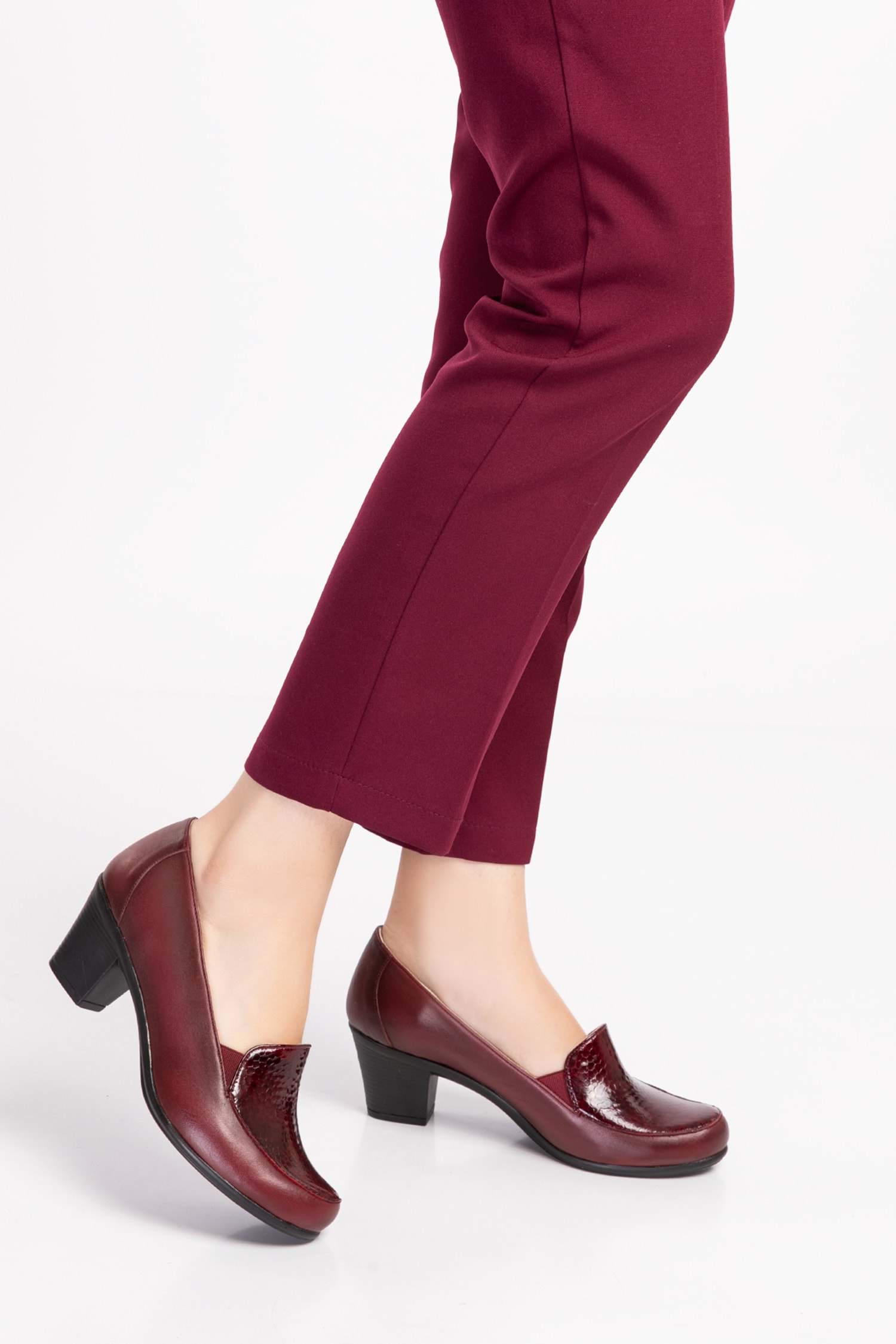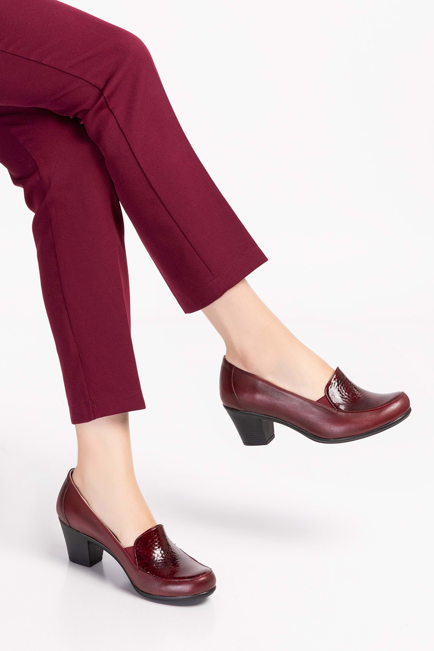 Gondol Hakiki Deri Rahat Klasik Topuklu Ayakkabı vdt.206 - Bordo Petek - 34