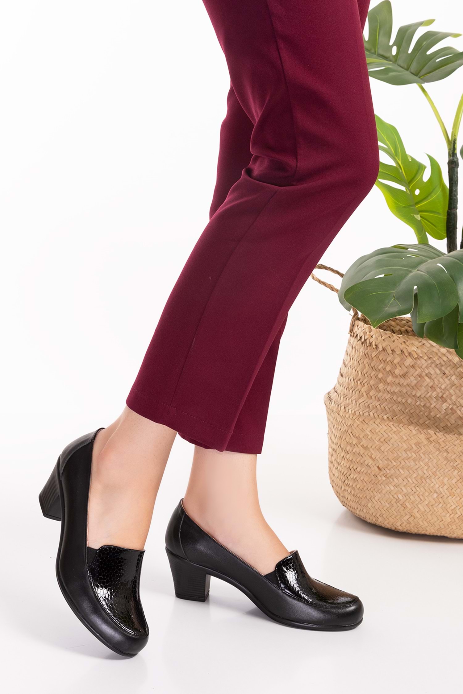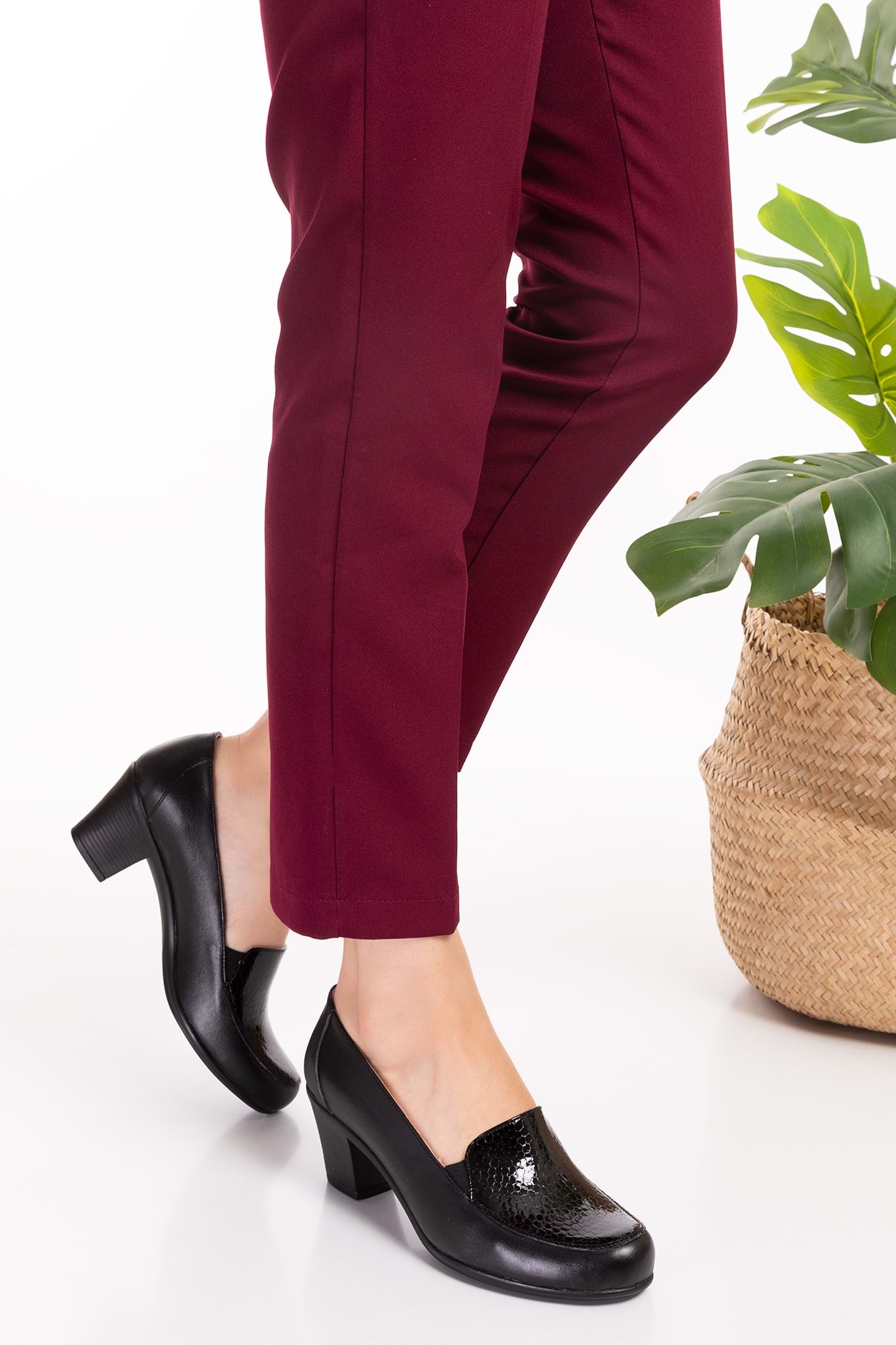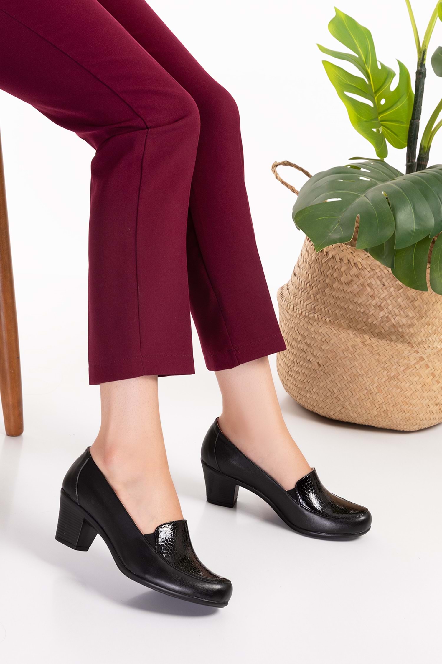 Gondol Hakiki Deri Rahat Klasik Topuklu Ayakkabı vdt.206 - Siyah Petek - 34