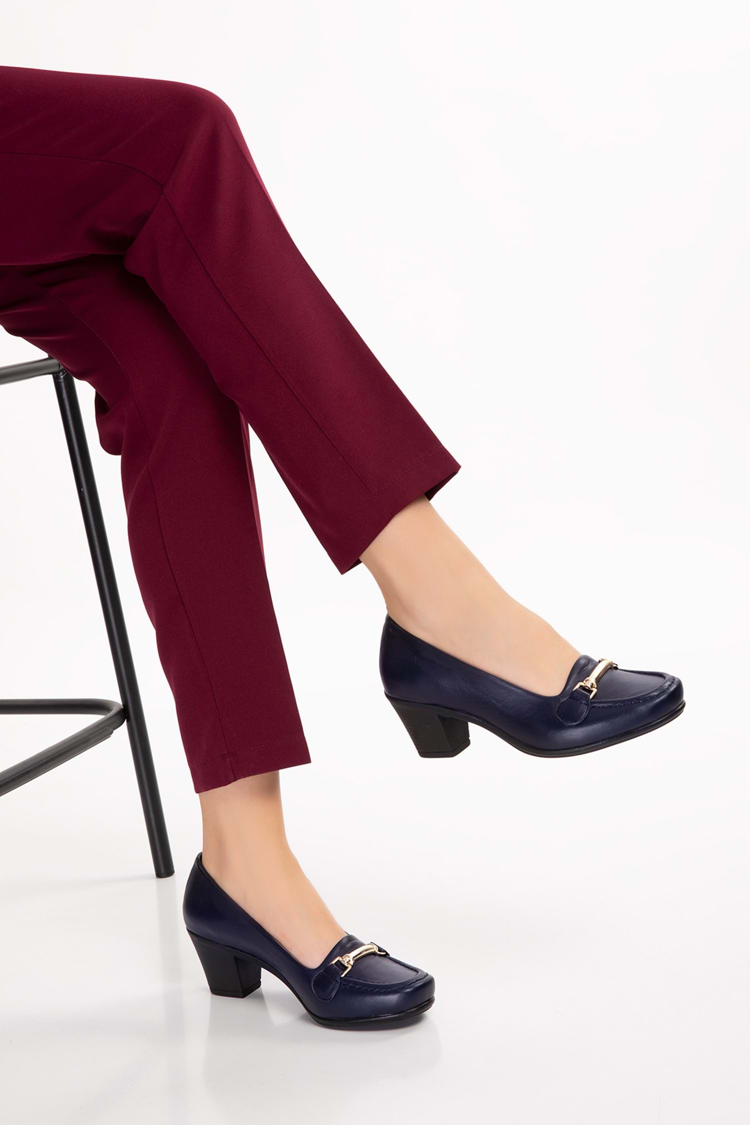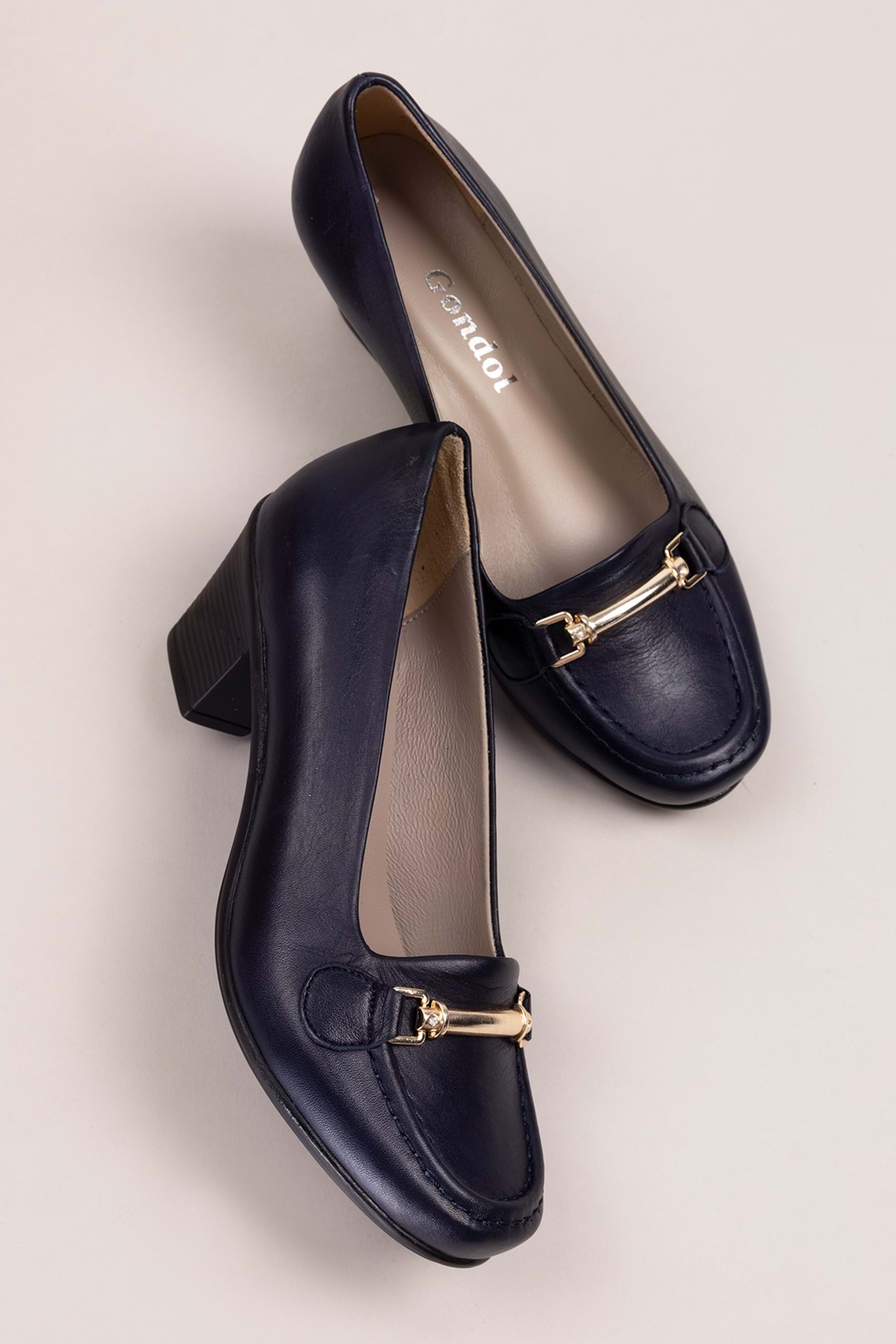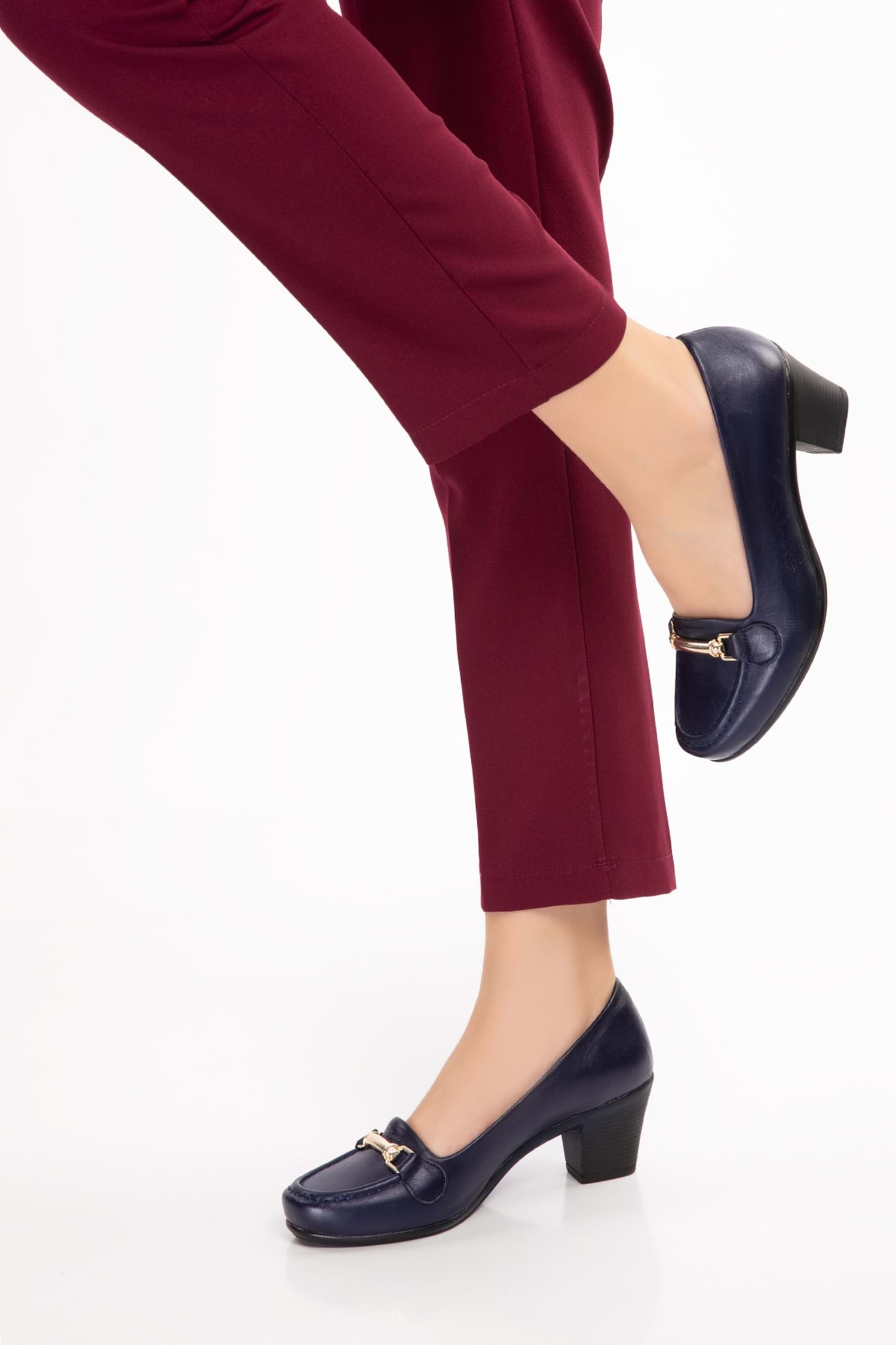 Gondol Hakiki Deri Rahat Klasik Topuklu Ayakkabı vdt.71 - Lacivert - 40