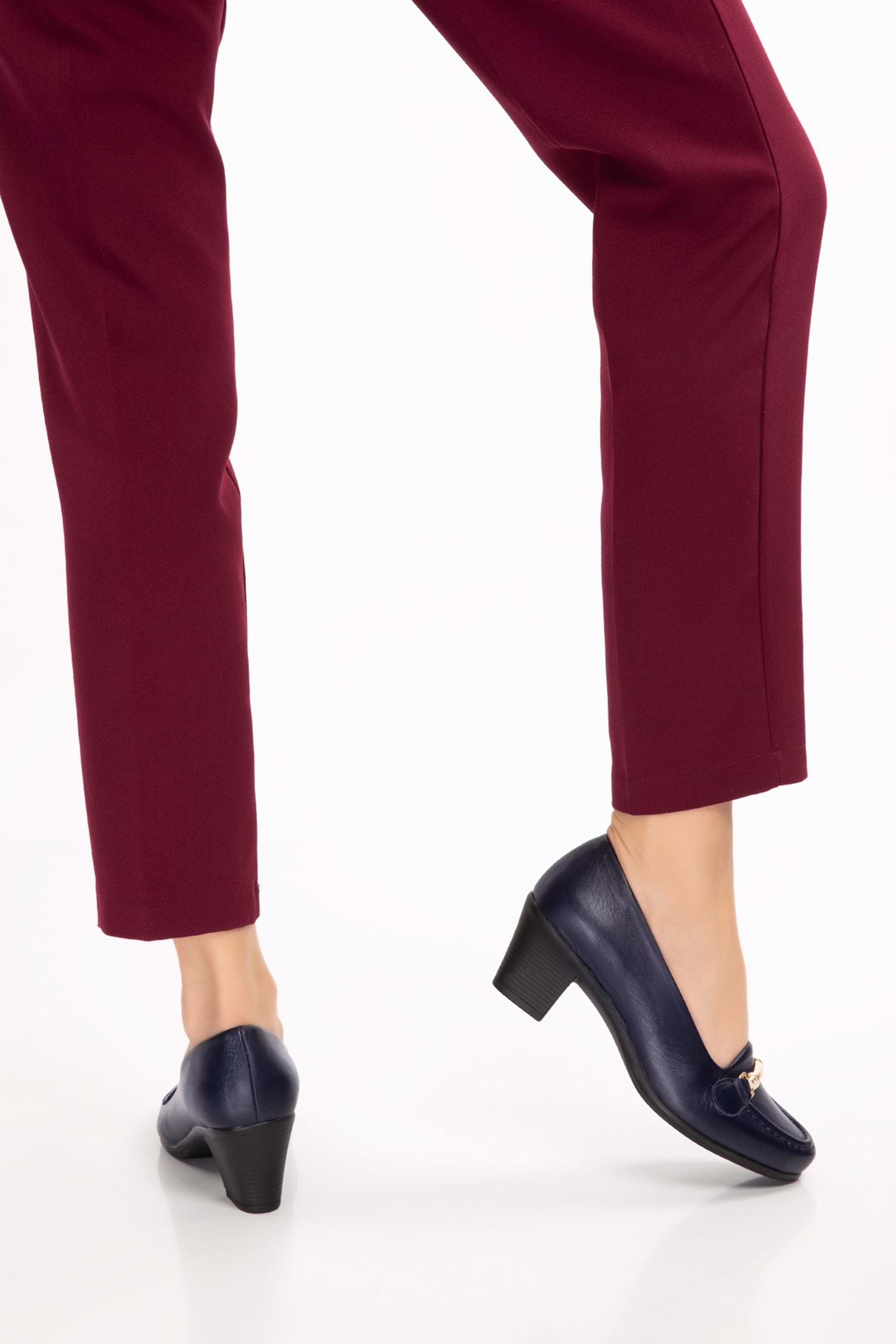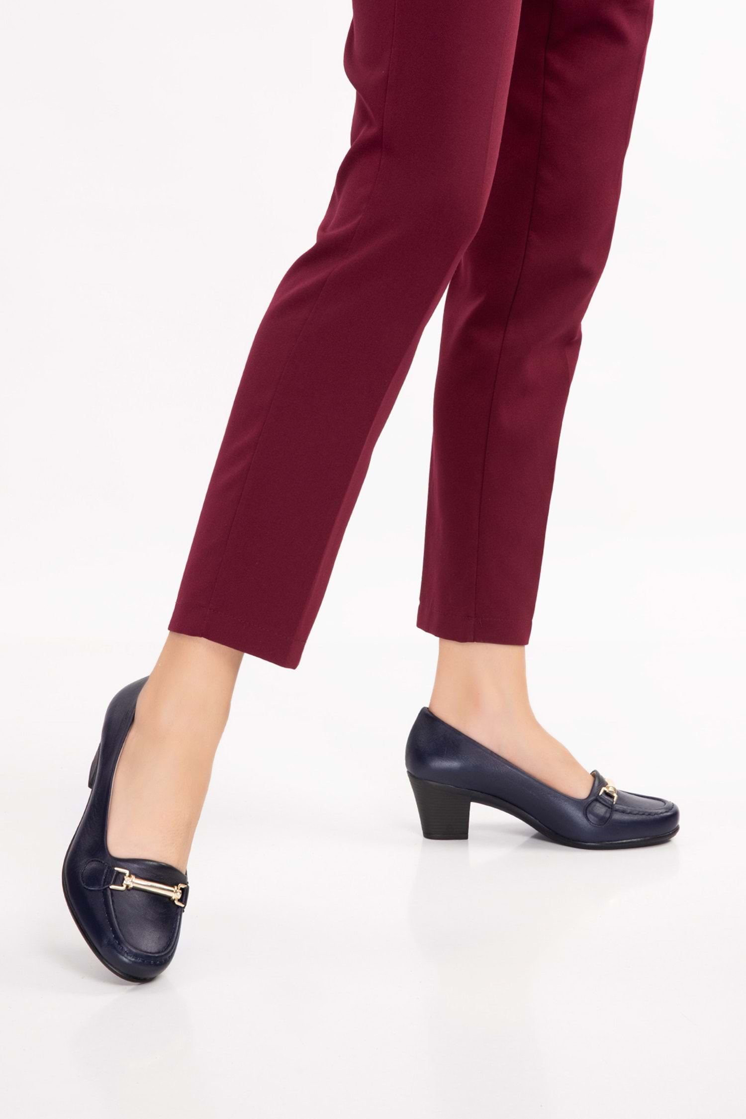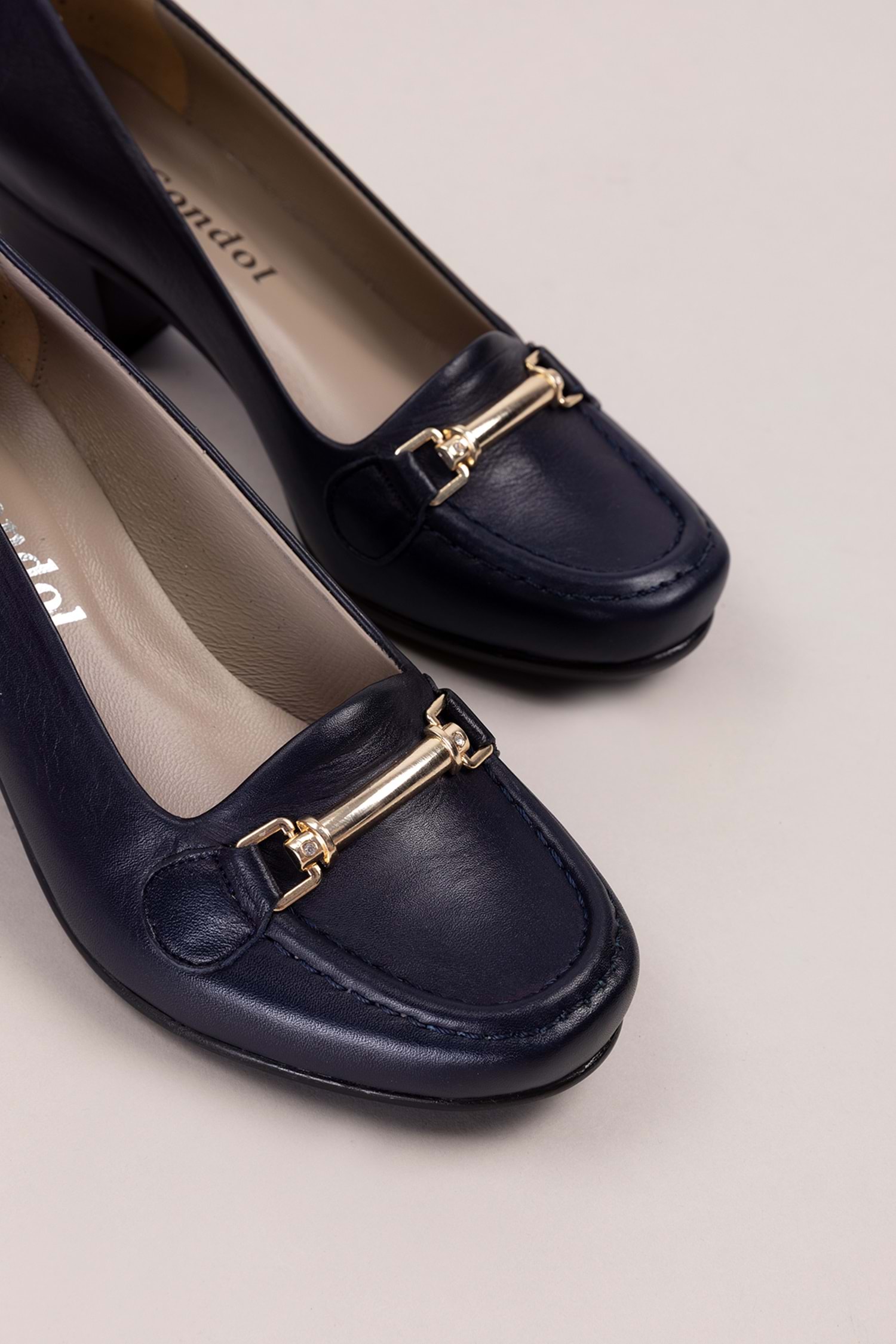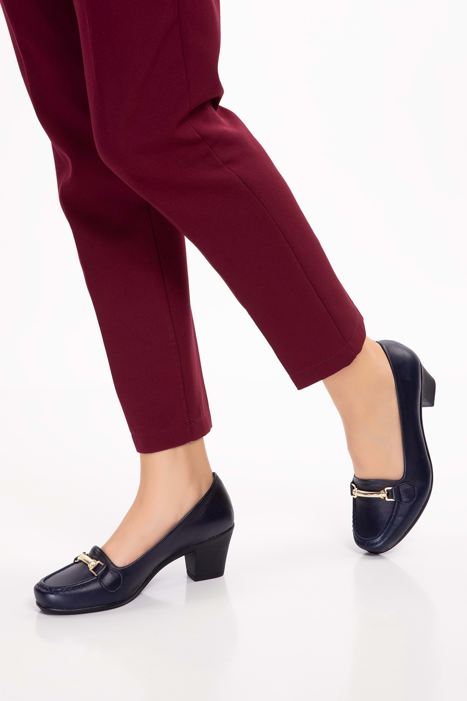 Gondol Hakiki Deri Rahat Klasik Topuklu Ayakkabı vdt.71 - Lacivert - 40