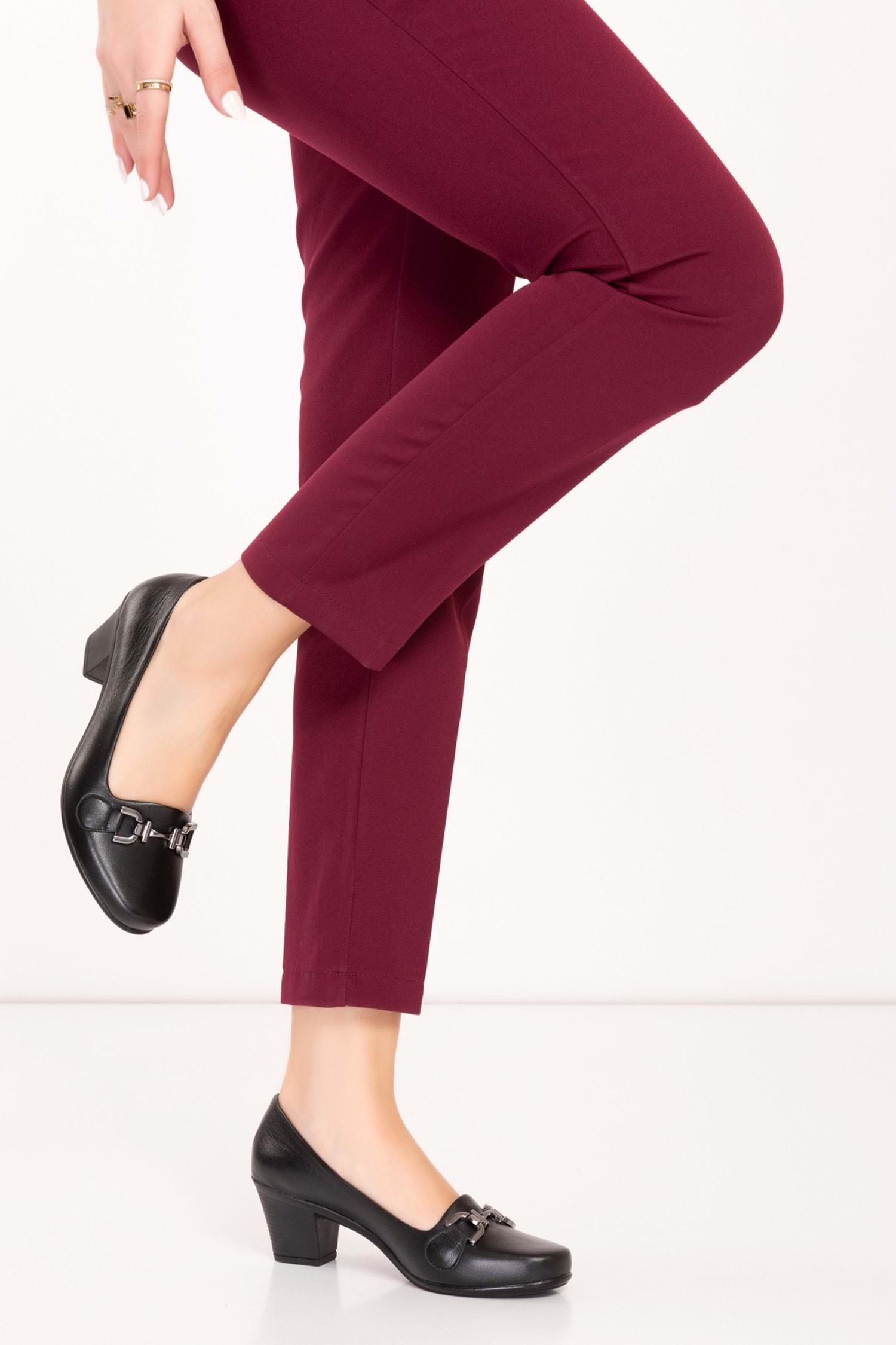 Gondol Hakiki Deri Rahat Klasik Topuklu Ayakkabı vdt.74 - Siyah - 39