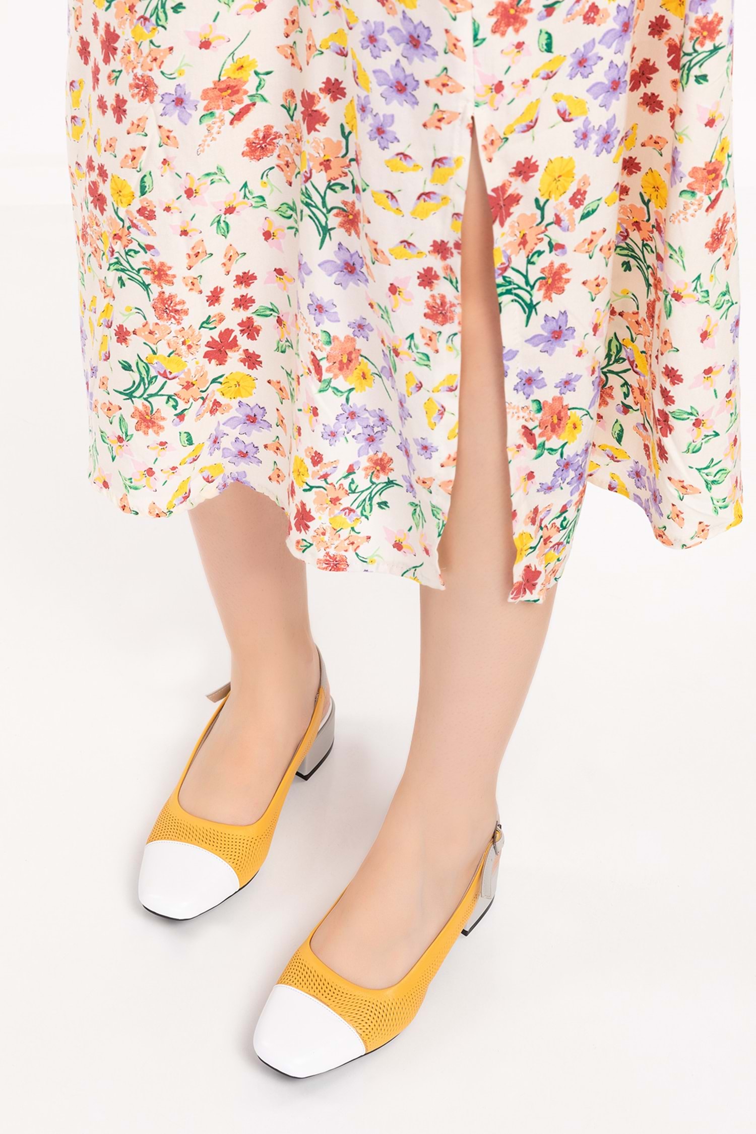 Gondol Hakiki Deri Renkli Kombin Klasik Topuklu Ayakkabı vdt.400 - Sarı Beyaz Gri - 35