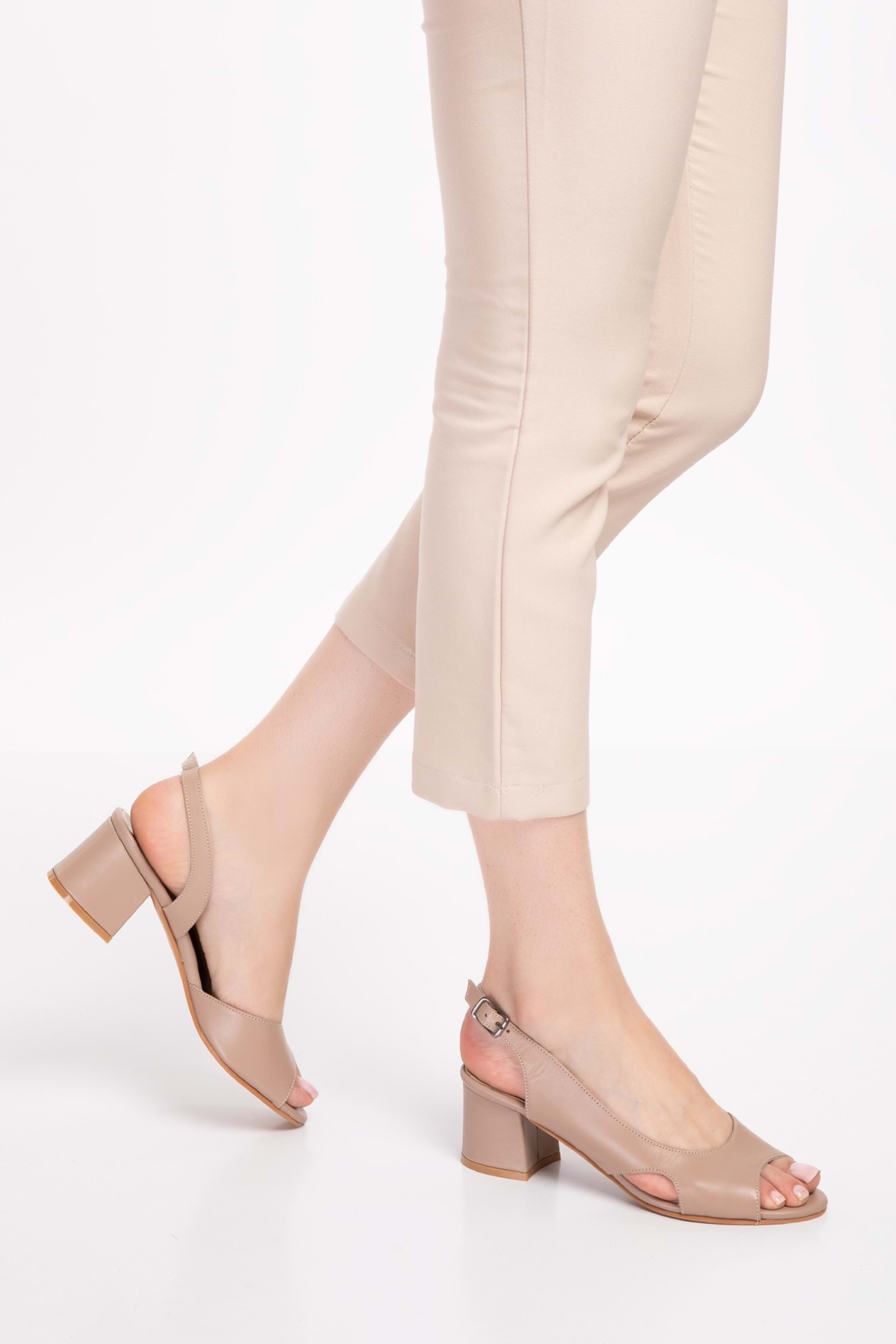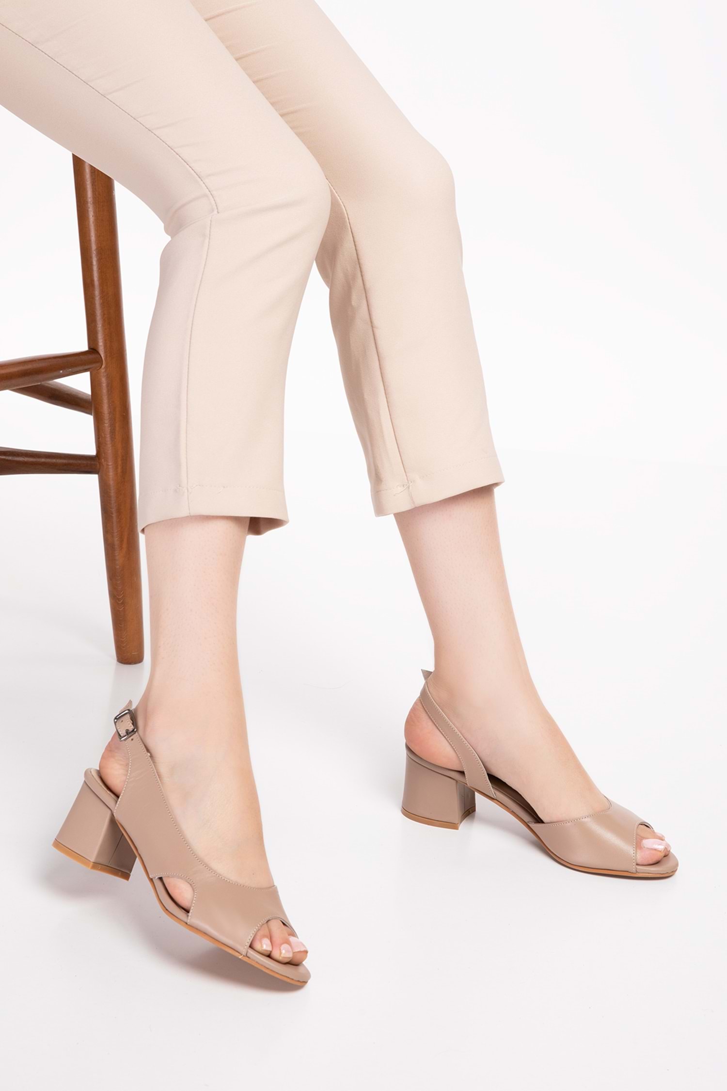 Gondol Hakiki Deri Topuklu Ayakkabı şhn.0236 - Vizon - 35