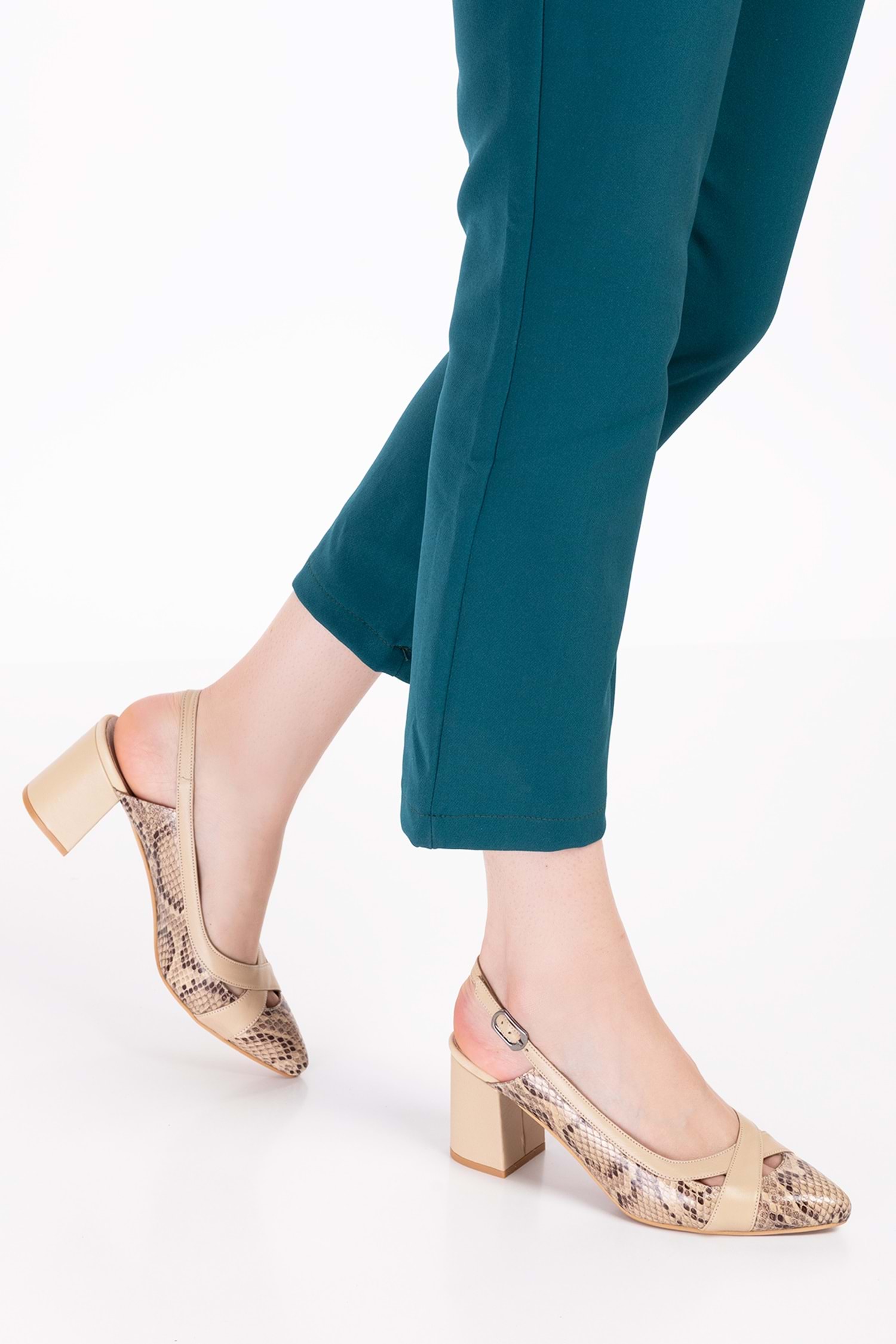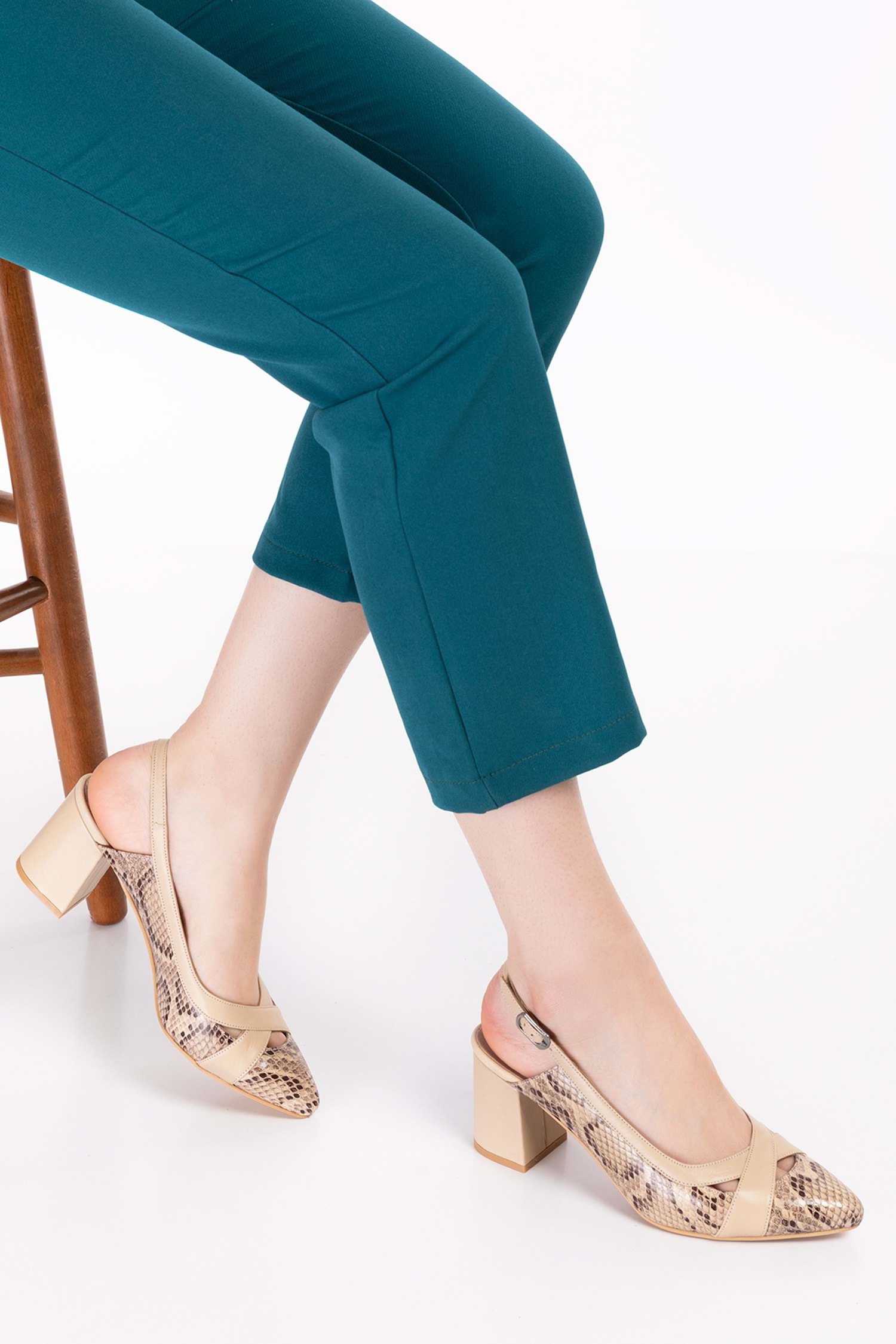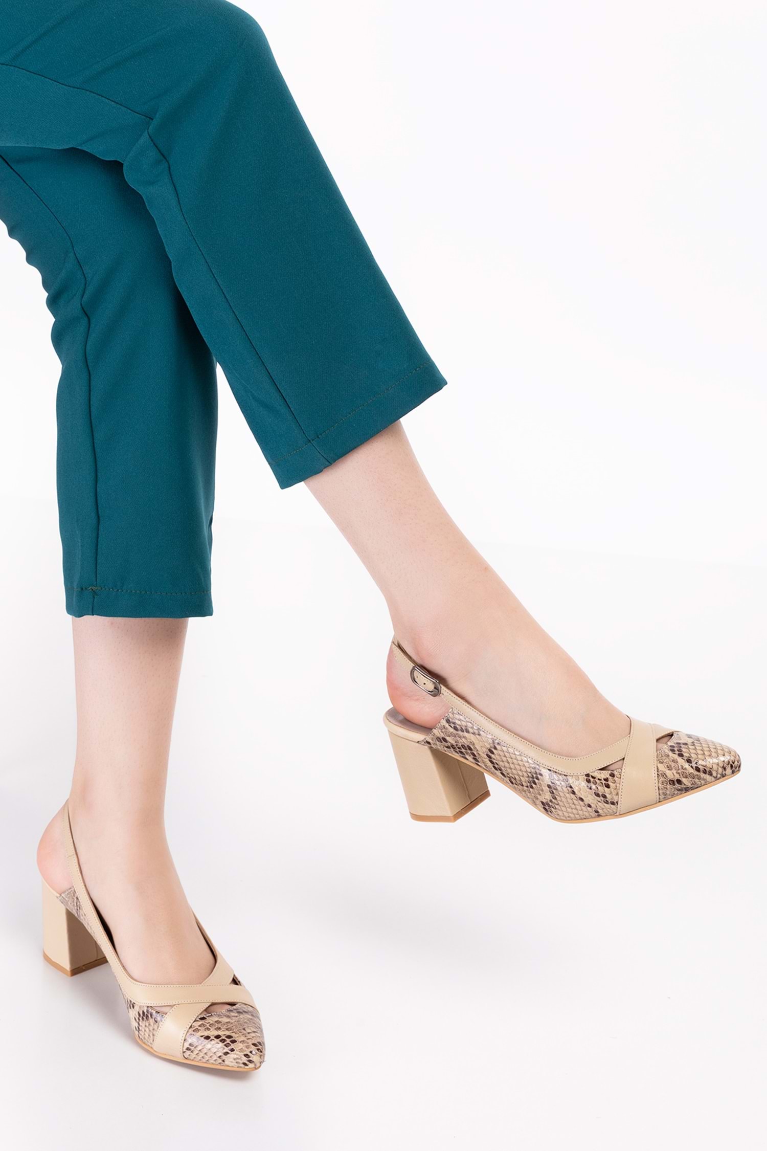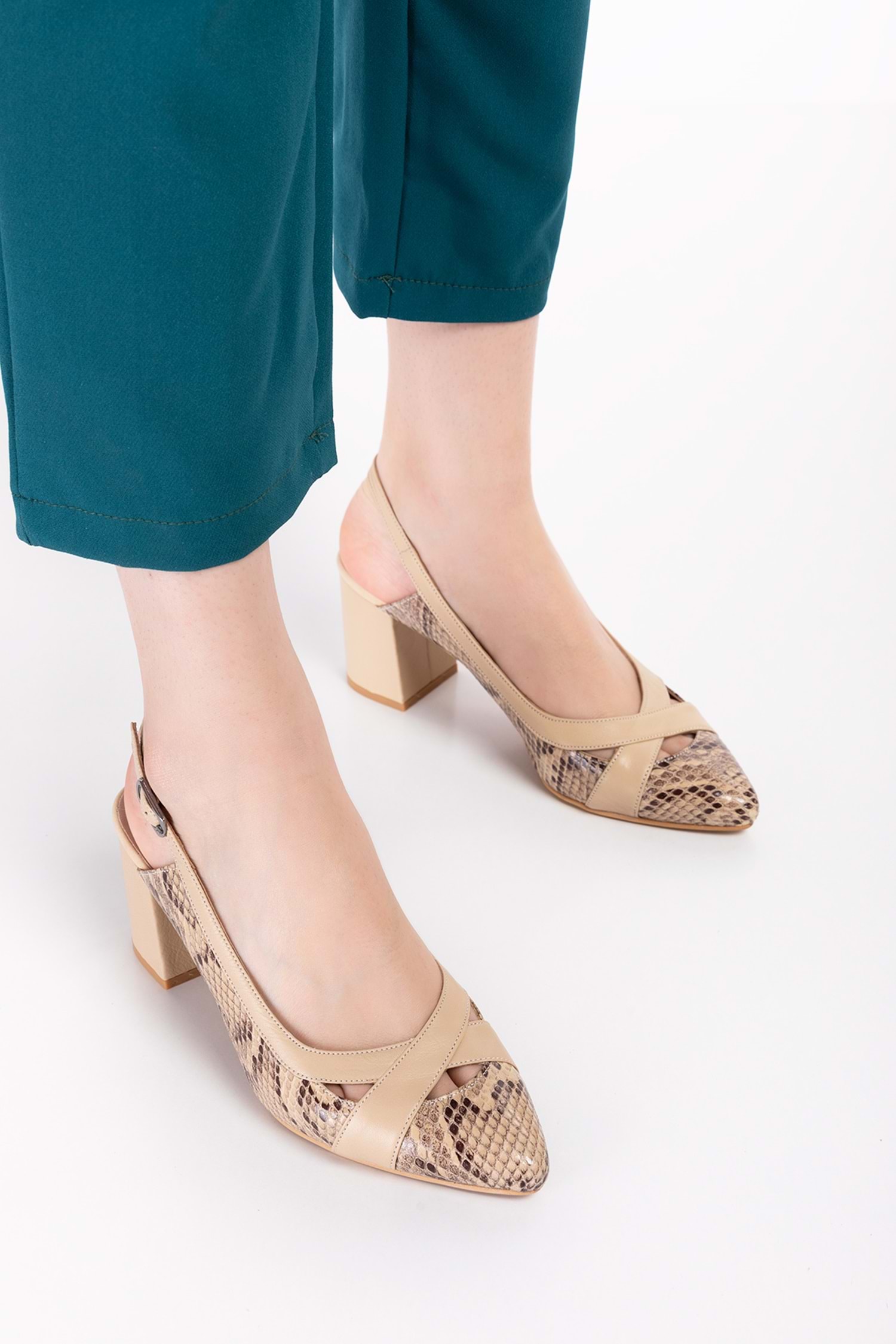 Gondol Hakiki Deri Yılan Desen Ayrıntılı Topuklu Ayakkabı şhn.0738 - Bej Yılan - 34