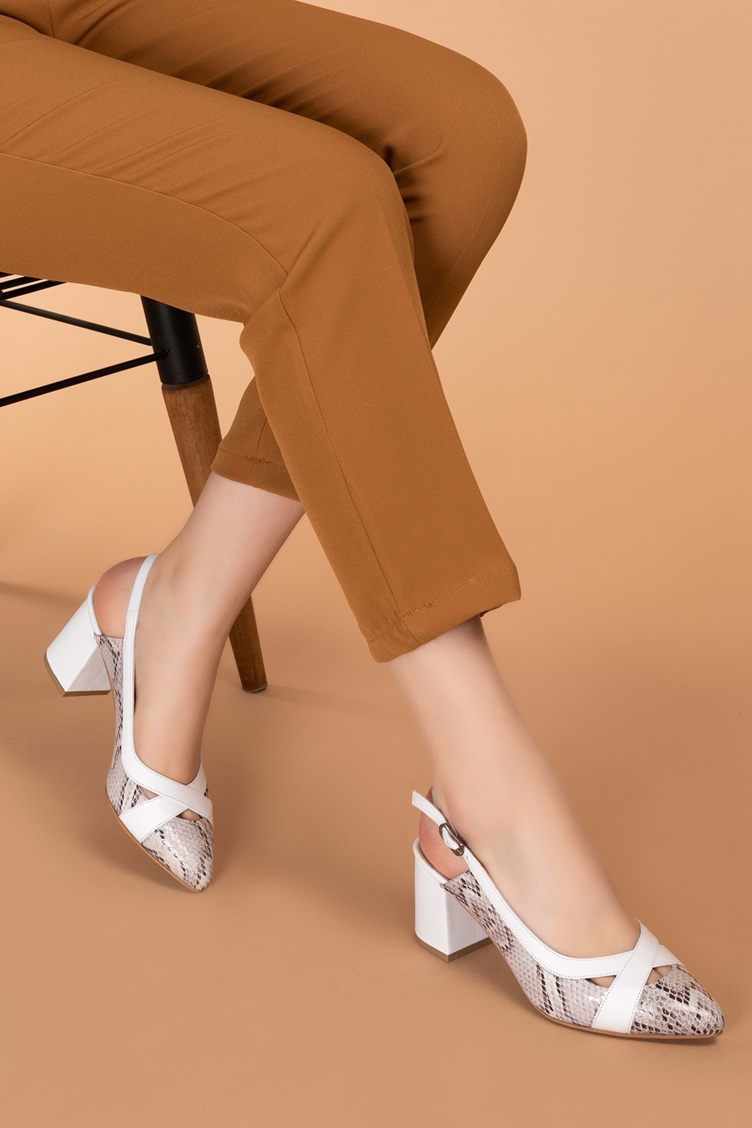 Gondol Hakiki Deri Yılan Desen Ayrıntılı Topuklu Ayakkabı şhn.0738 - Beyaz Yılan - 36