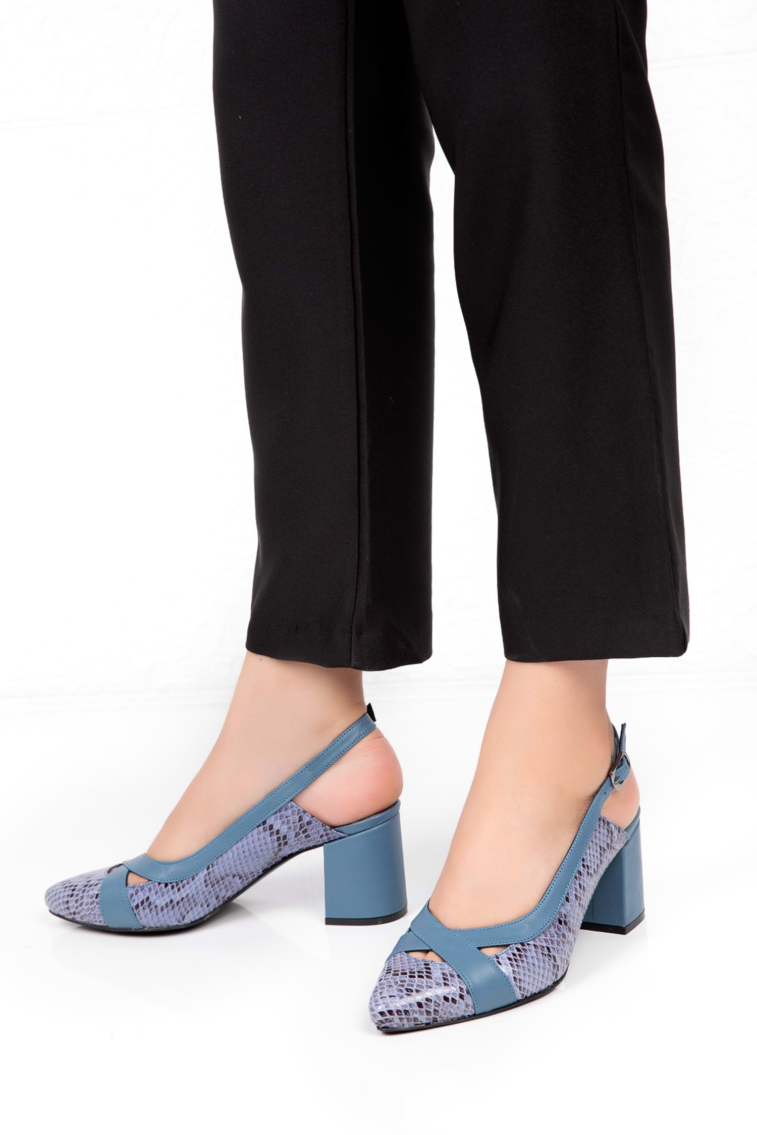 Gondol Hakiki Deri Yılan Desen Ayrıntılı Topuklu Ayakkabı şhn.0738 - Mavi - 42