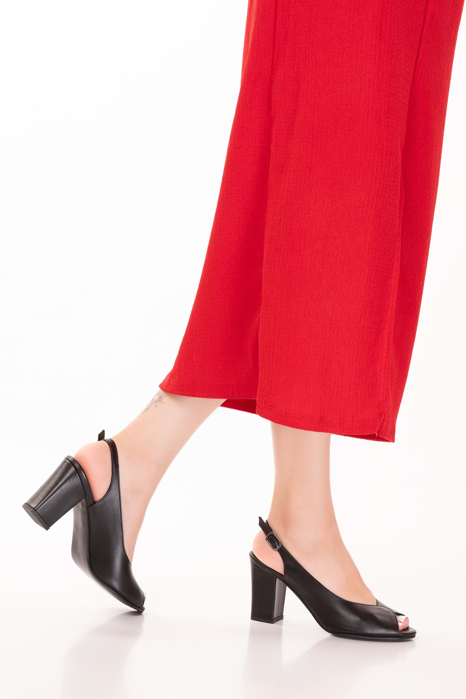 Gondol Kadın Hakiki Deri Klasik Topuklu Ayakkabı şhn.0091 - Siyah Cilt - 34