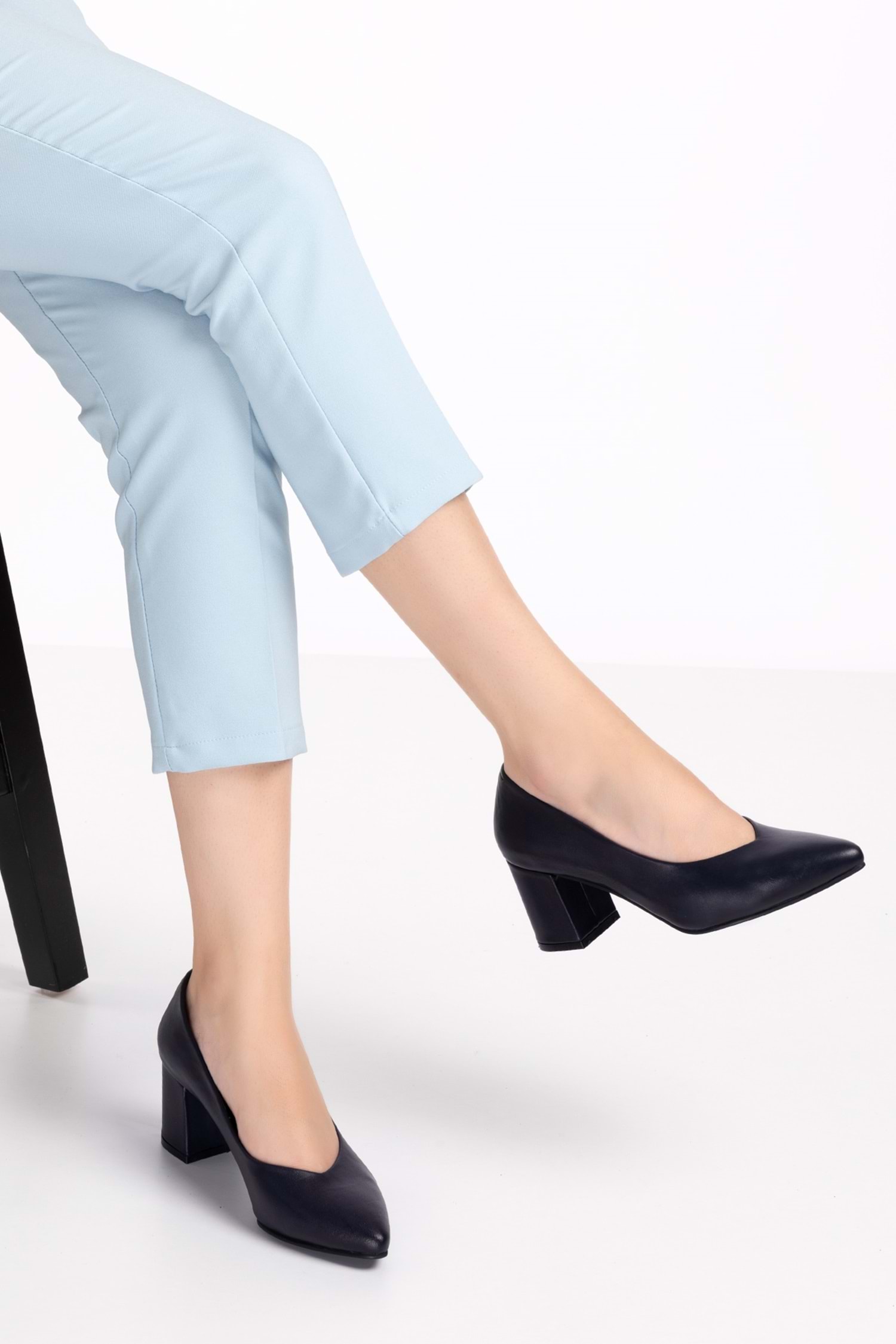 Gondol Kadın Hakiki Deri Klasik Topuklu Ayakkabı şhn.1930 - Lacivert - 39