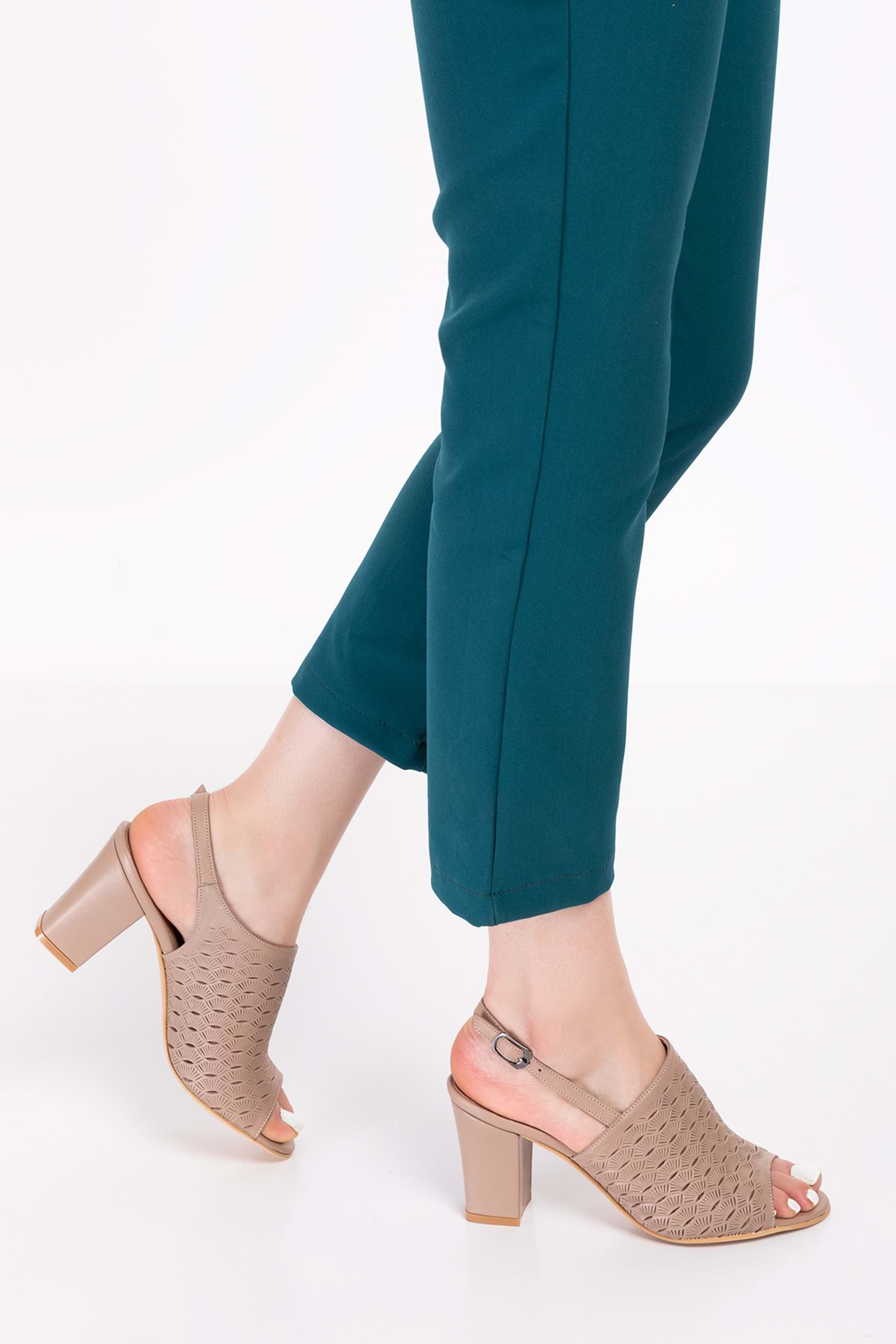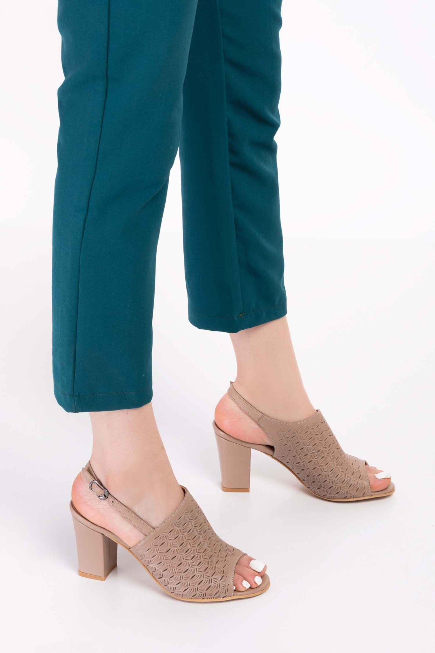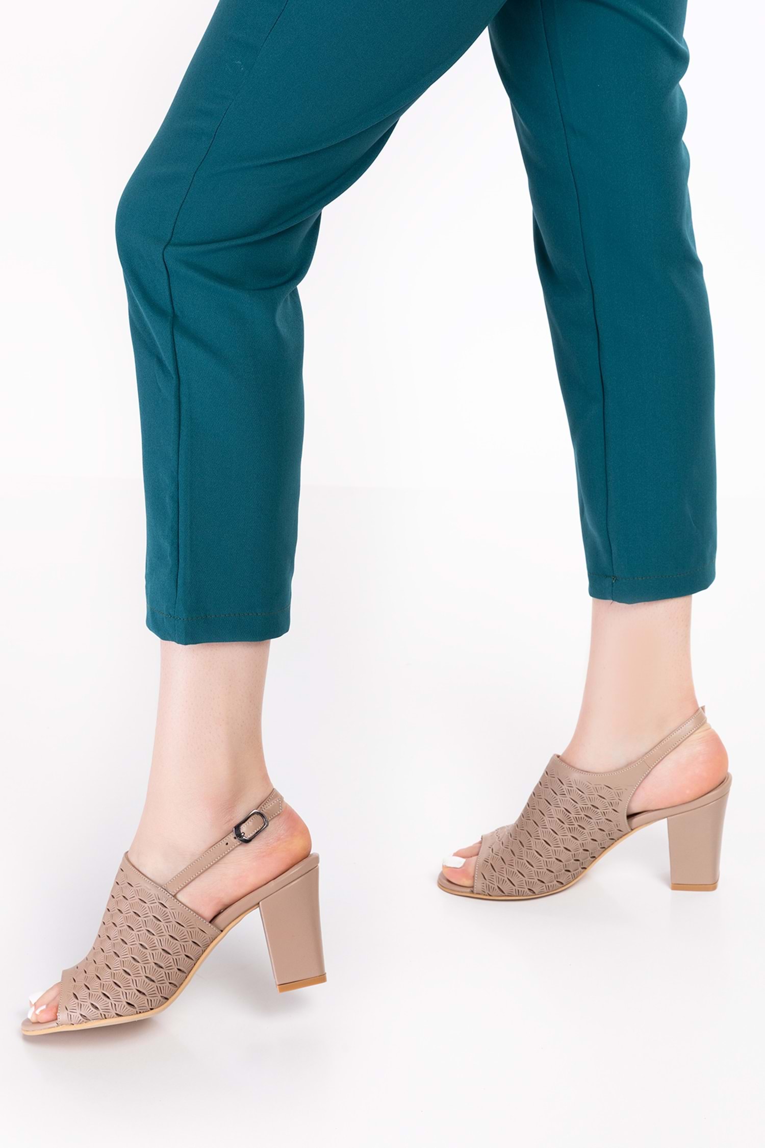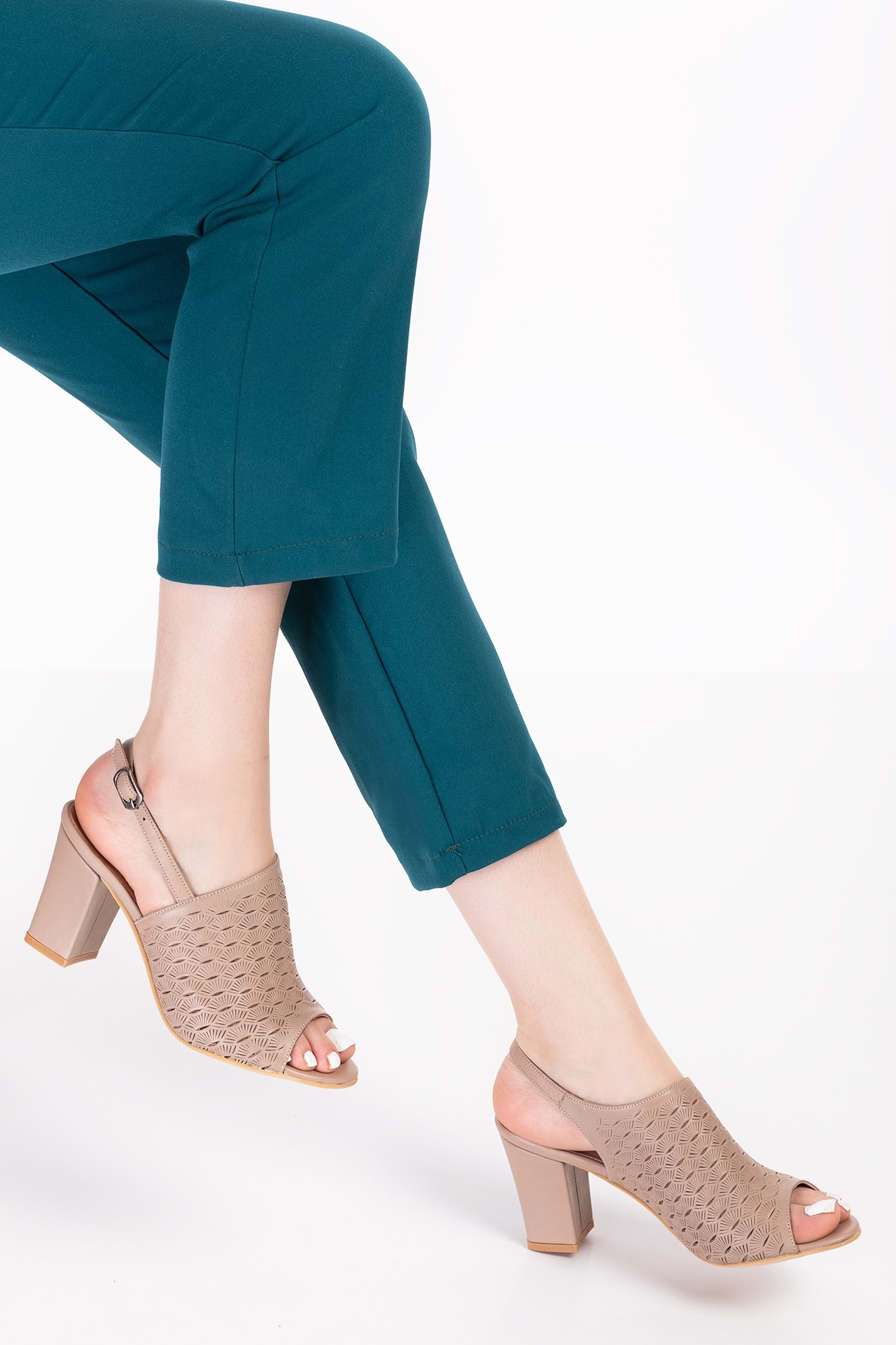 Gondol Kadın Hakiki Deri Lazer Kesim Klasik Topuklu Ayakkabı şhn.835 - Vizon - 35
