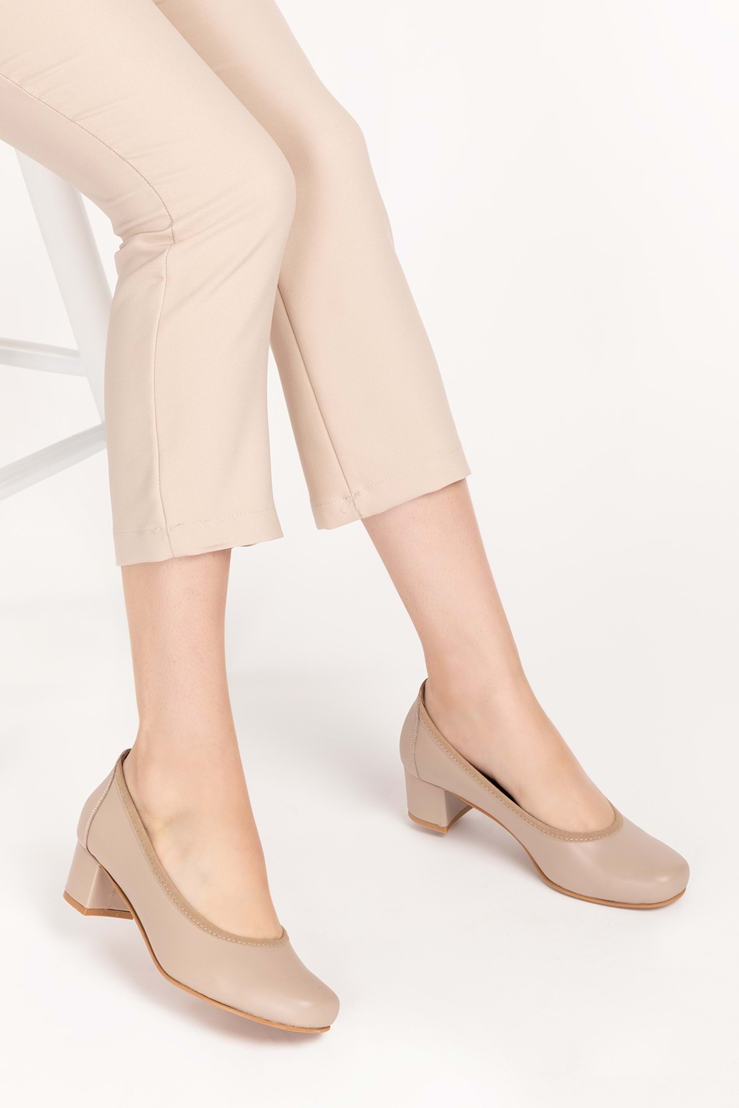 Gondol Kadın Hakiki Deri Rahat Günlük Topuklu Ayakkabı şhn.280 - Vizon - 34