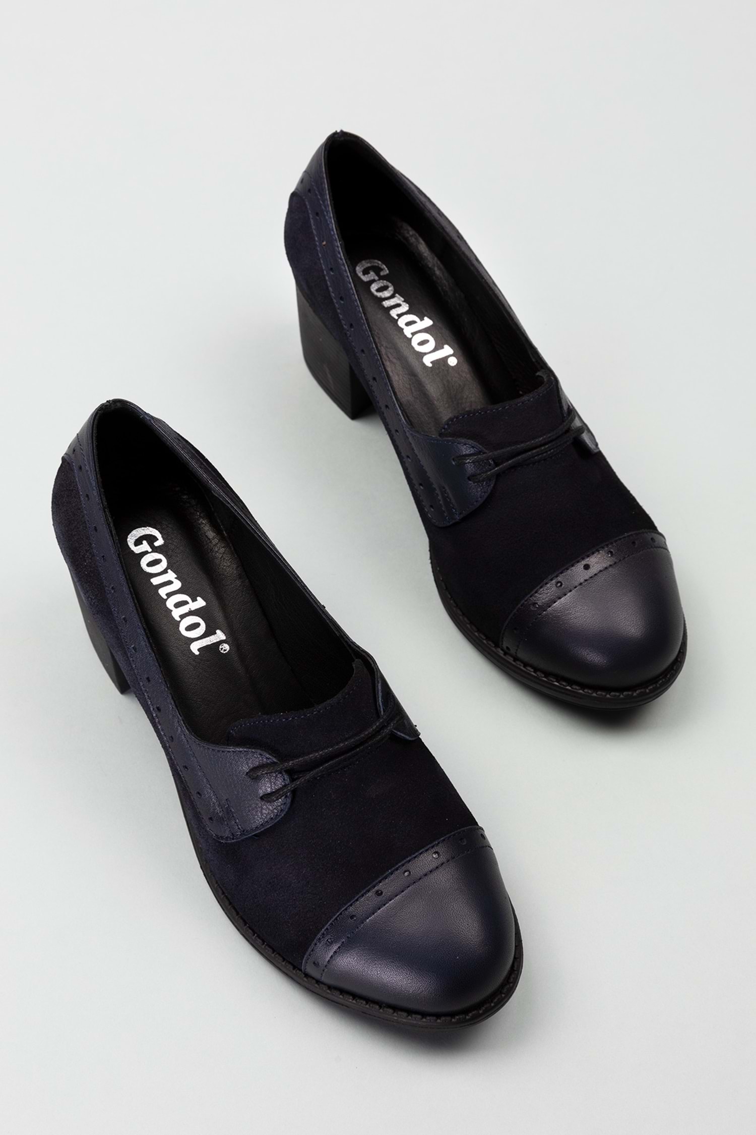 Gondol Kadın Hakiki Deri Rahat Topuklu Ayakkabı anl.7078 - Lacivert - 40