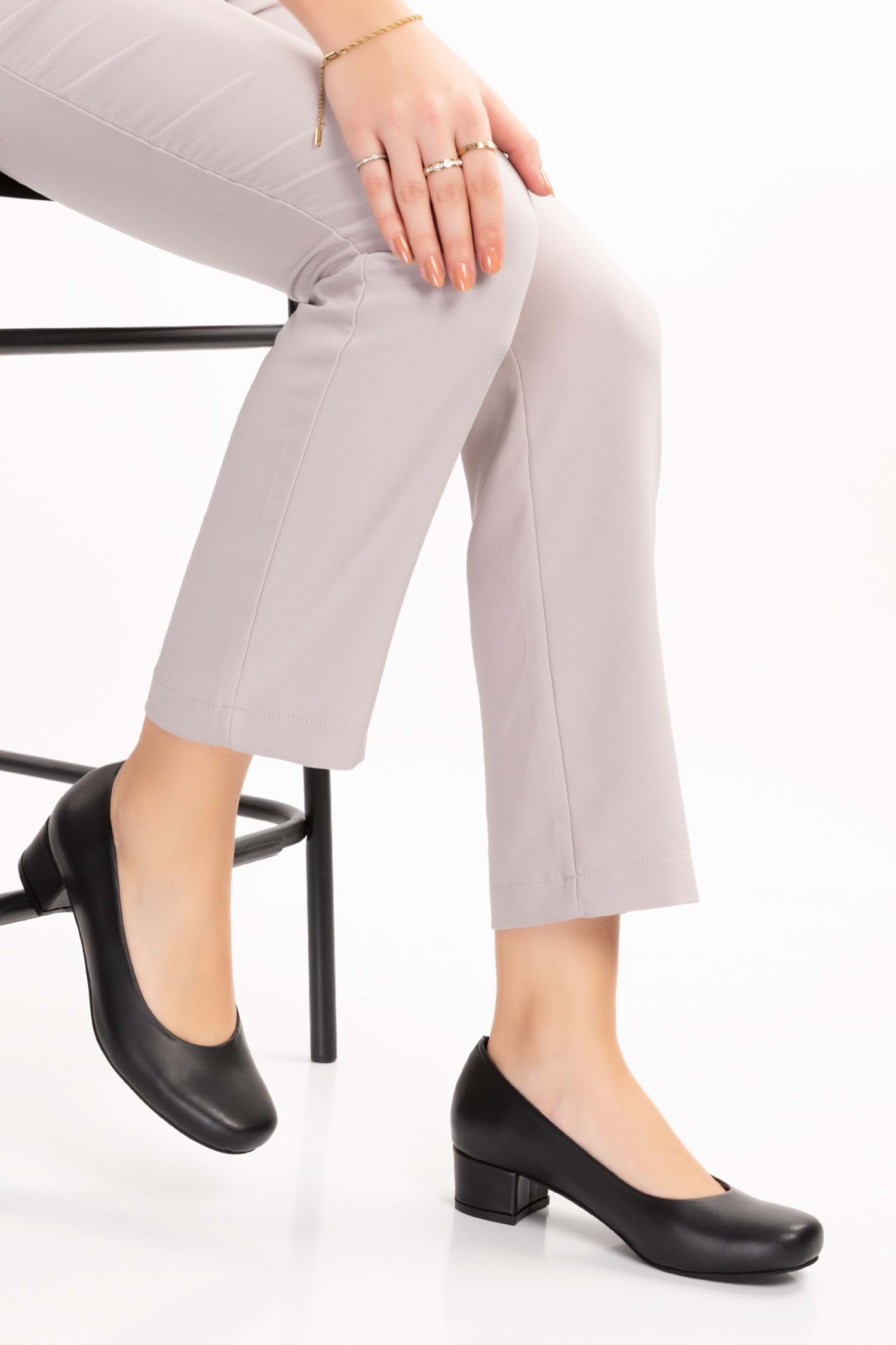 Gondol Kadın Hakiki Deri Rahat Topuklu Hostes Ayakkabı şhn.0242 - Siyah - 34