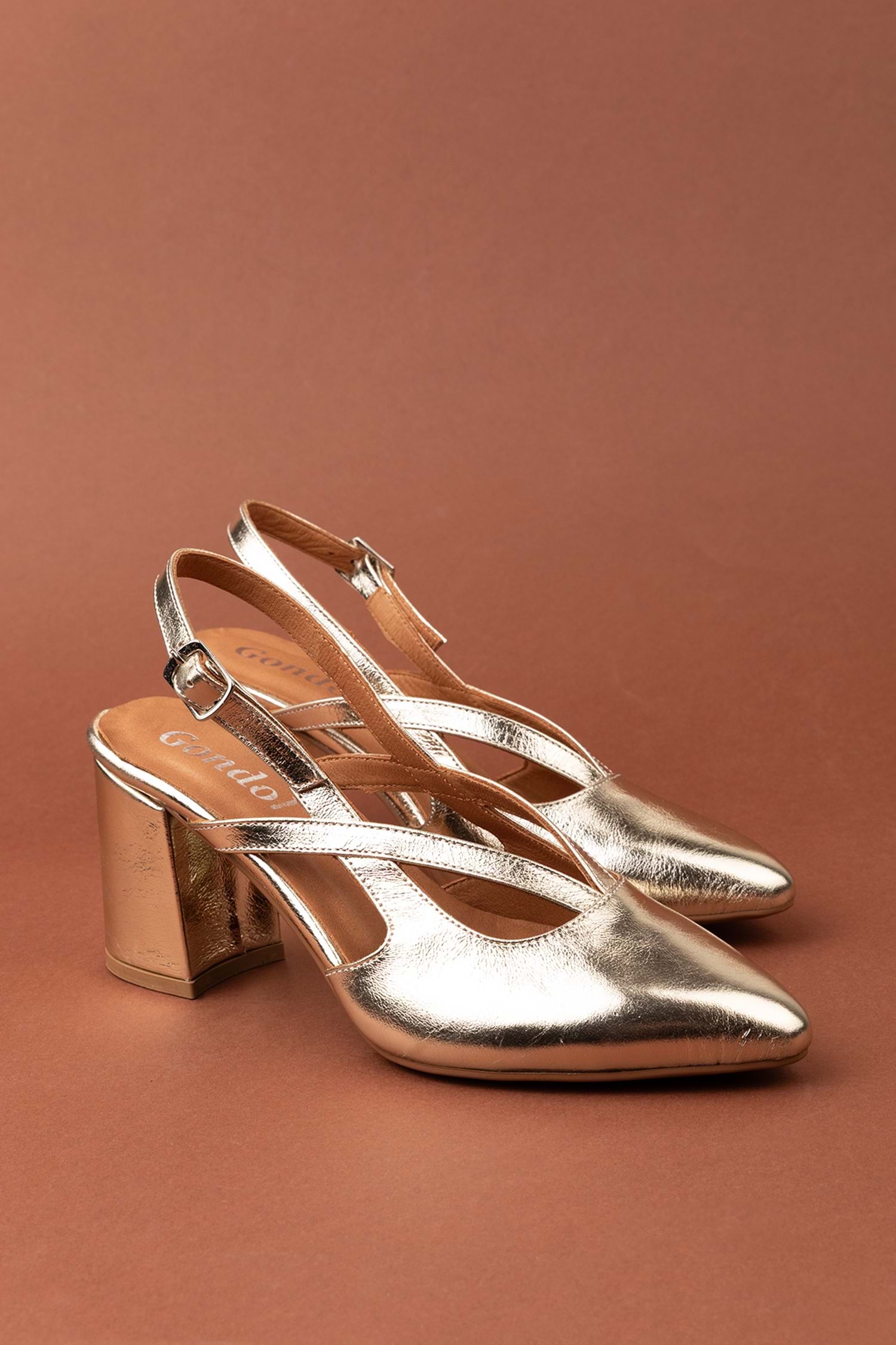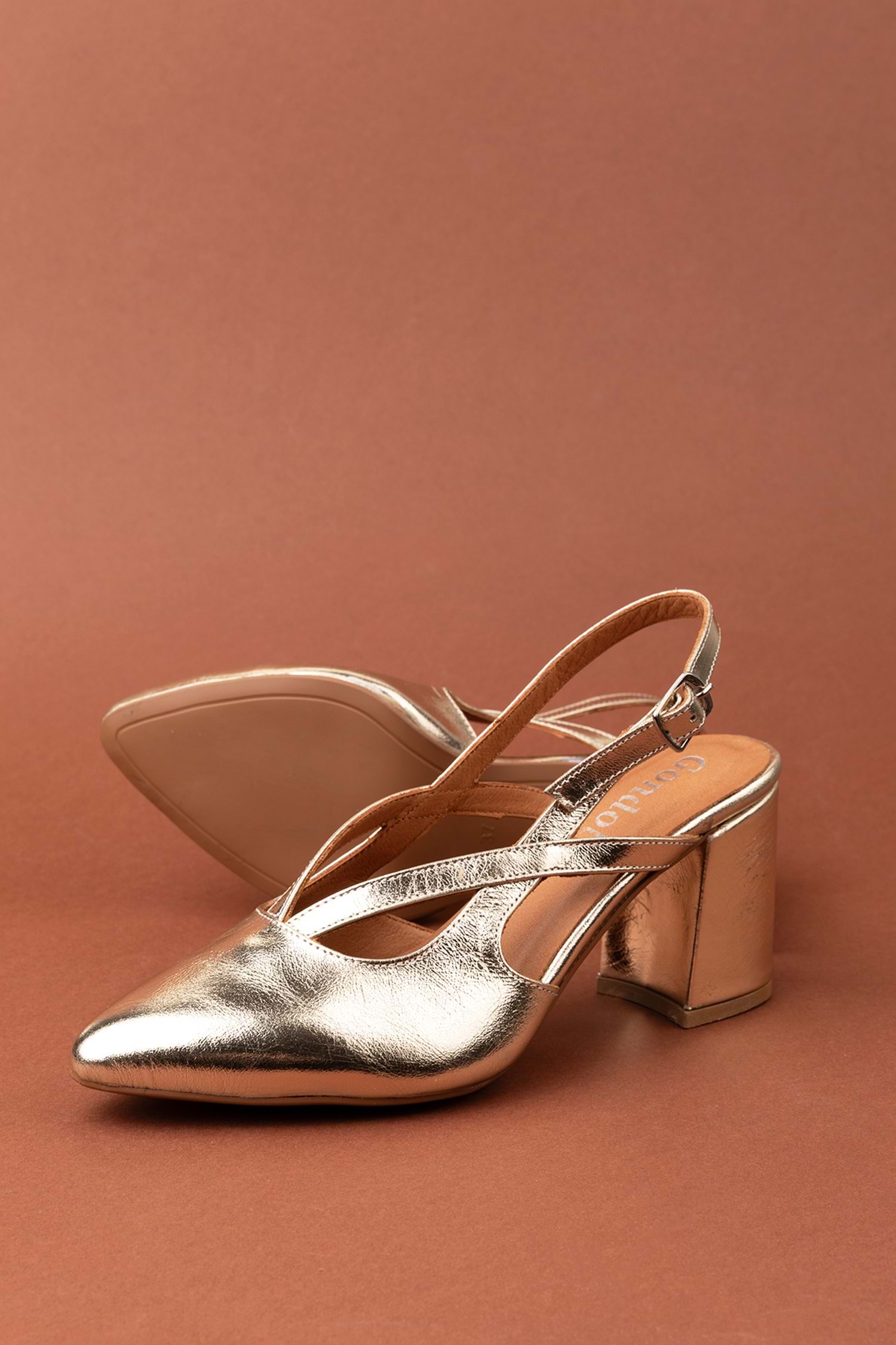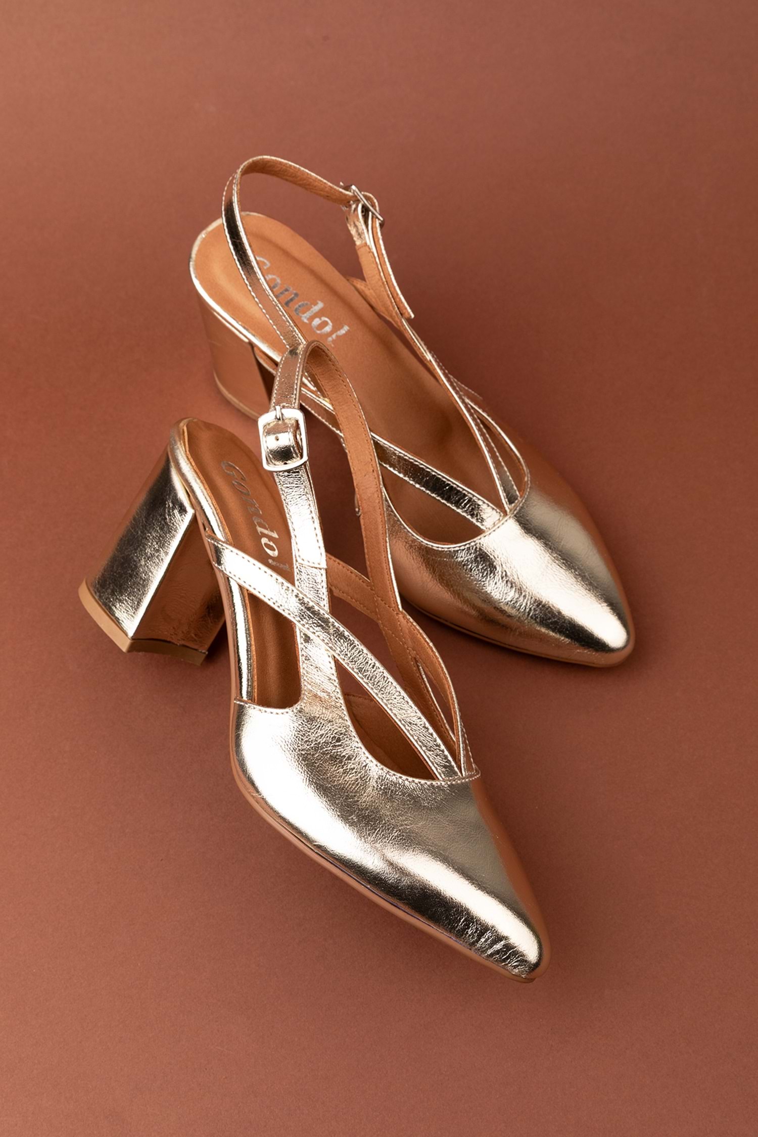 Gondol Kadın Hakiki Deri Şık Kalın Topkulu Ayakkabı anl.3361 - Altın - 36
