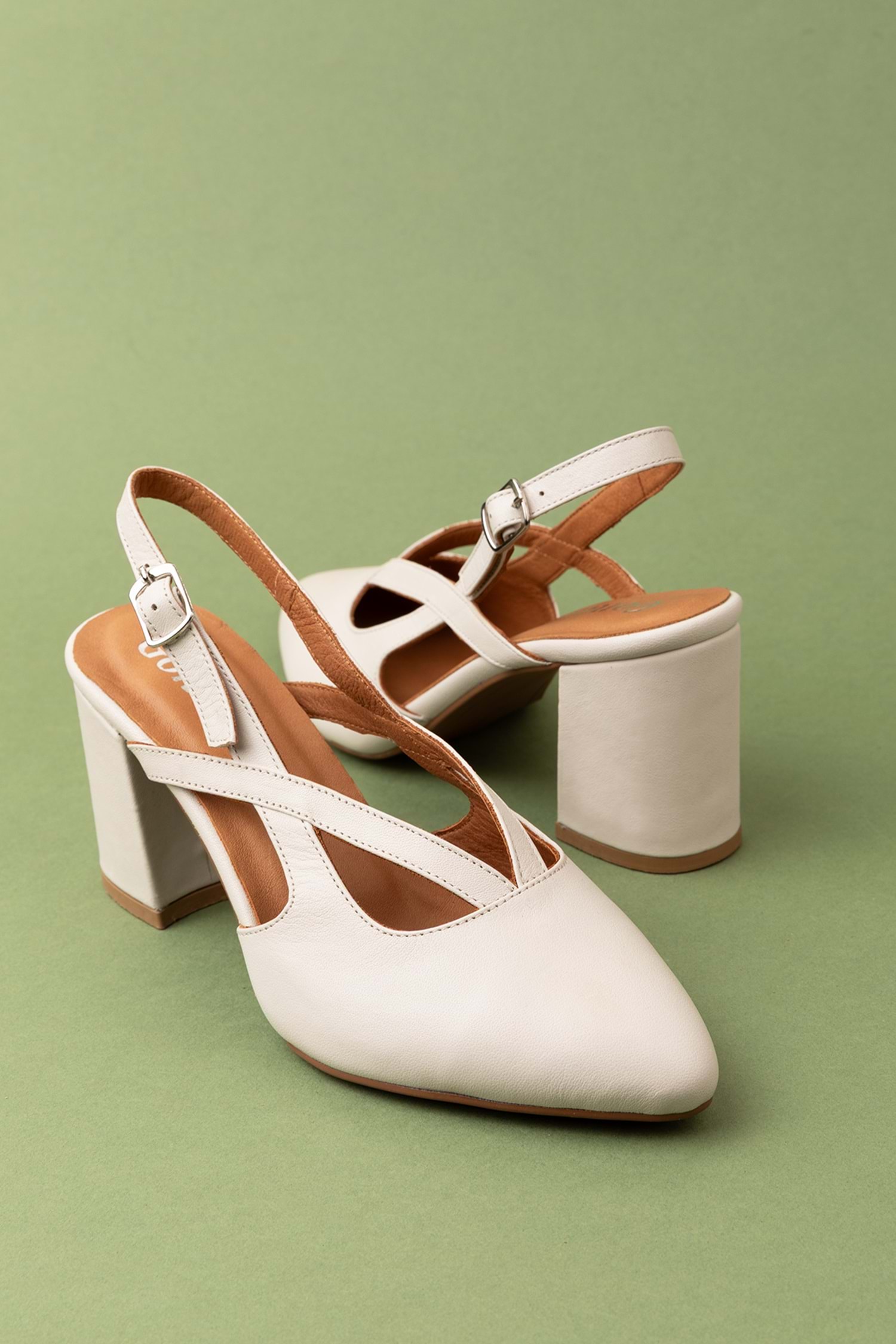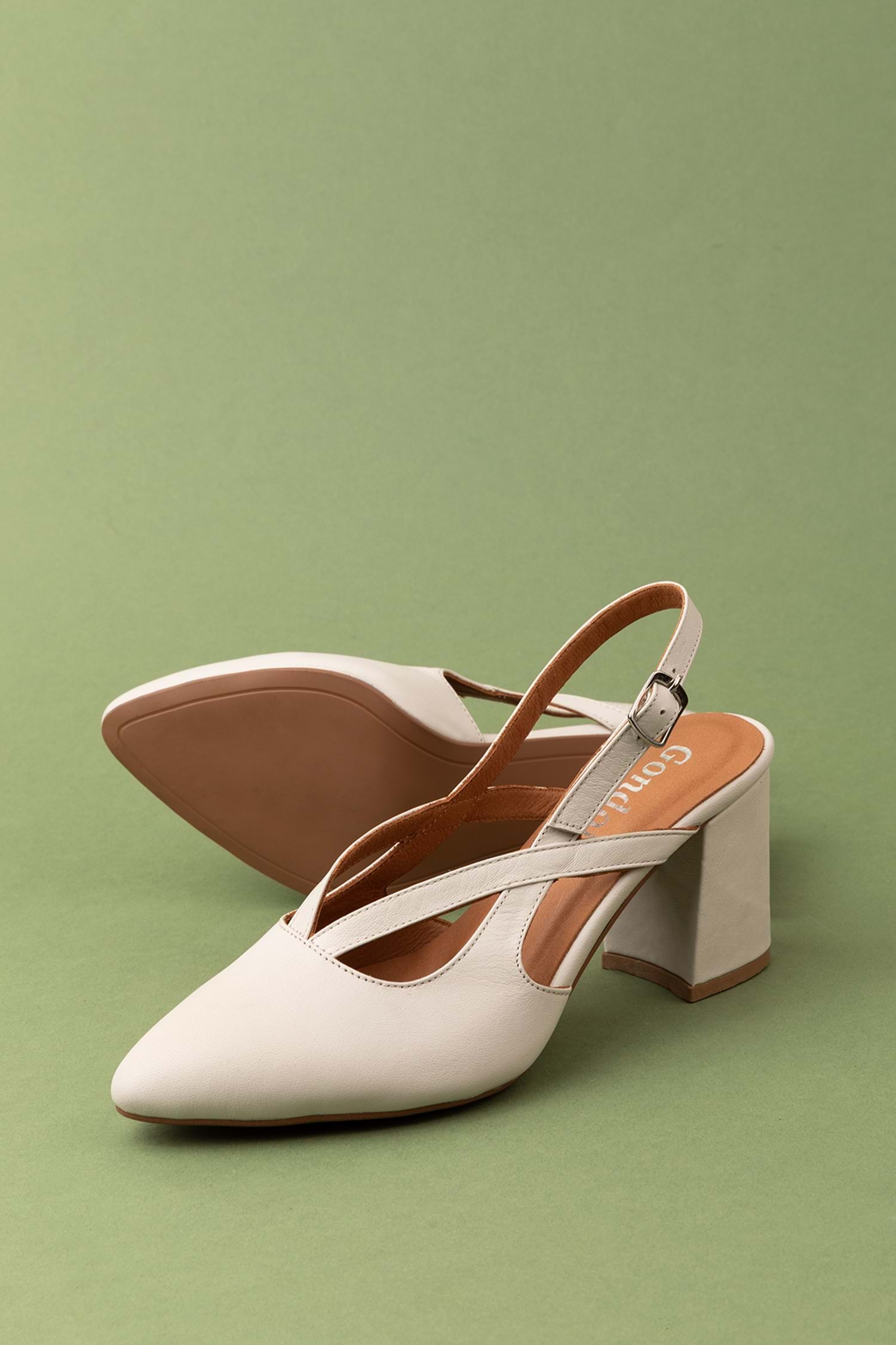 Gondol Kadın Hakiki Deri Şık Kalın Topkulu Ayakkabı anl.3361 - Krem - 35