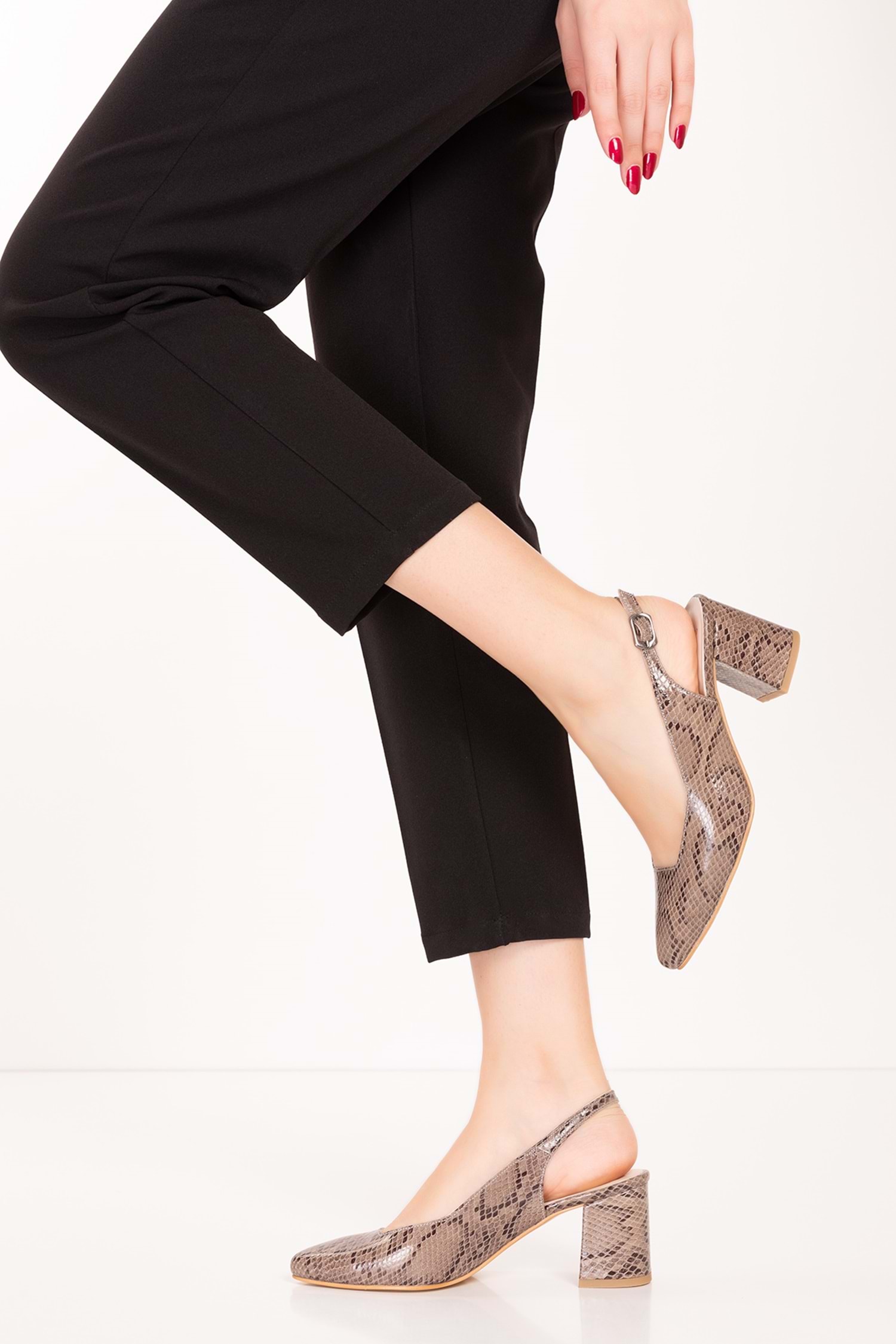 Gondol Kadın Hakiki Deri Yılan Desenli Topuklu Ayakkabı şhn.709 - Vizon Yılan - 39