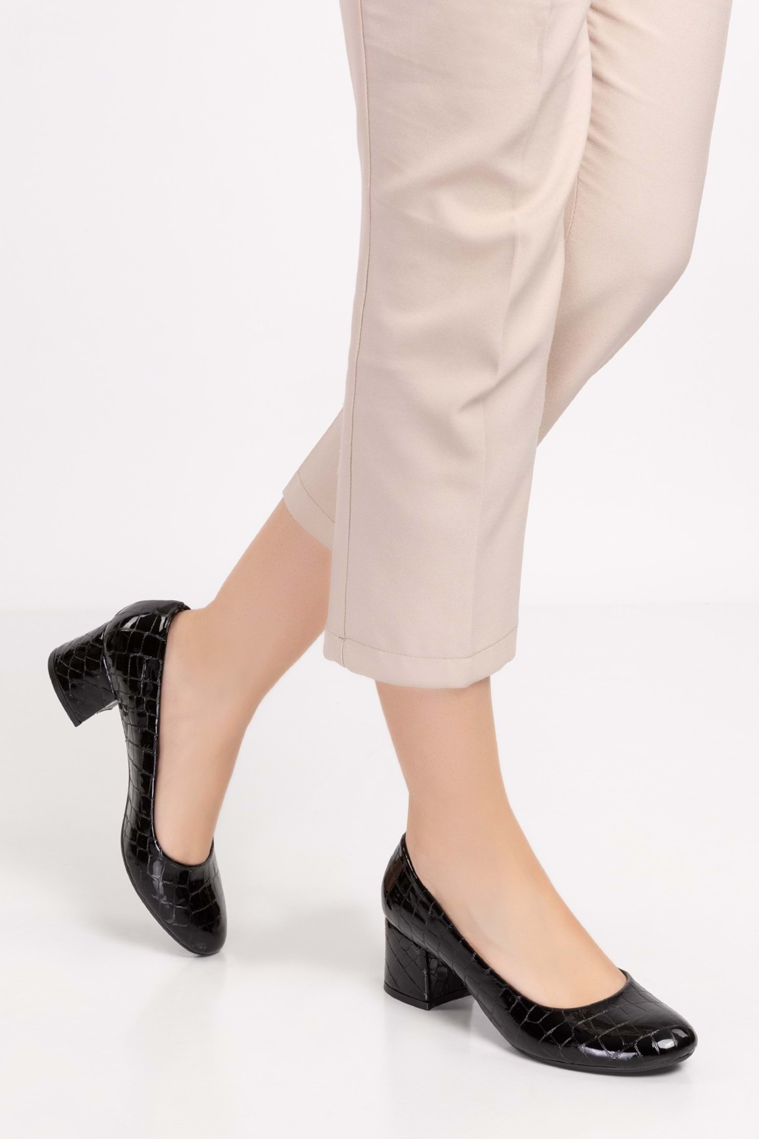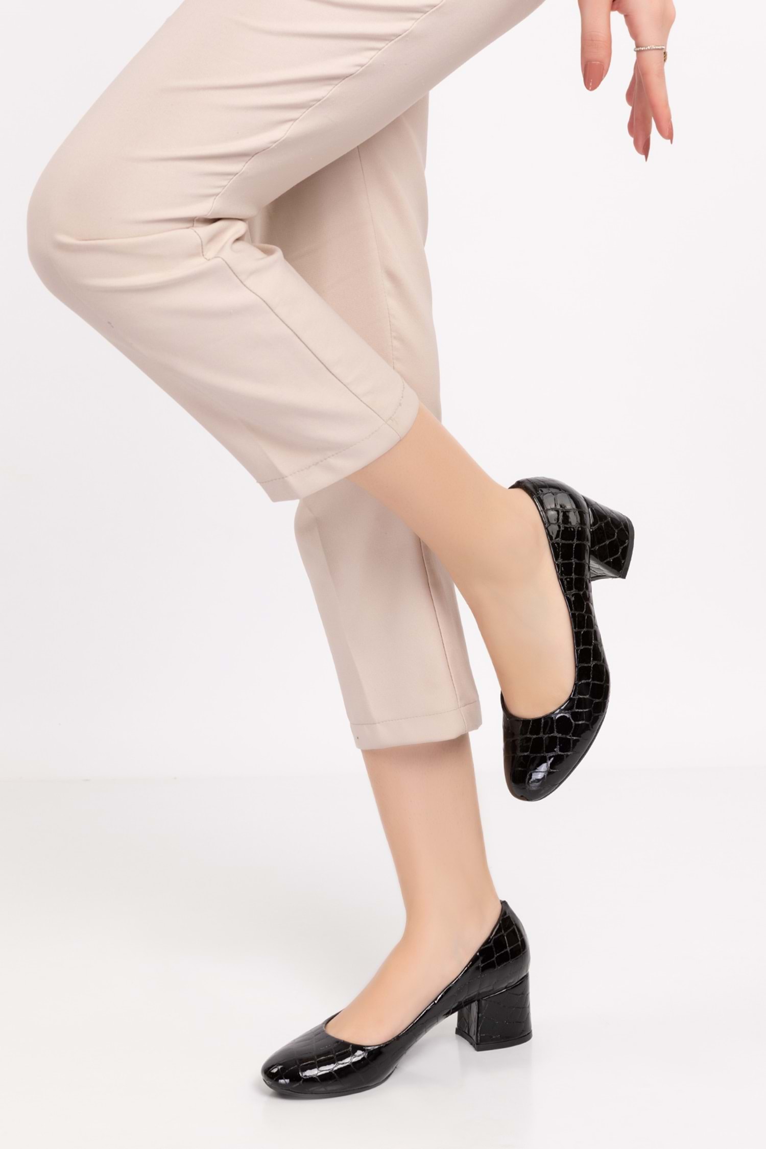 Gondol Kadın Hakiki Deri Yuvarlak Burun Topuklu Ayakkabı vdt.210 - Siyah Croco - 36