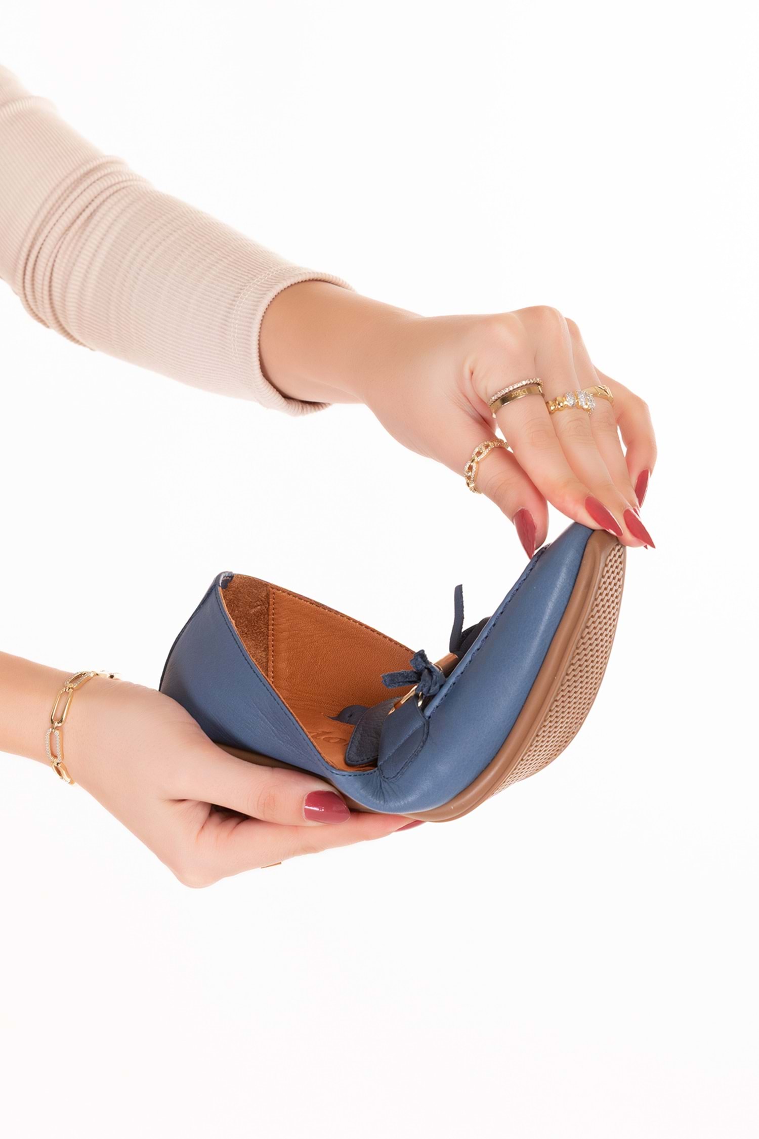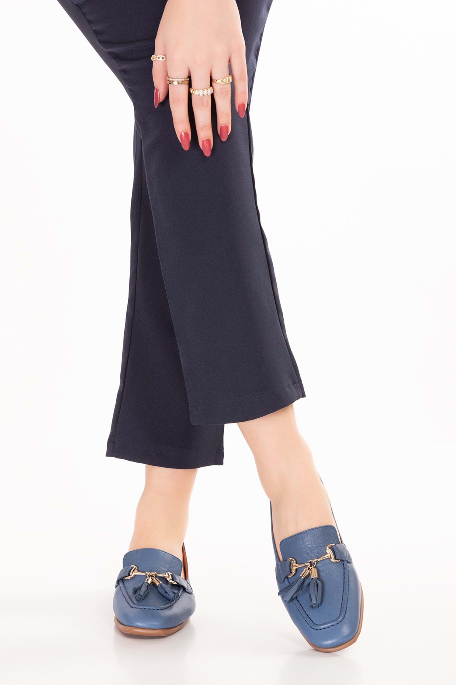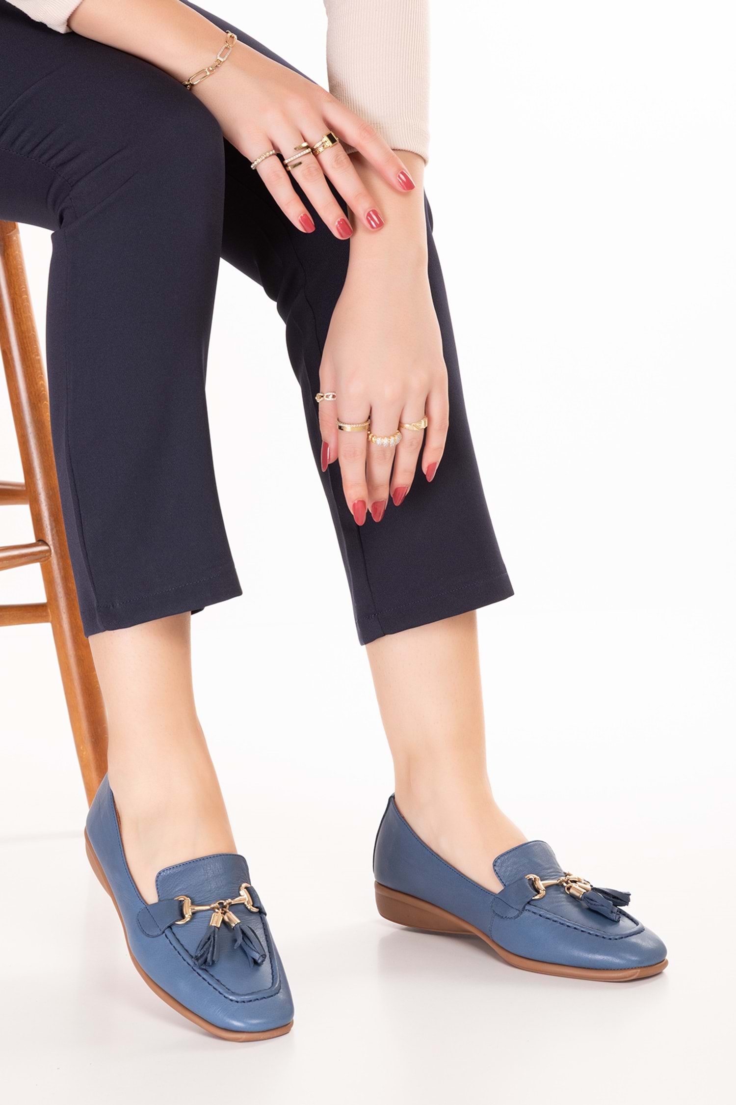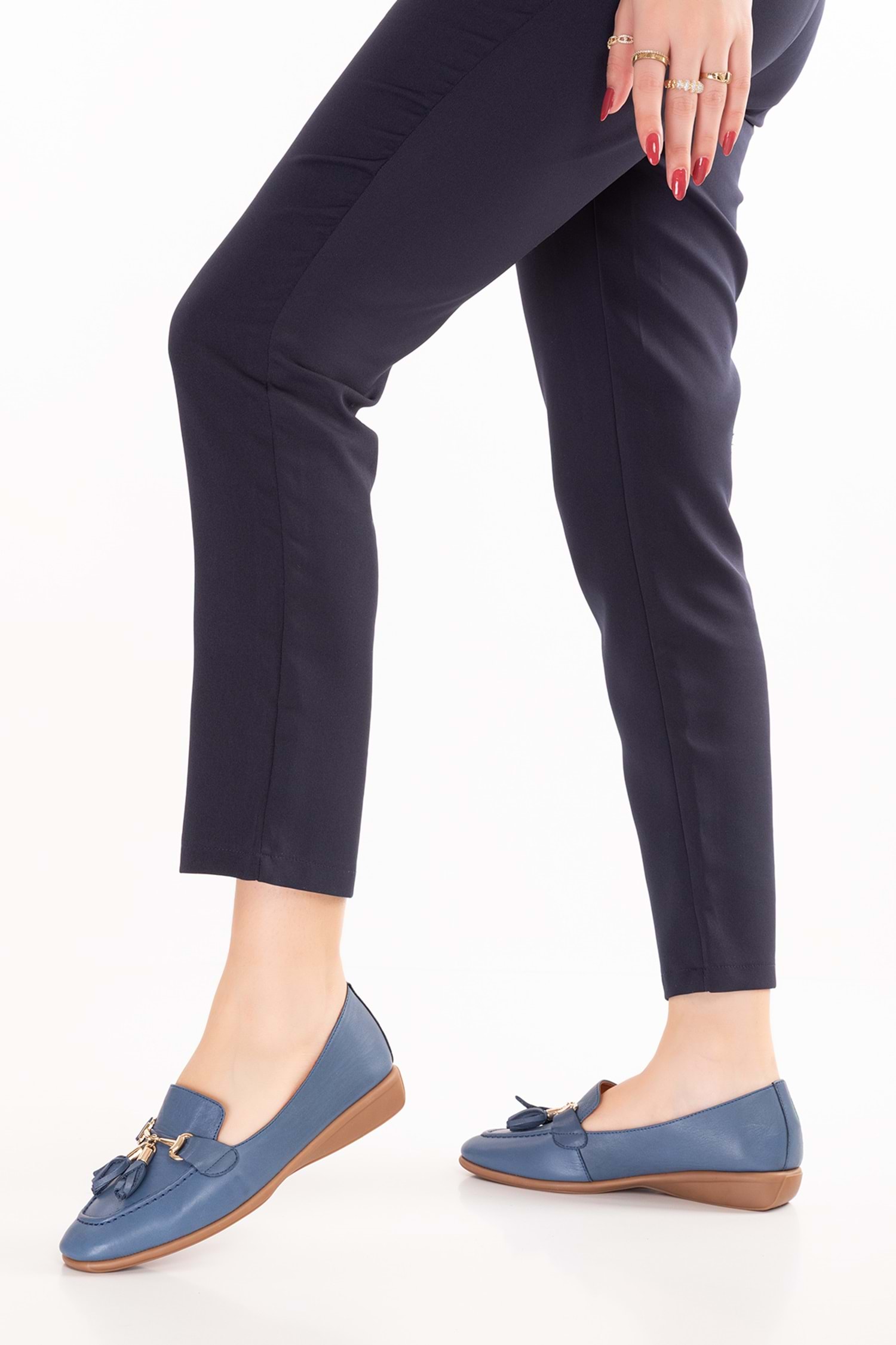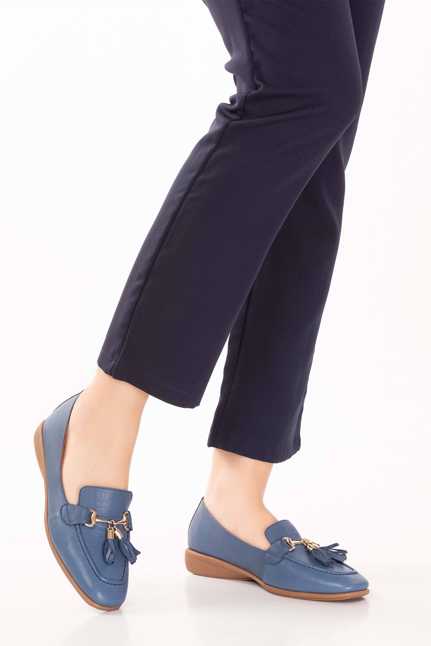 Gondol Hakiki Deri Esnek Rahat Taban Yumuşak Deri Rahat Loafer alb.228 - Mavi - 40
