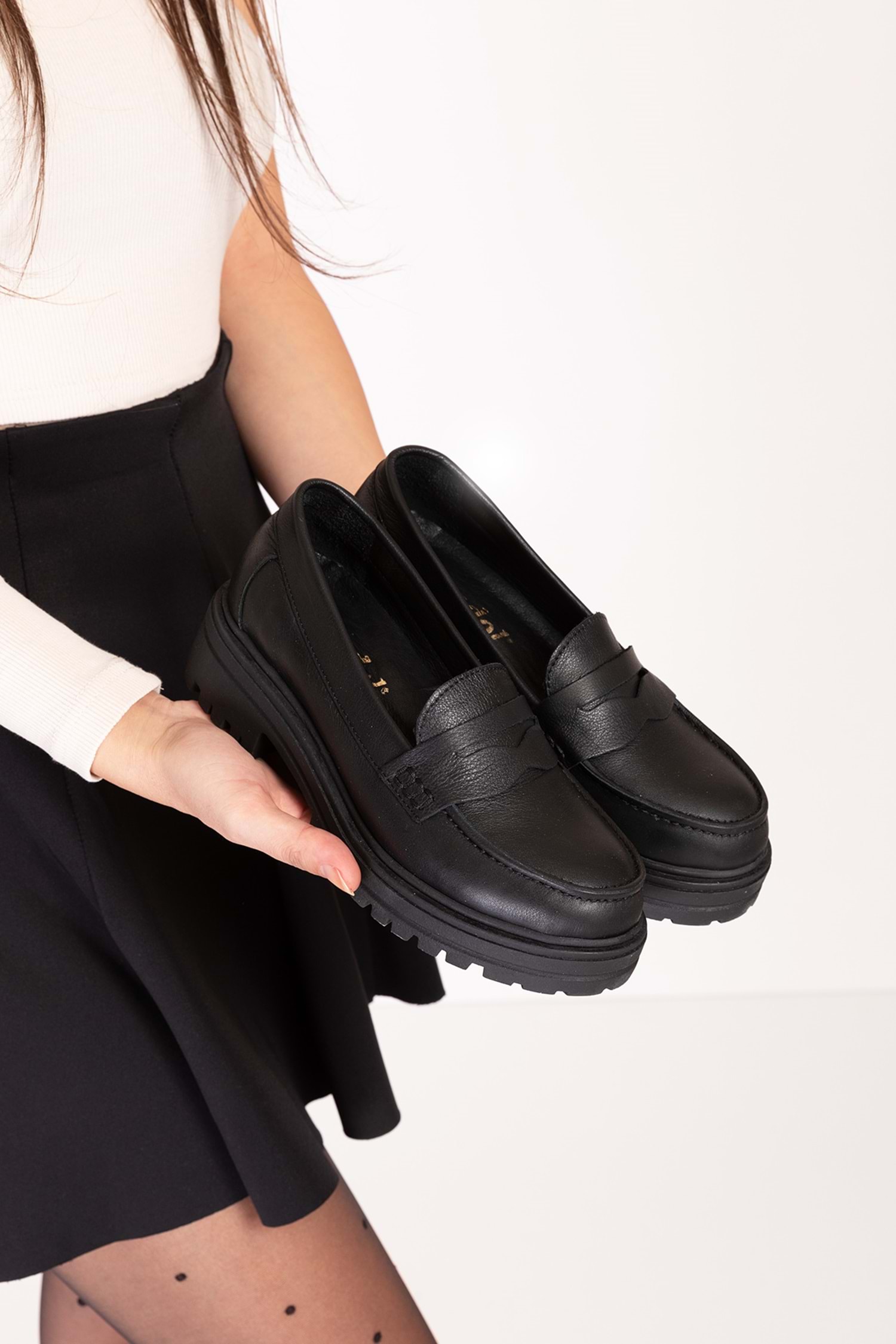 Gondol Hakiki Deri Kalın Taban Hafif Oxford Ayakkabı anl.2505 - Siyah - 40