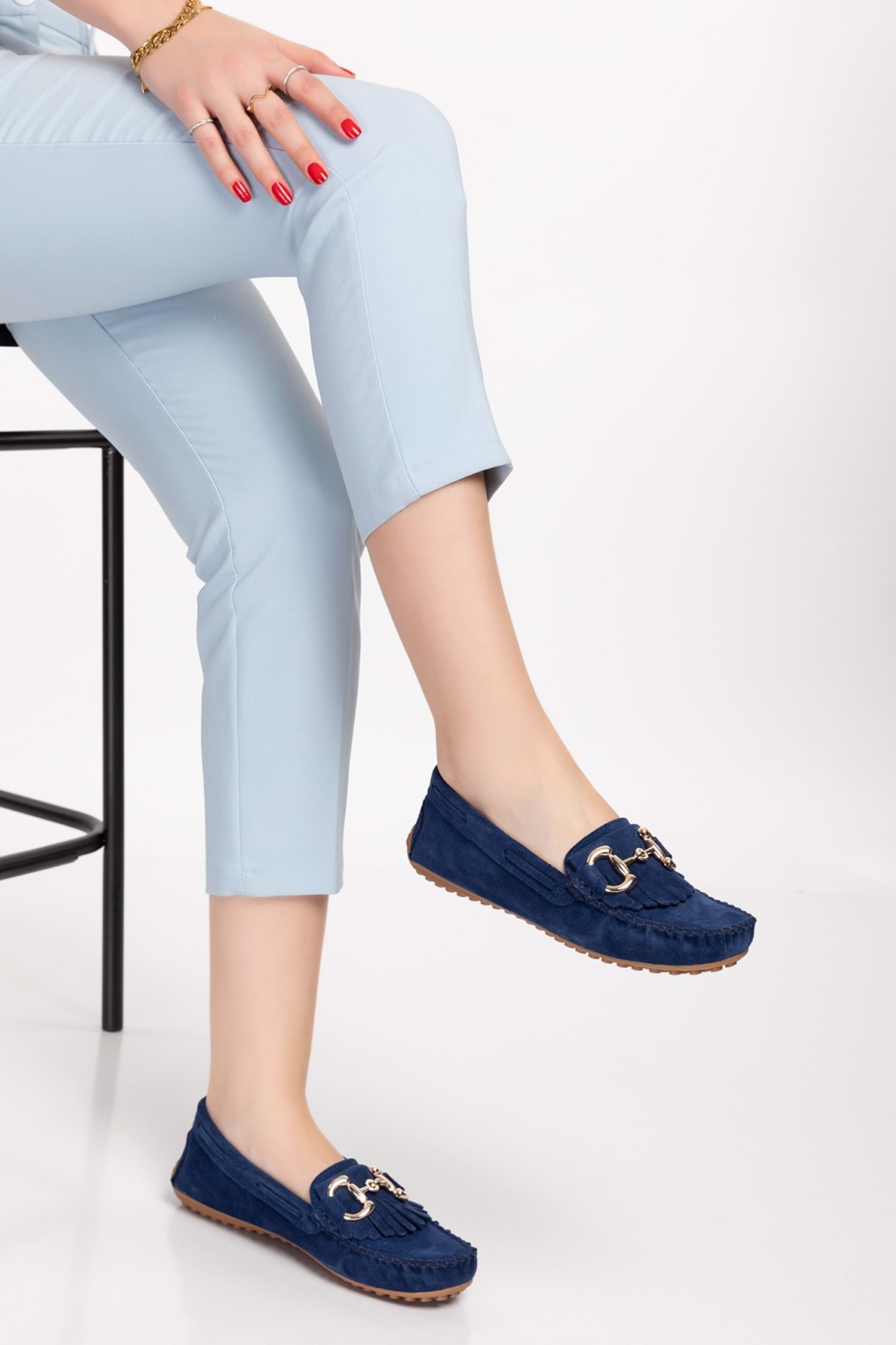 Gondol Hakiki Deri Süet Esnek Hafif Rahat Loafer sw.755 - Lacivert - 36