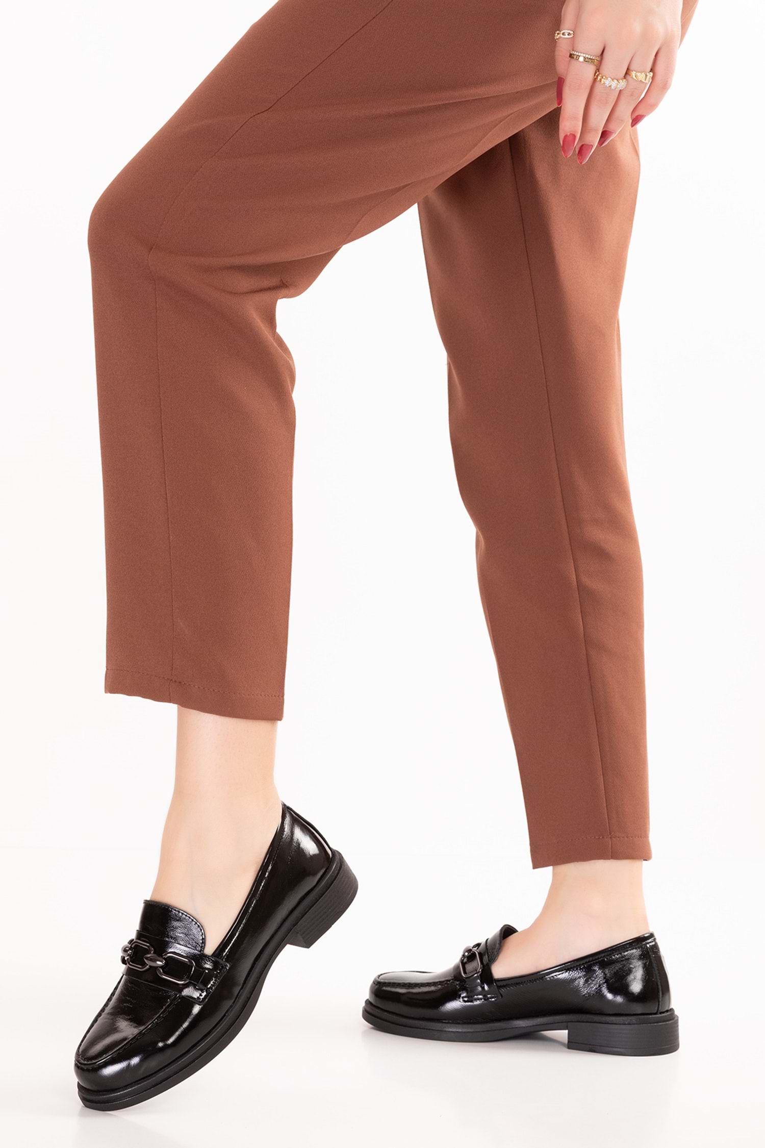Gondol Kadın Hakiki Deri Toka Detaylı Şık Loafer Ayakkabı ndr.26101 - siyah rugan - 41
