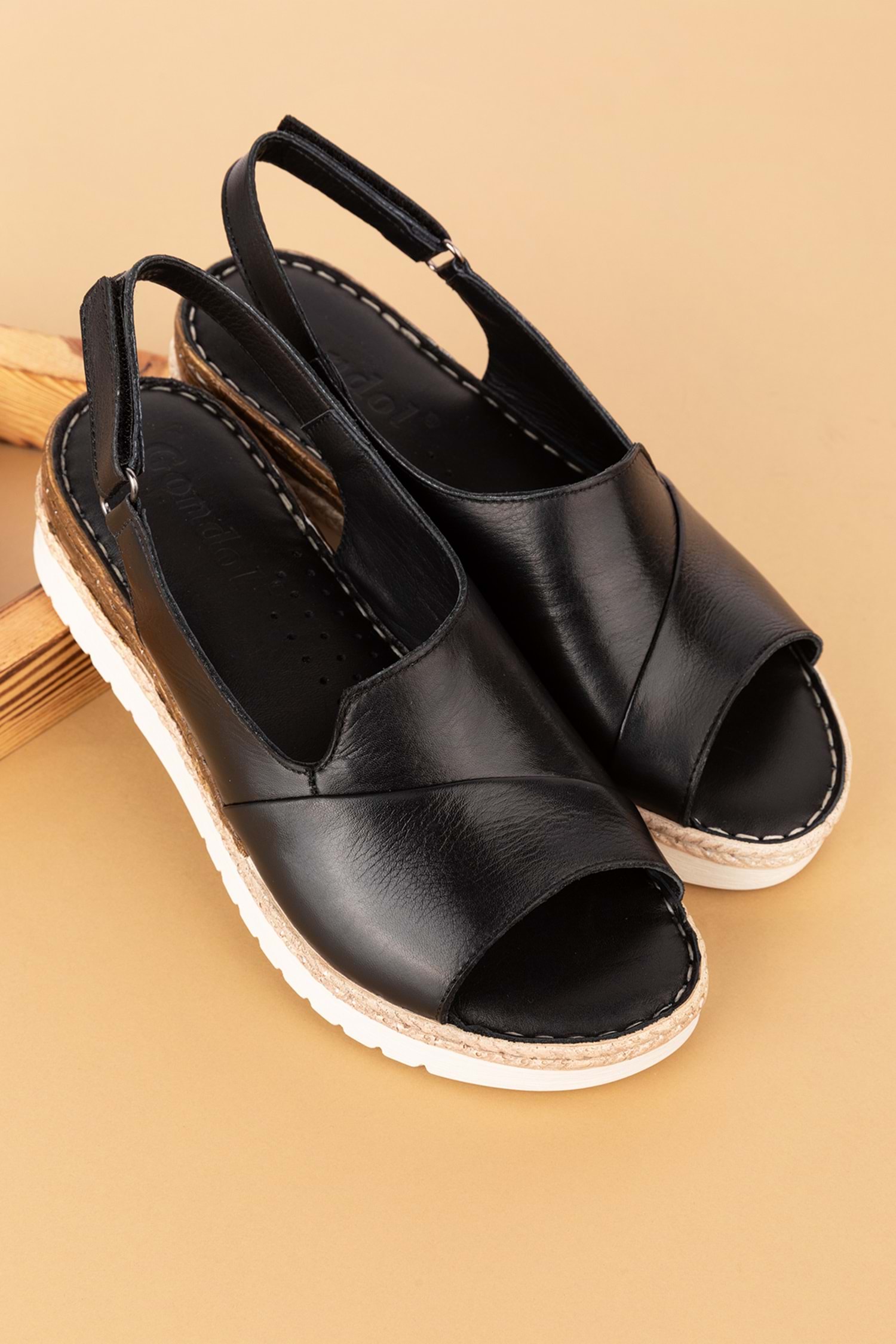 Gondol Hakiki Deri Anatomik Yumuşak Taban Sandalet ımk.1607 - Siyah - 40