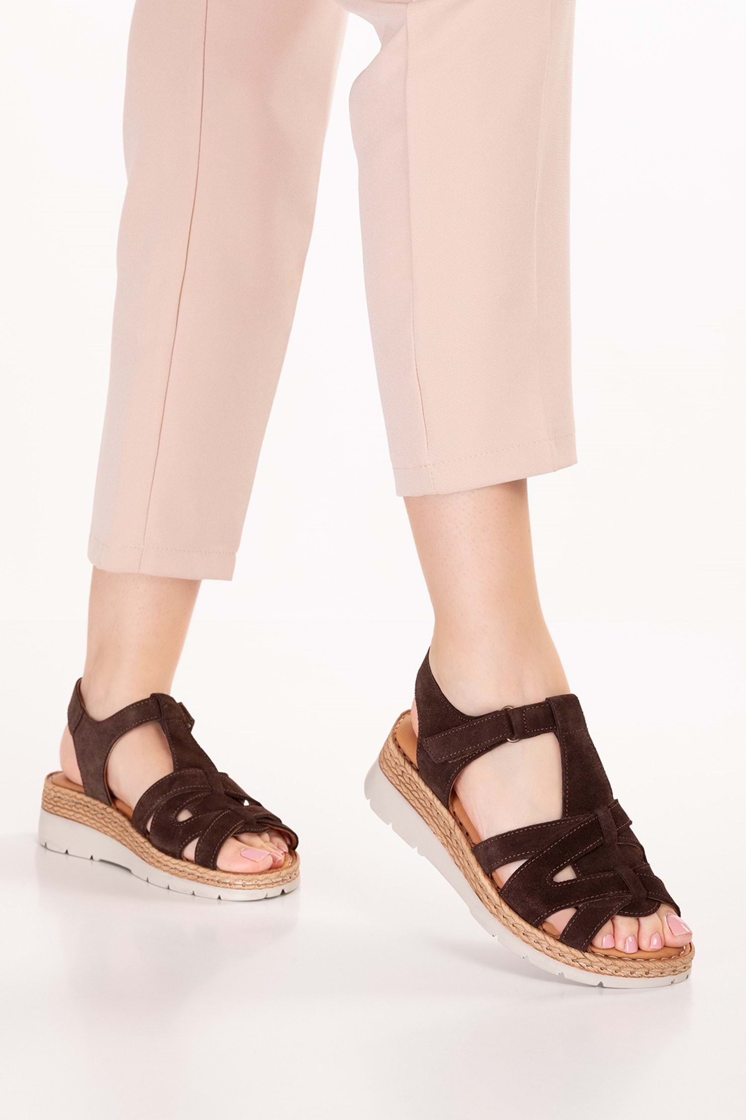 hakiki deri sandalet, dolgu topuk sandalet, kadın dolgu topuk sandalet, bej sandalet, rahat kadın sandalet, yazlık sandalet kadın, ortopedik sandalet, günlük kadın sandalet, deri yazlık ayakkabı