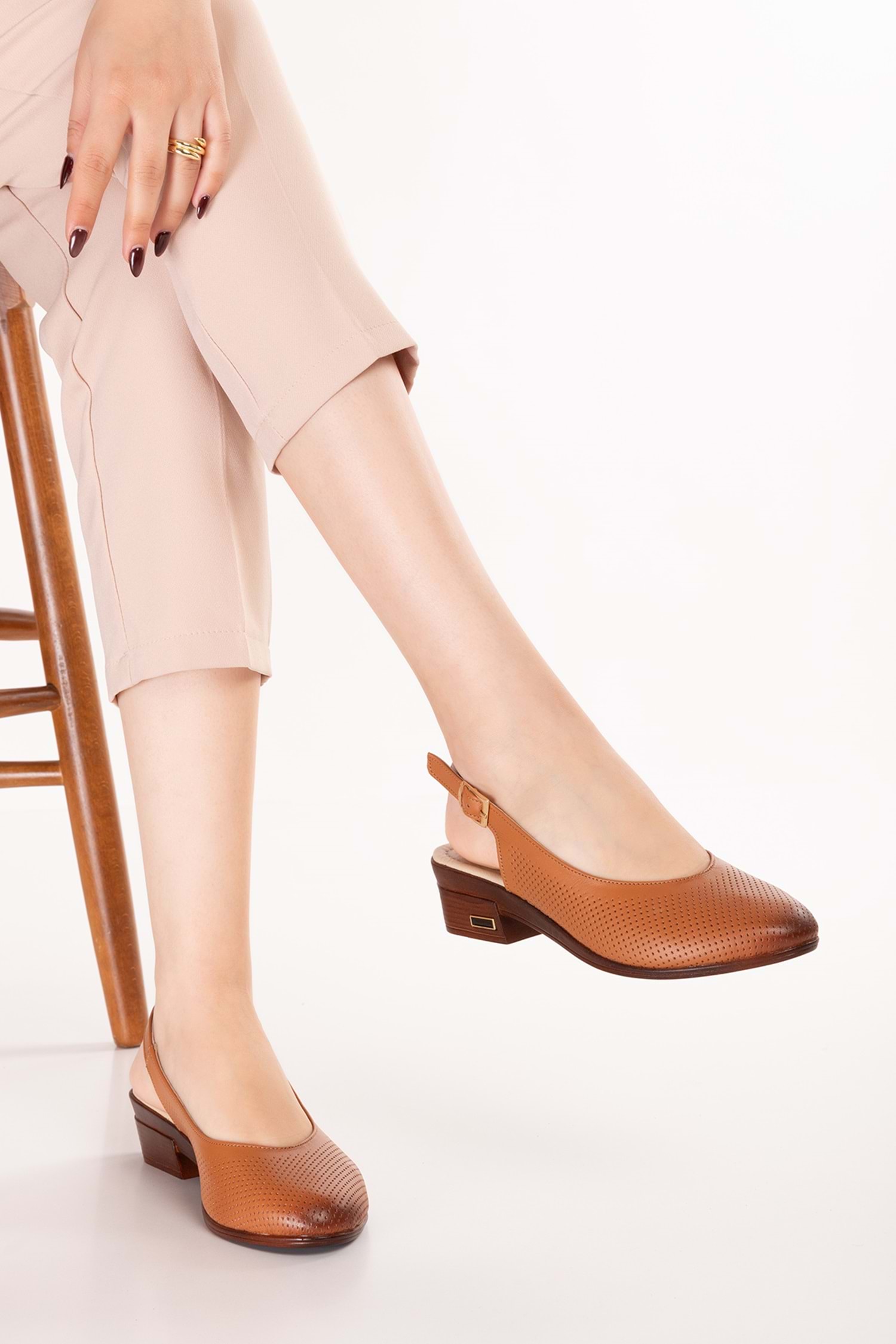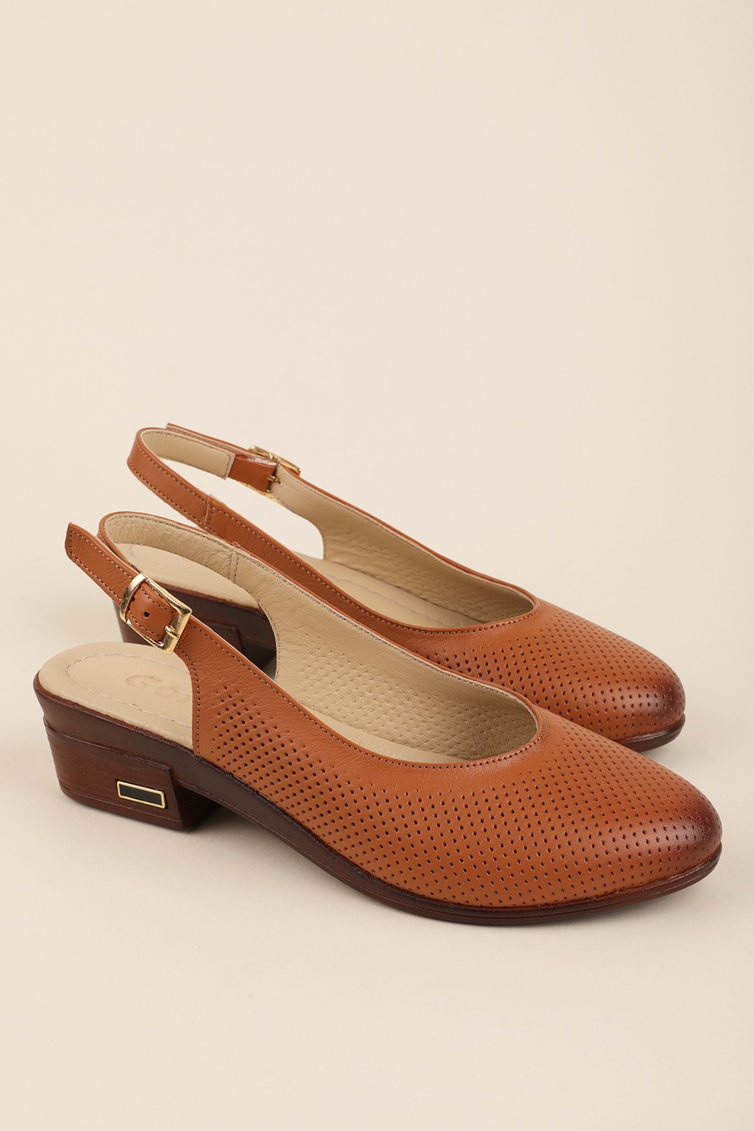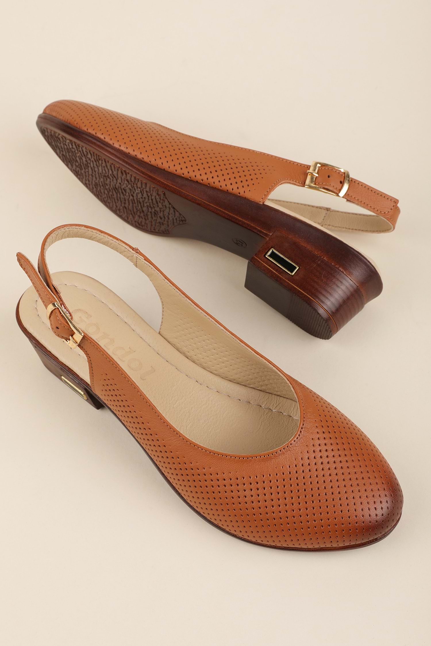 Gondol Hakiki Deri Günlük Hafif Klasik Topuklu Sandalet msa.50 - Taba - 39