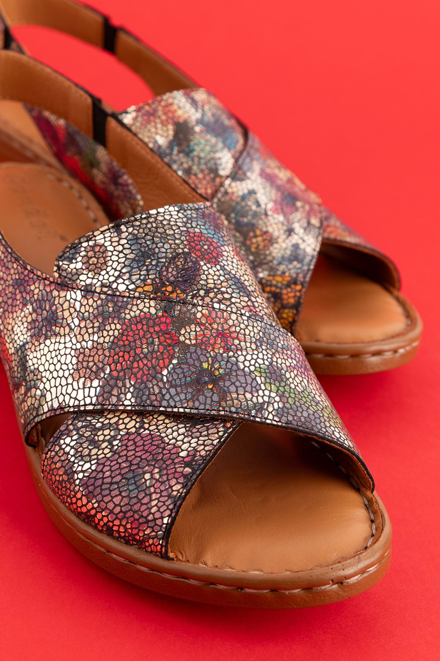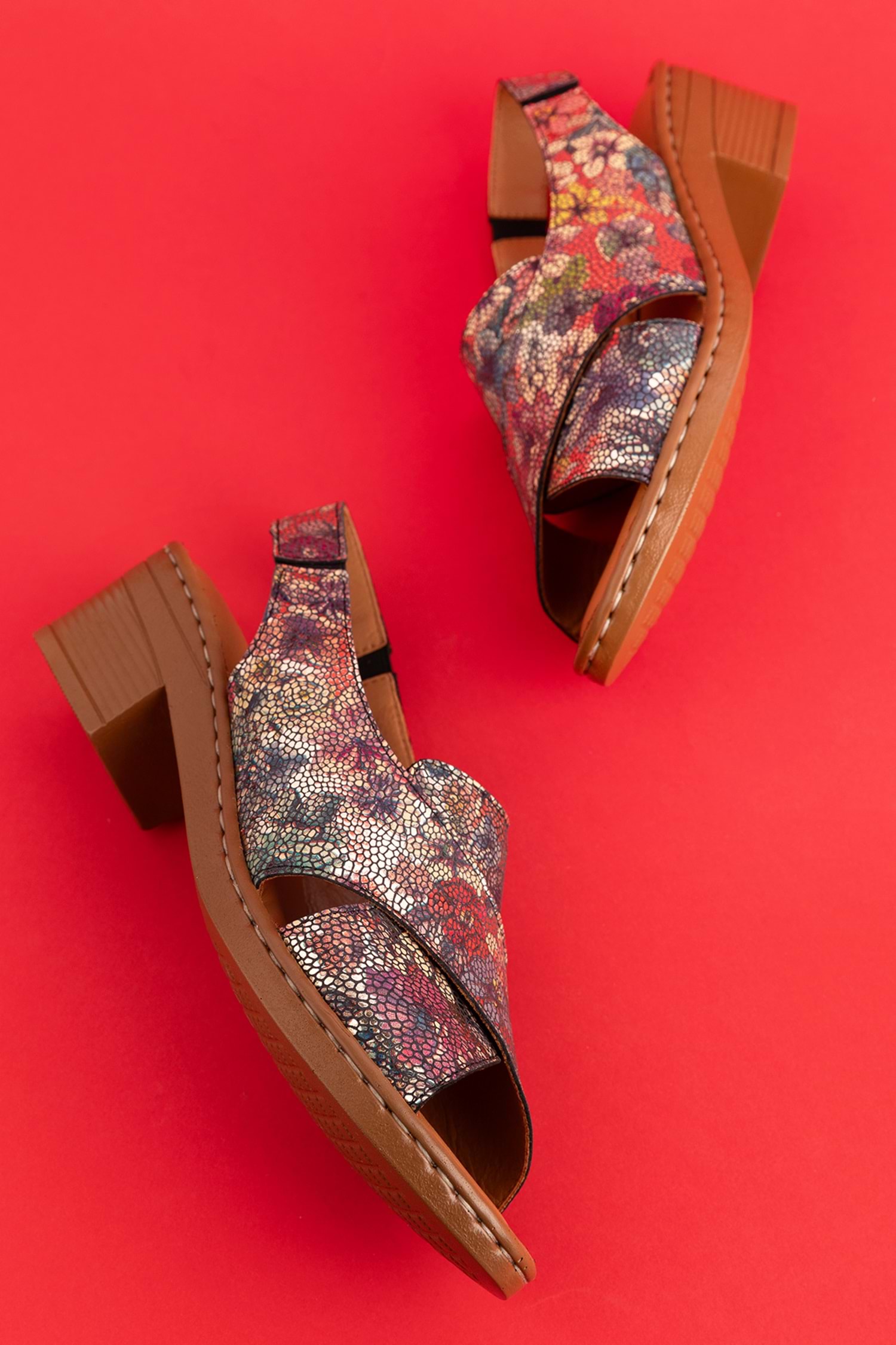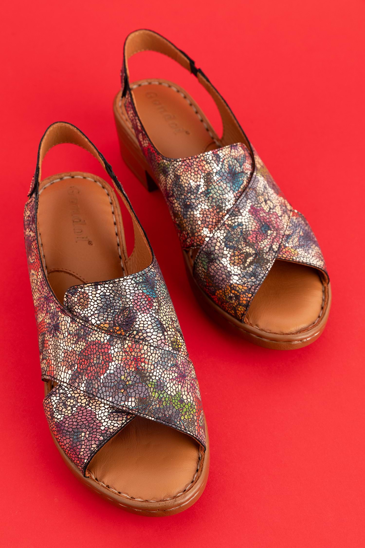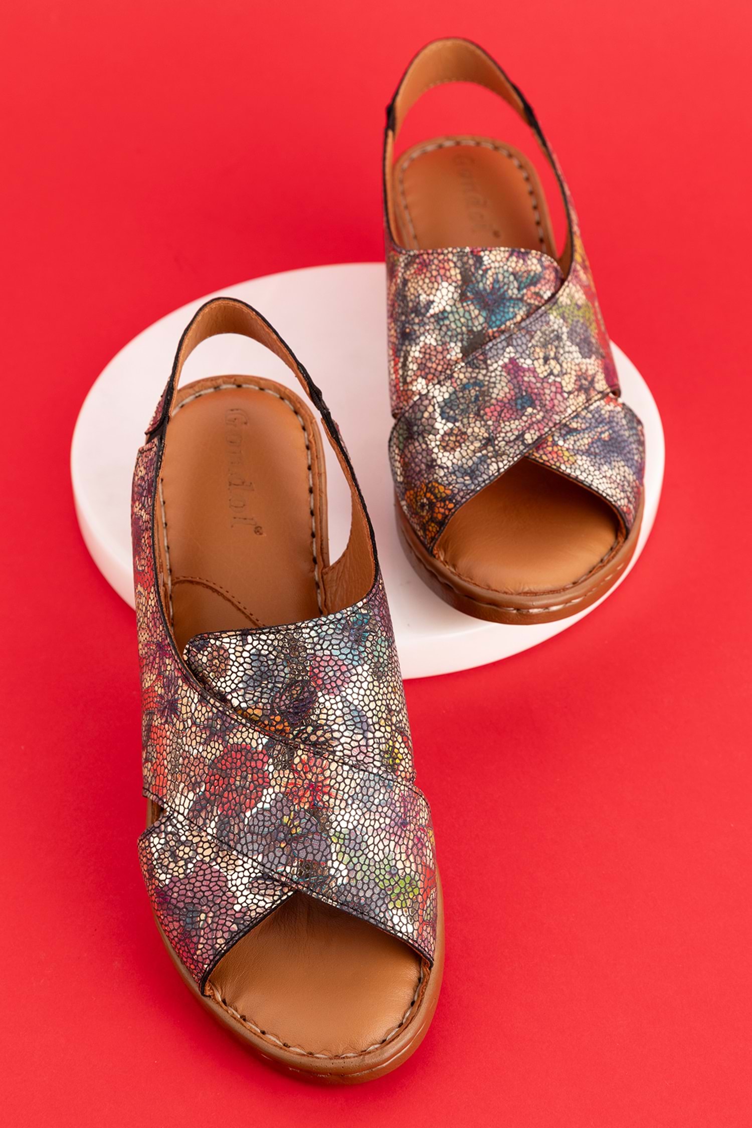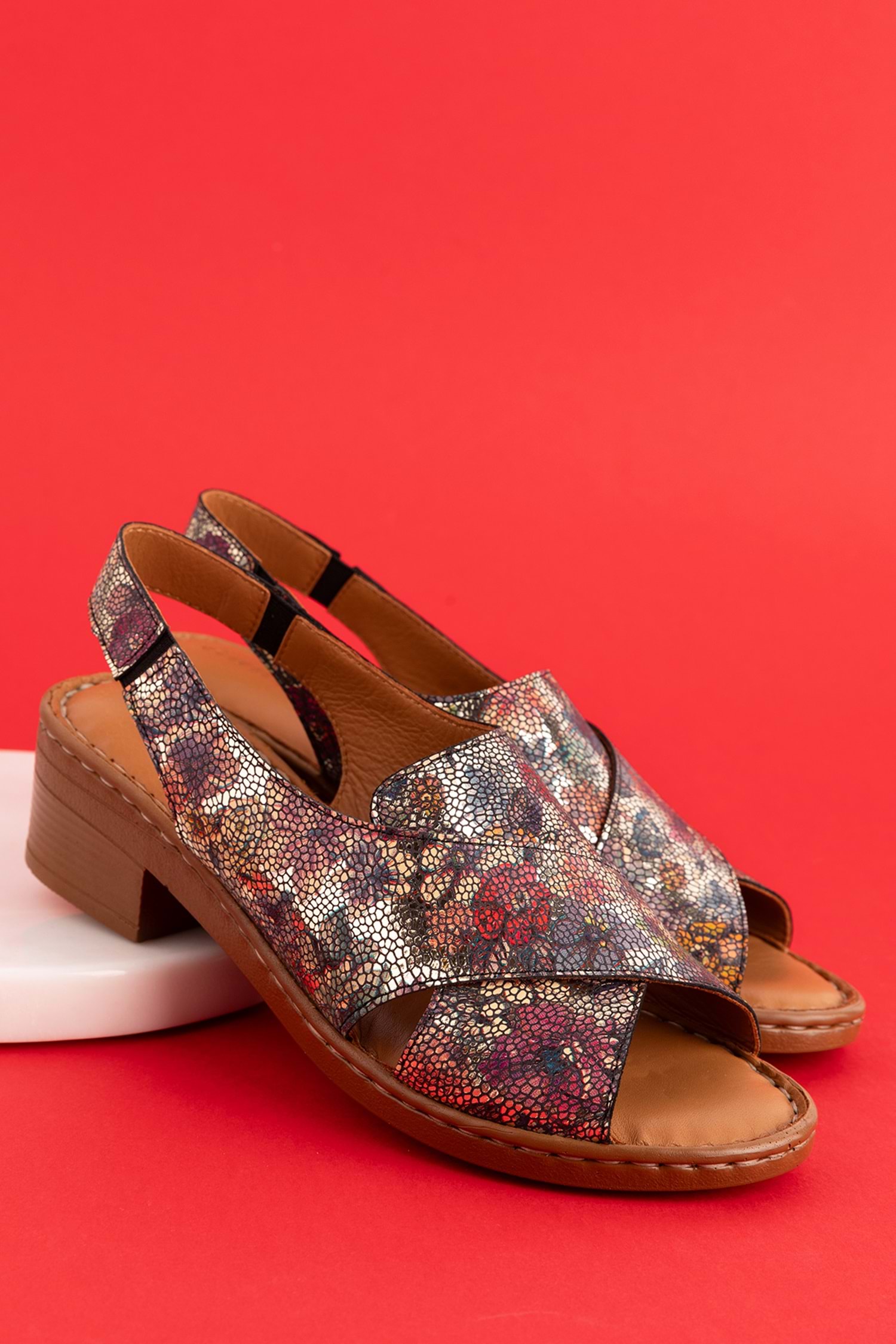Gondol Hakiki Deri Kısa Topuklu Çapraz Sandalet iz.9502 - Alaca - 40