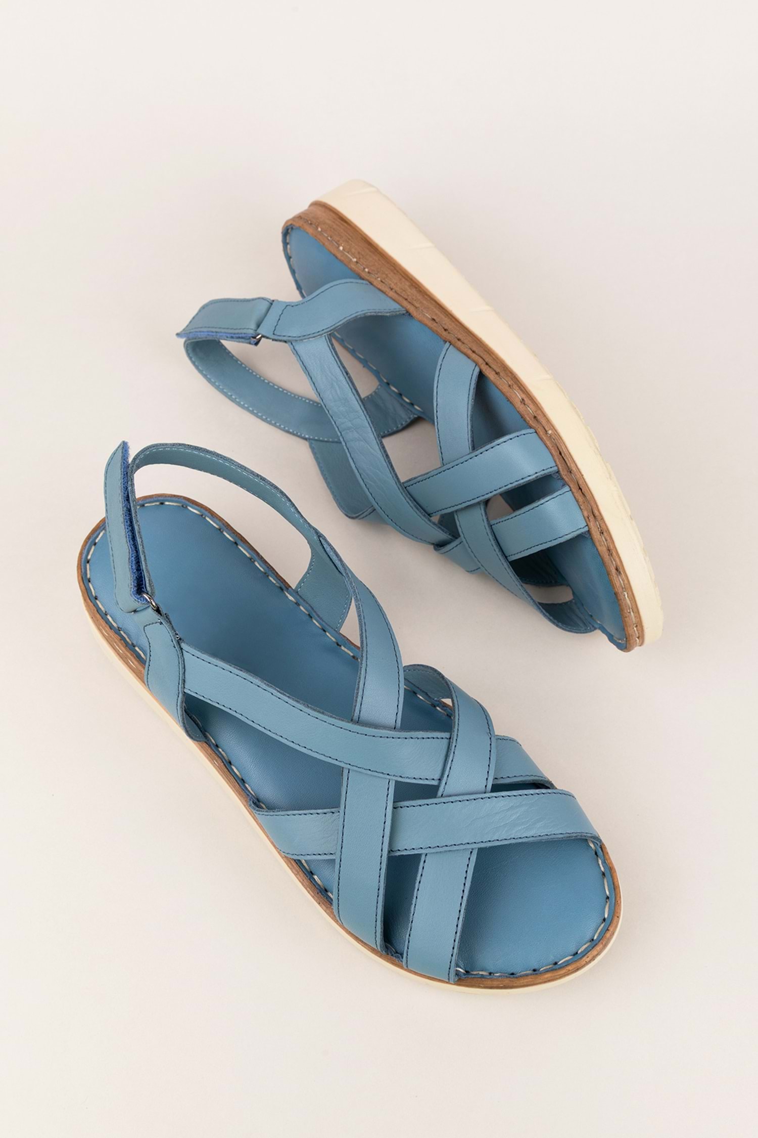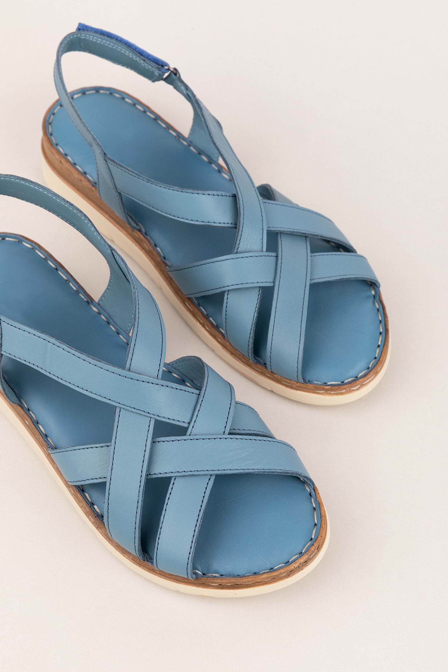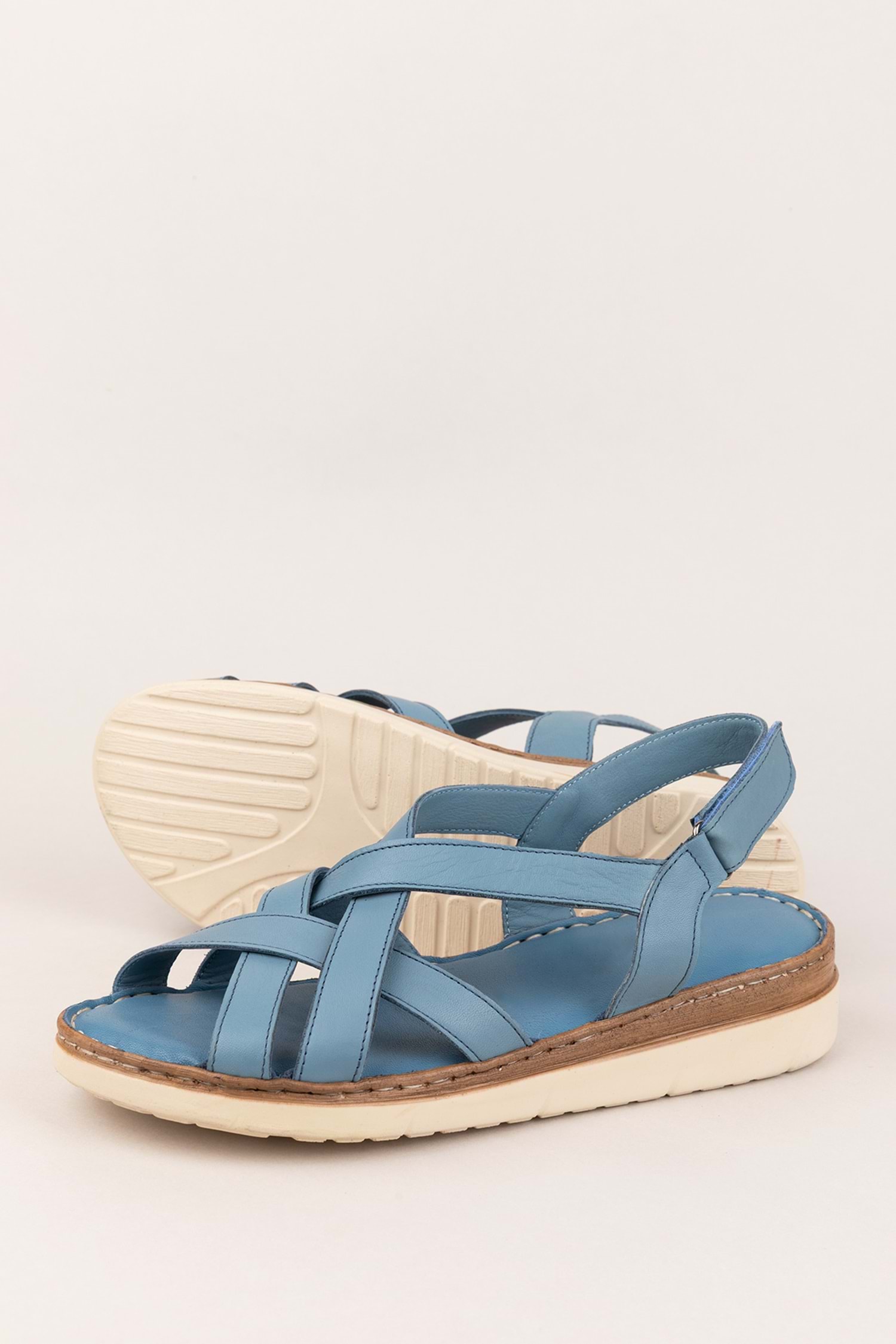 Gondol Hakiki Deri Rahat Günlük Sandalet asy.712 - Mavi - 40