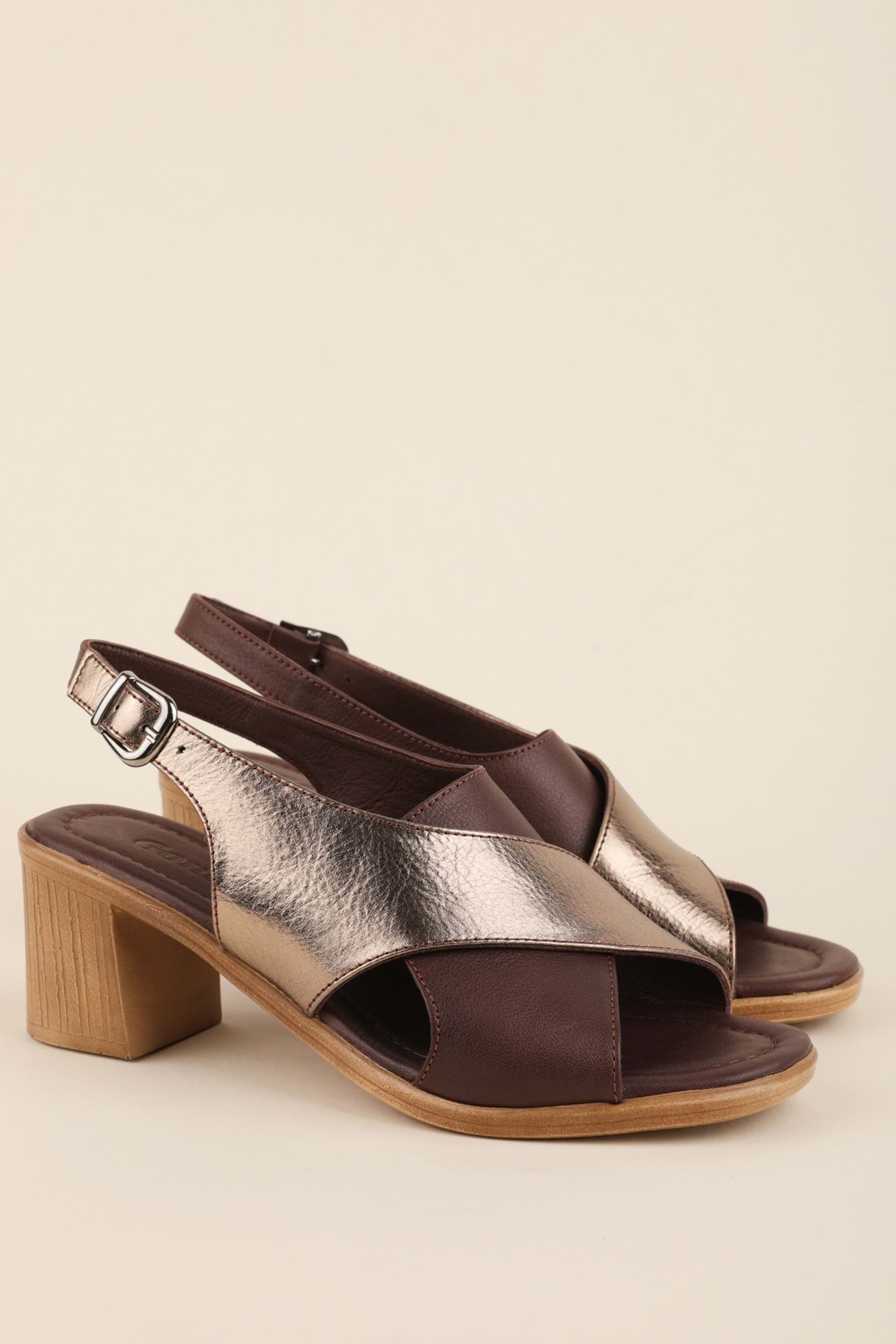 Gün boyu konforu şıklıkla birleştiren hakiki deri dolgu topuk kadın sandalet, zamansız bej rengiyle yaz kombinlerinin vazgeçilmezi olmaya aday. Yumuşak deri yapısı ayağı sarar, klasik tasarımı hem estetik hem de dengeli bir duruş sağlar.