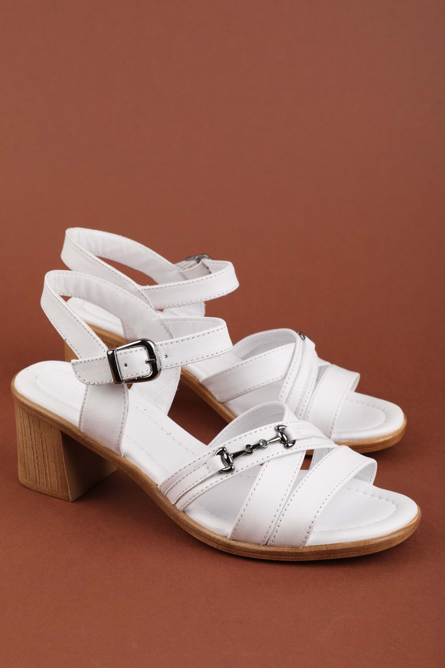 Gondol Hakiki Deri Topuklu Klasik Günlük Sandalet ez.2220bc - Beyaz - 37